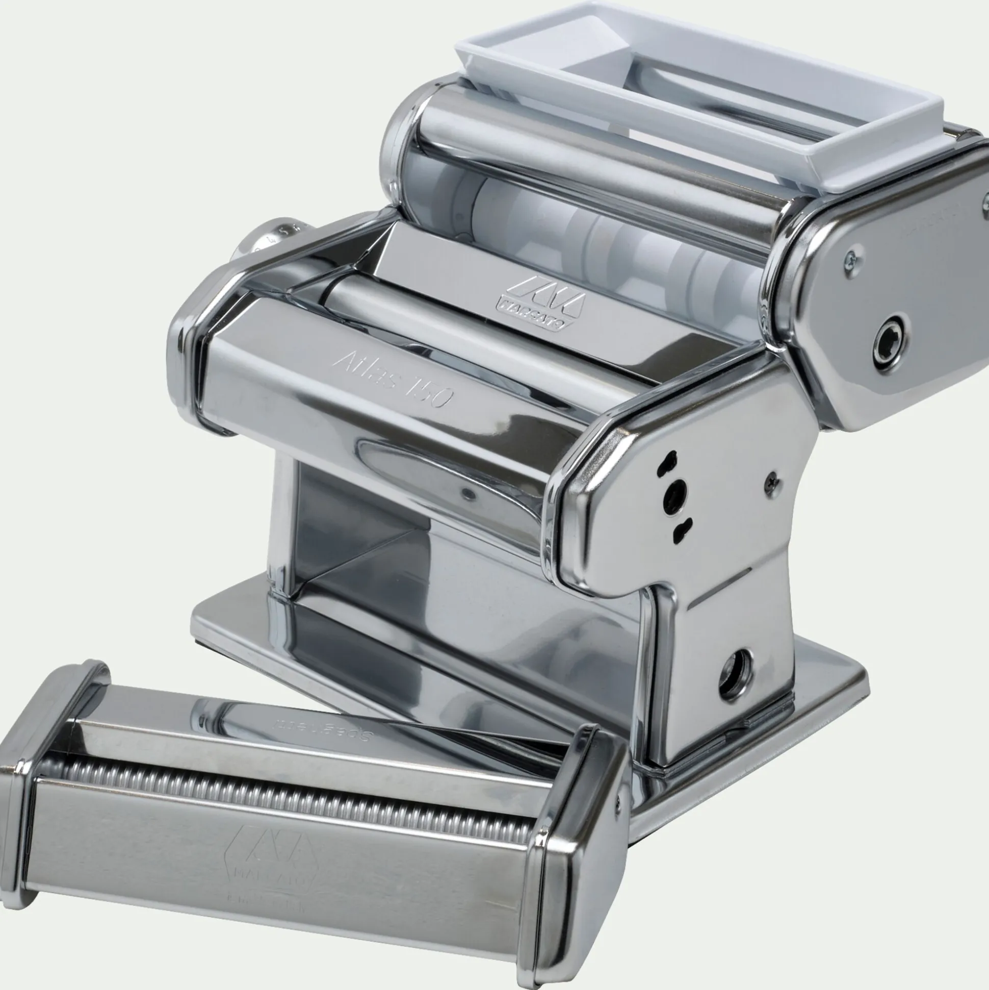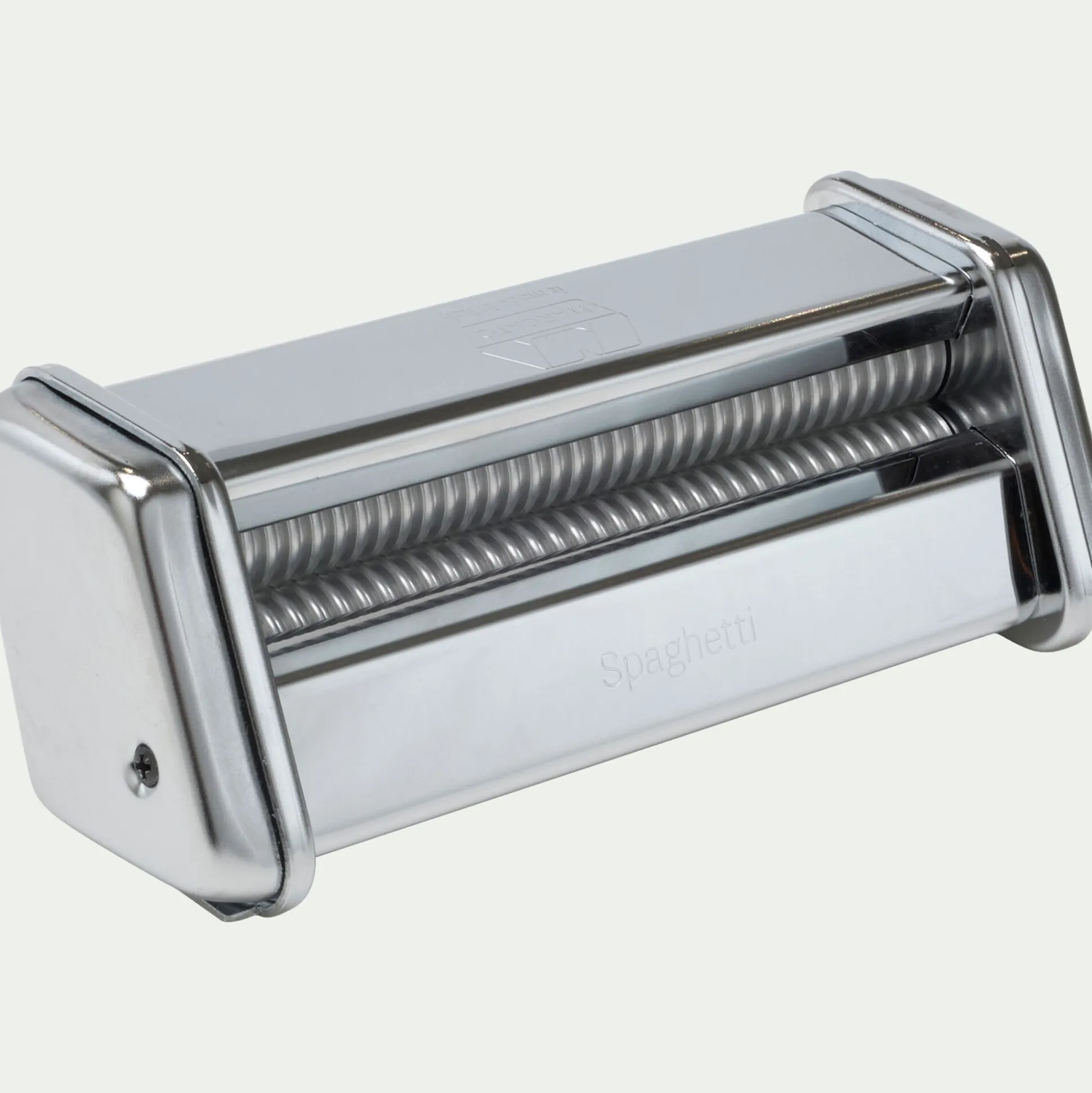 Complétez votre machine à pâtes d’un rouleau spécial pour confectionner vous-même vos spaghettis. Pâtes emblématiques appréciées de tous, les spaghettis vous feront voyager en Italie. En quelques secondes, cet accessoire se fixe à votre lamineuse. Il ne vous reste plus qu’à insérer votre pâte préparée avec amour pour réaliser un plat fait-maison. Les pâtes fraiches conquièrent le cœur et l’estomac de vos invités : le tour est joué. En acier chromé, cet ustensile se cuisine au design italien apporte une touche contemporaine à l’espace.