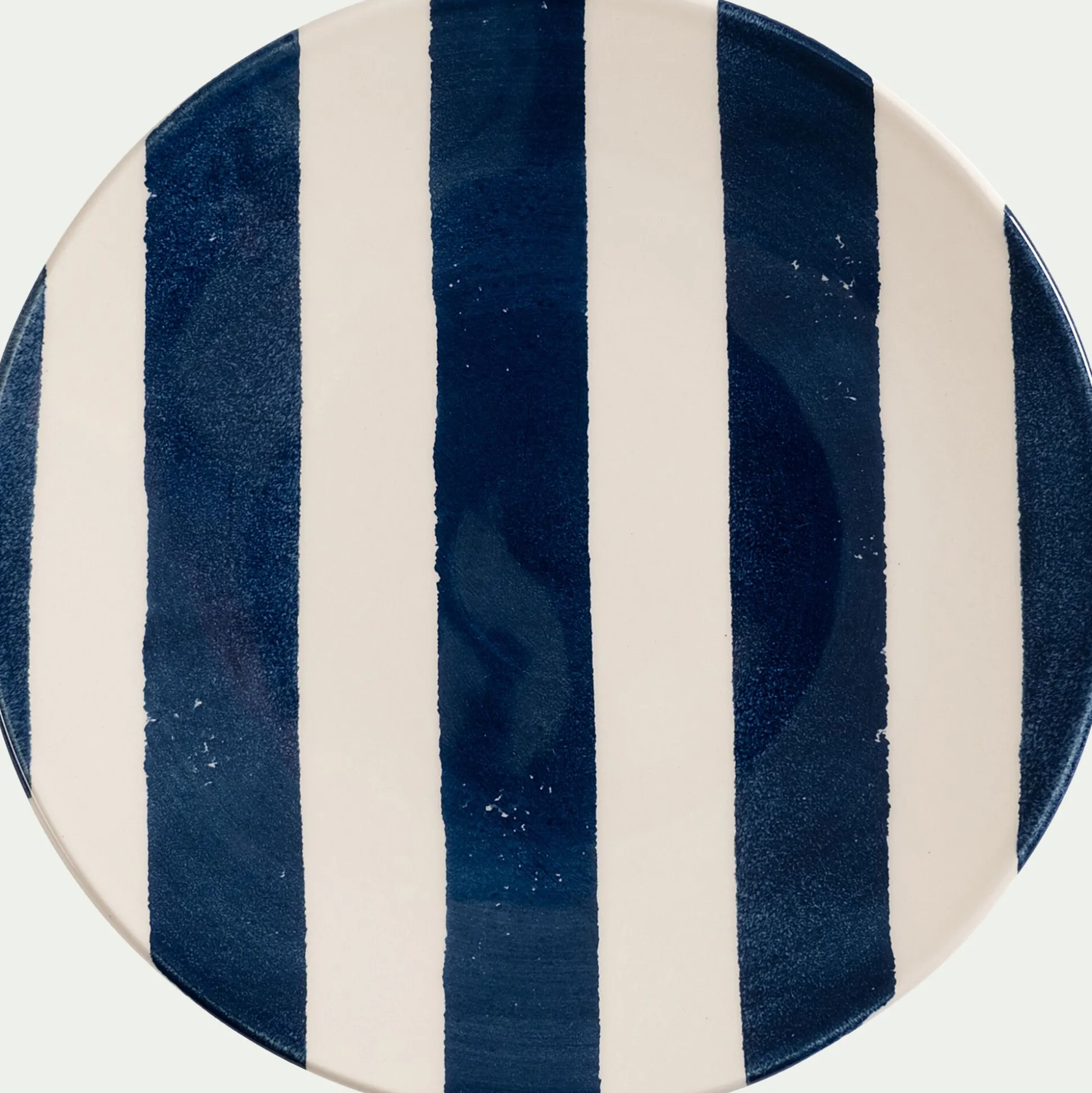 Plongez dans une ambiance chaleureuse et gourmande avec cette assiette à dessert en faïence, sublimée par des rayures bleues. Chaque trait de ce motif intemporel évoque l’élégance classique et crée une vaisselle pour toutes les occasions. Ce motif évoque les vagues de l’océan ou le ciel clair d’une journée d’été, ajoutant une dimension apaisante à votre table. Gâteau aux fruits frais et autres délices sucrés… Cette assiette à dessert d’inspiration artistique participe à une présentation aussi alléchante qu’esthétique. Une pièce parfaite pour ajouter une touche de sophistication à vos fins de repas.