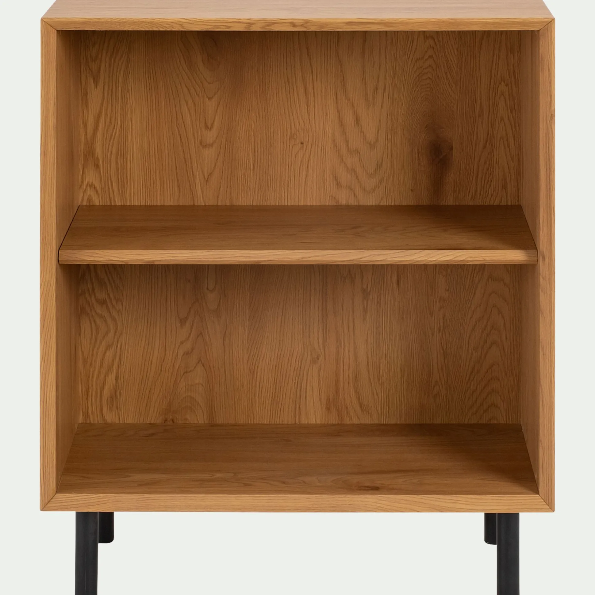 Cette bibliothèque en bois certifié FSC combine fonctionnalité et design. Sa structure compacte présente deux niches ouvertes, idéales pour ranger des livres ou exposer quelques objets déco. Montée sur des pieds en métal noir amovibles, elle s’adapte à toutes les envies : posée directement au sol pour une allure minimaliste ou surélevée pour un style plus léger et moderne. Cette petite bibliothèque est parfaite pour optimiser les petits espaces tout en apportant une touche de caractère à l’espace.