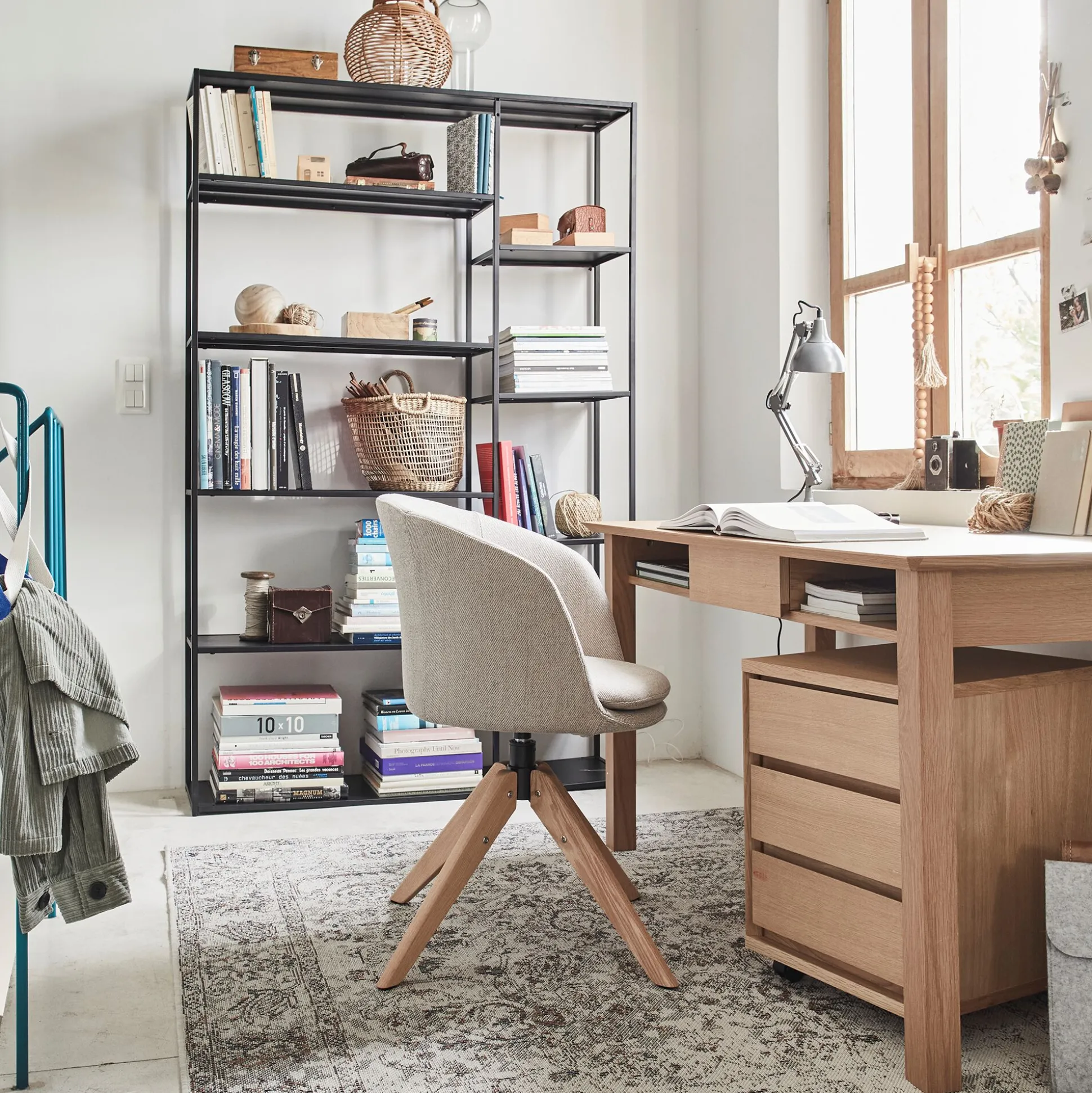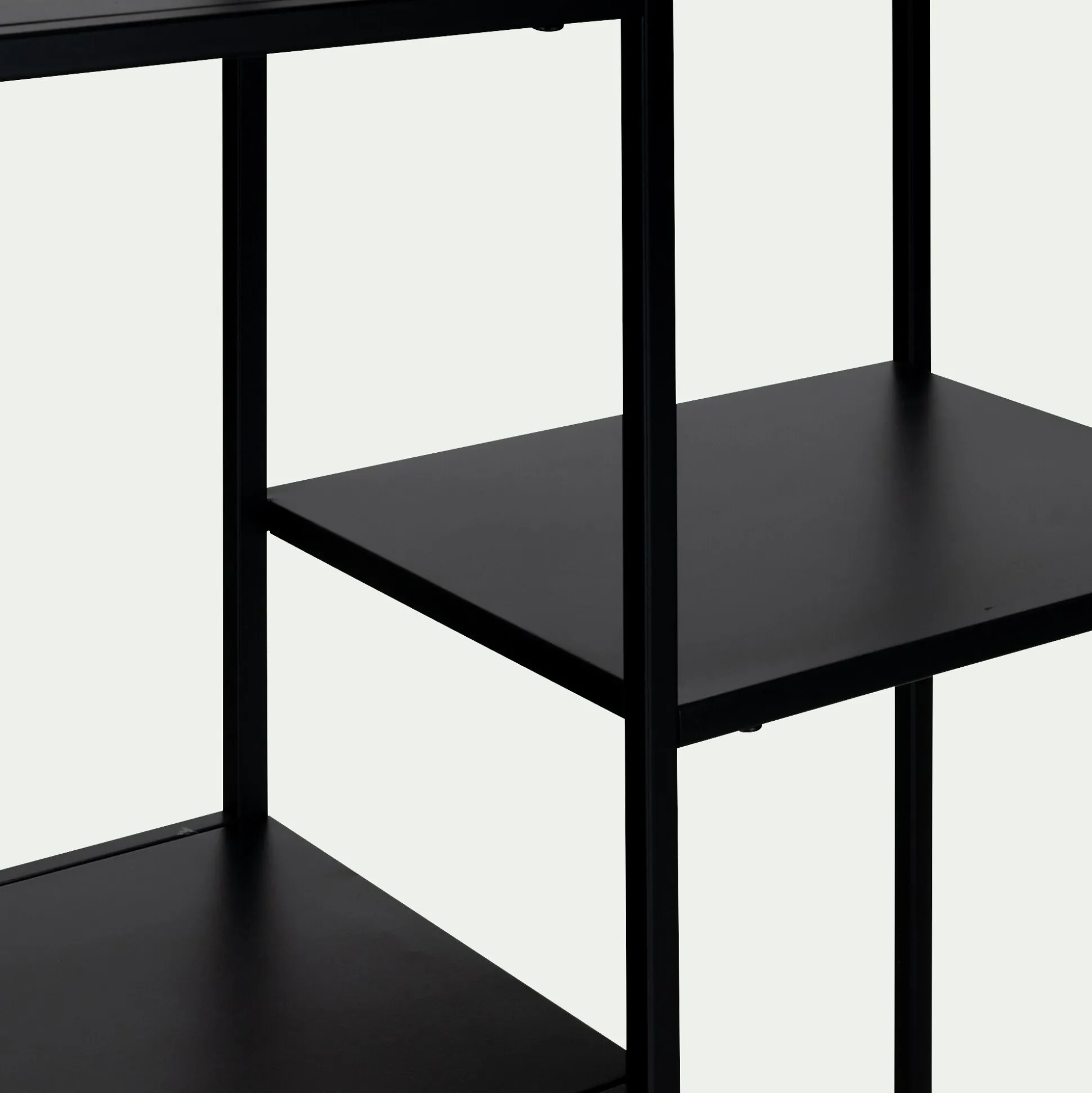 Cette belle bibliothèque à la structure fine et au style contemporain vous permettra de disposer vos objets déco et vos livres. Vous apprécierez ses lignes épurées et son design moderne. Cette bibliothèque noire présente une structure et des étagères en métal qui lui confère un style chic et élégant. Elle trouvera aisément place dans votre salon, afin de compléter avec charme la déco de votre pièce de vie et le mobilier existant.