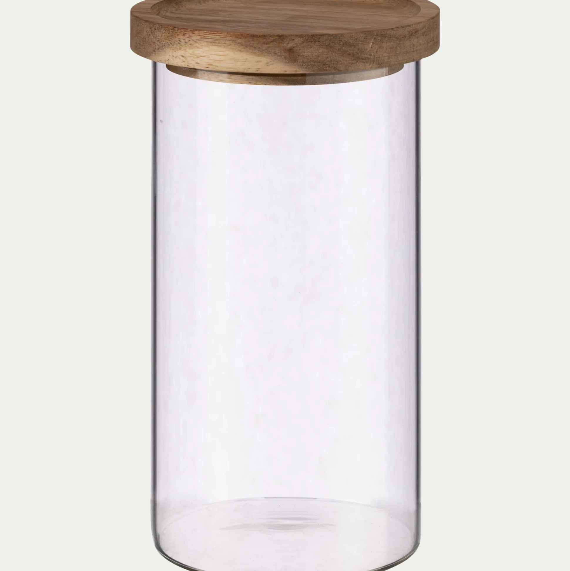 Pour organiser et optimiser votre cuisine, rien de tel que des bocaux transparents. Le bocal Ronda arbore un design simple, cylindrique, pour un rendu contemporain. Il est confectionné en verre, un matériau résistant et hygiénique, avec un couvercle en bois d’acacia. Transparent, ce bocal 1L permet de voir ce que l’on range à l’intérieur : pâtes, noix, riz, lentilles… Et autres mets à conserver avant dégustation.