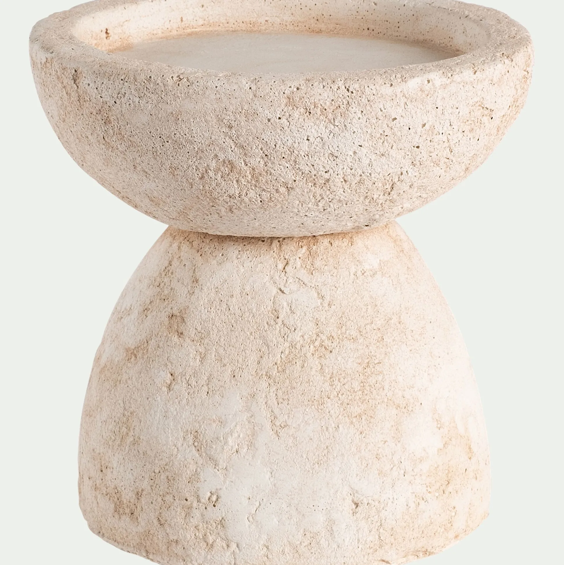 Isalie est un bougeoir confectionné en ciment, une pièce décorative à la fois brute et élégante qui participe à un intérieur contemporain. Sa texture irrégulière et son aspect robuste ajoutent une touche de caractère à la décoration d’intérieur. Unique, ce bougeoir en ciment se compose de deux demi-sphères, formes douces et organiques que l’on se plait à exposer sur une étagère. Grâce à sa hauteur et à sa forme creuse, ce bougeoir beige met en valeur une bougie et recueille la cire fondue.