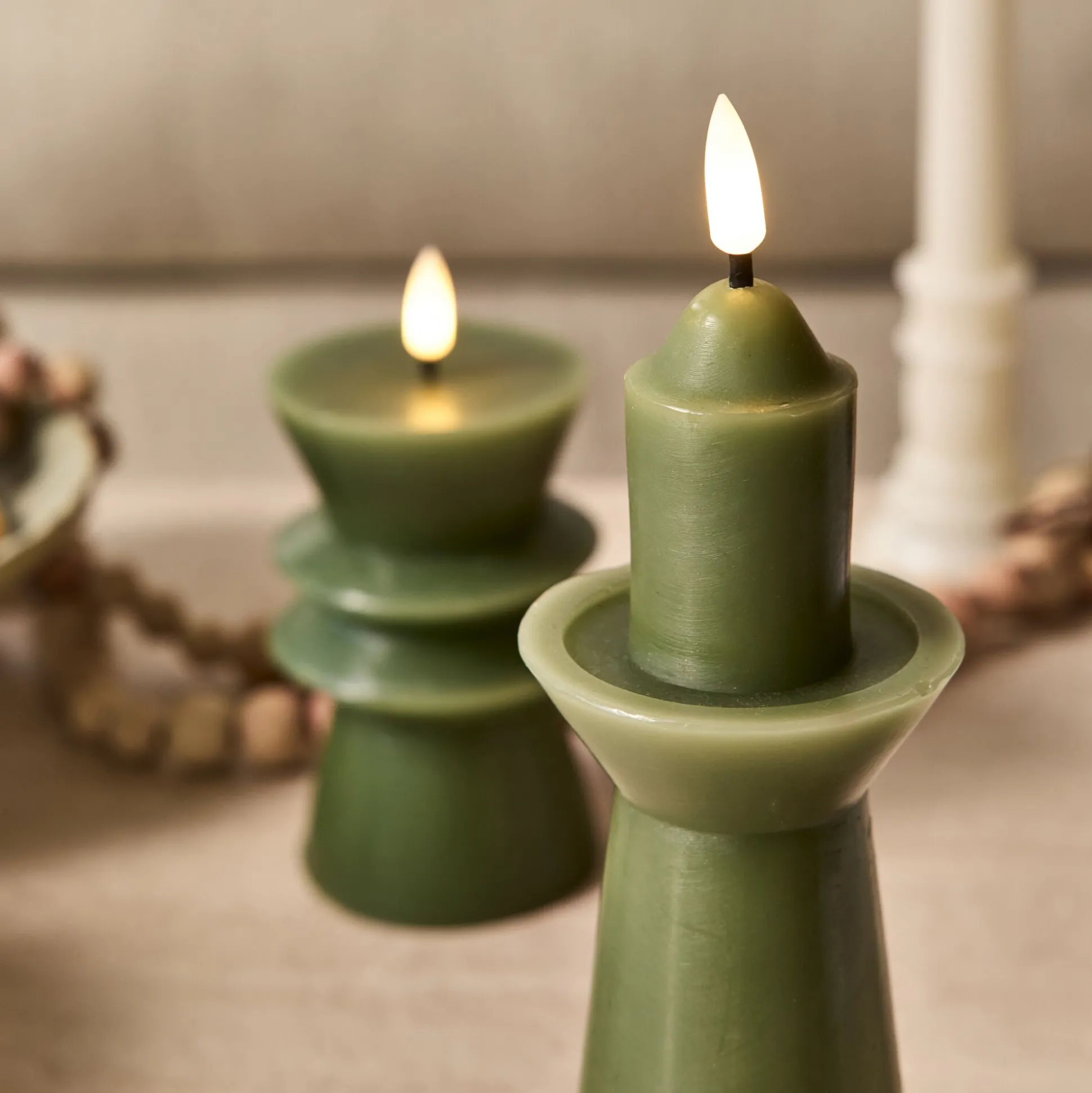 Naya est une bougie à LED qui associe authenticité et praticité. Confectionnée en cire de paraffine, elle affiche une silhouette contemporaine teintée en vert qui apporte du caractère à la décoration de Noël. Une petite ampoule en forme de flamme trône au sommet et diffuse une lumière blanc chaud, douce et apaisante. Fonctionnant avec 2 piles AAA (non incluses), cette bougie électrique s’allume grâce à un interrupteur discret. Pour plus de confort, son minuteur intégré l’éteint automatiquement après 6 heures d’utilisation. Un objet déco qui crée une atmosphère chaleureuse pour passer confortablement l’hiver.