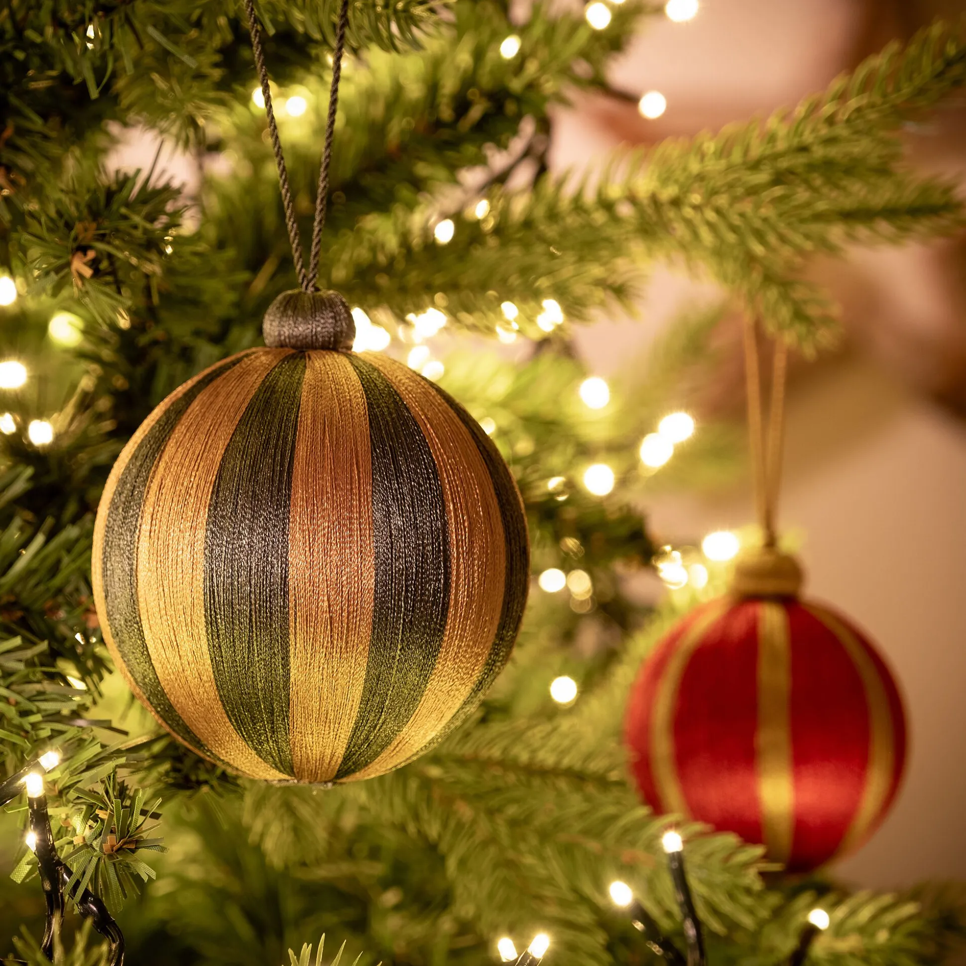 Boule de Noël à rayures tissées D10cm – vert