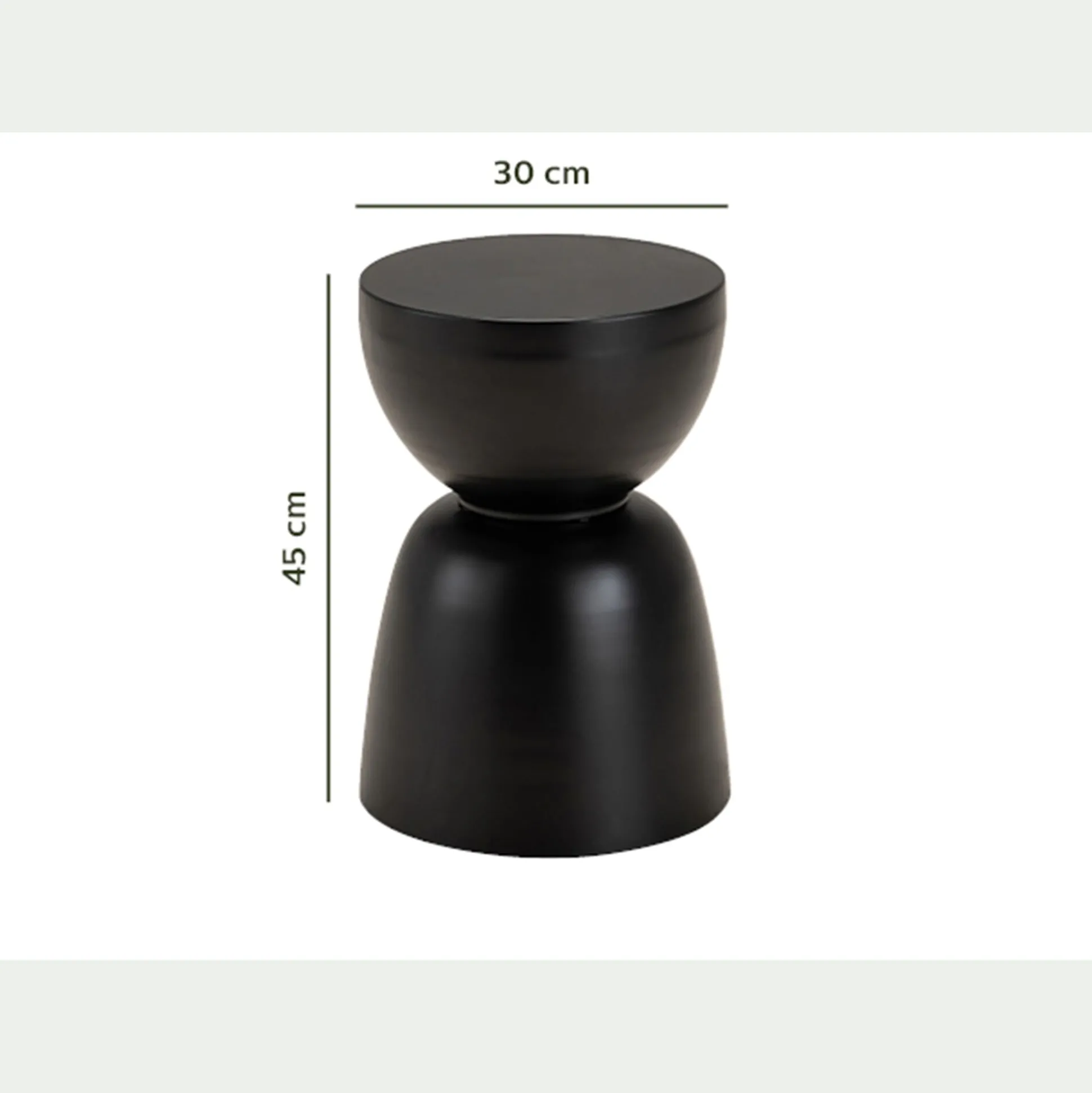 Lahna est un bout de canapé en forme de sablier. Cette forme si particulière est inspirée des tabourets vintage, aussi appelés tabourets tam-tam. Icones de la décoration rétro, cette forme s’invite à nouveau dans nos intérieurs pour y insuffler son charme d’antan. Délicieusement rétro, ce bout de canapé en aluminium arbore un coloris noir. Ainsi, il mélange les styles et les tendances pour s’intégrer au mieux dans votre décoration. Ce bout de canapé en métal noir prend des airs de mobilier industriel, atout de charme à placer dans le salon.