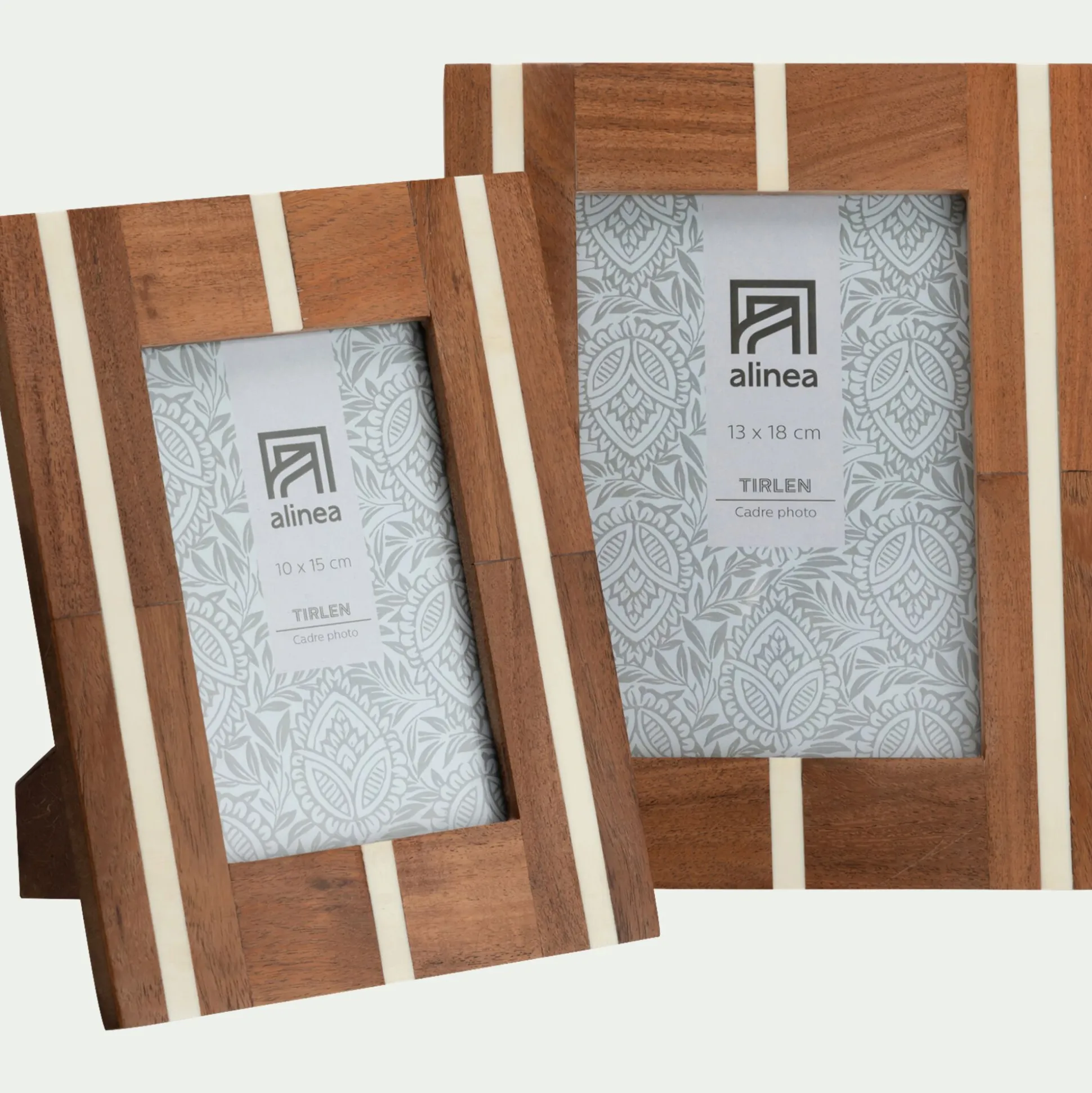 Capturez l’essence de vos plus beaux souvenirs avec le cadre photo Tirlen. Confectionné en bois, ce cadre rectangulaire souligne naturellement une photo de 10×15 cm. Cette dernière est mise en valeur par un motif intemporel et élégant : de belles rayures blanches qui se détachent du bois. Ce cadre à poser vous embarque pour une escapade au cœur de vos souvenirs.