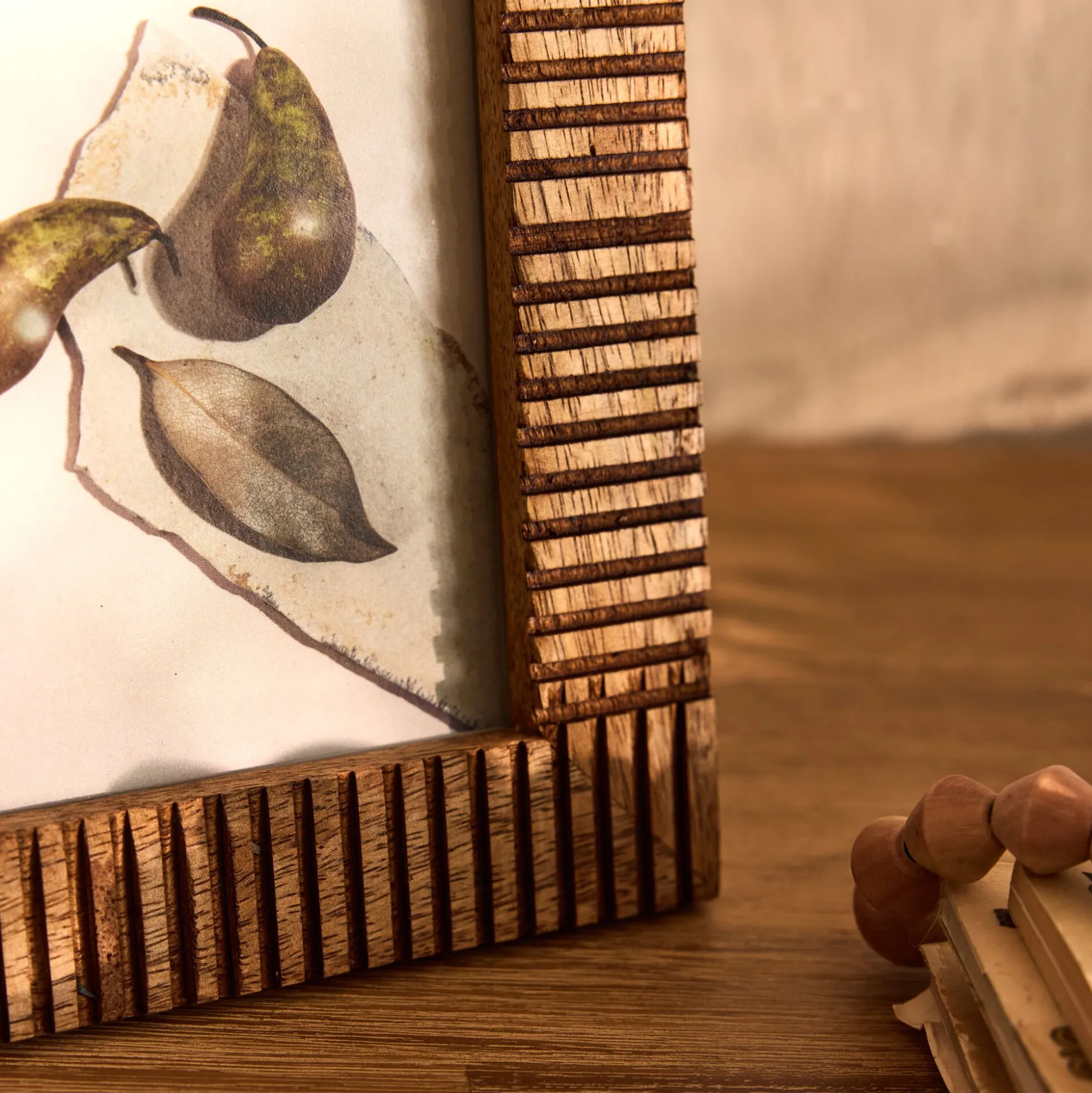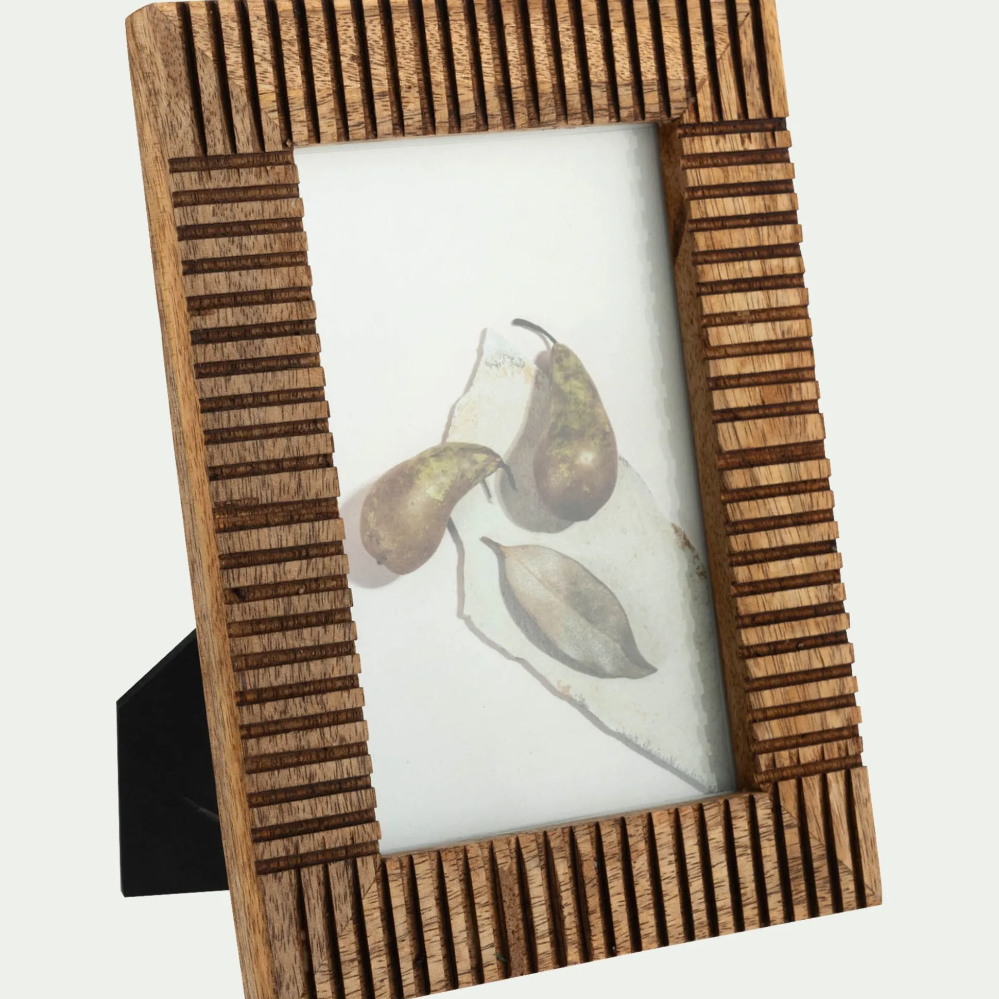 Ce cadre photo en bois de manguier séduit par son charme brut et authentique. Le bois est finement travaillé et strié, créant un jeu de texture et de relief qui attire le regard. Sa teinte chaleureuse s’accorde à tous les intérieurs, du plus épuré au plus rustique. À poser sur une commode ou une étagère, ce cadre en bois met en valeur chaque cliché, protégé derrière une vitre en verre.