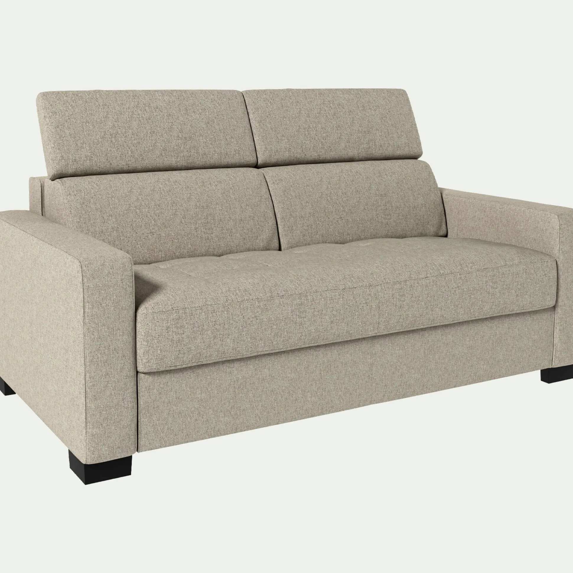Mauro est une gamme de canapés au style contemporain et d’une grande élégance pour décorer votre salon. Conçu en Italie, il est le fruit d’un travail minutieux et d’un savoir-faire unique. Ce canapé 2 places en pop couleur beige, arborant de larges accoudoirs de 15 cm et des têtières relevables, vous procurent un confort d’assise incomparable et vous invite à savourer d’agréables moments de détente. Avec sa fonction convertible, vous pourrez le transformer en un confortable couchage afin d’accueillir famille et amis. Un meuble de fabrication européenne qui sera la pièce maîtresse de votre salon va et sublimera votre décoration d’intérieur.