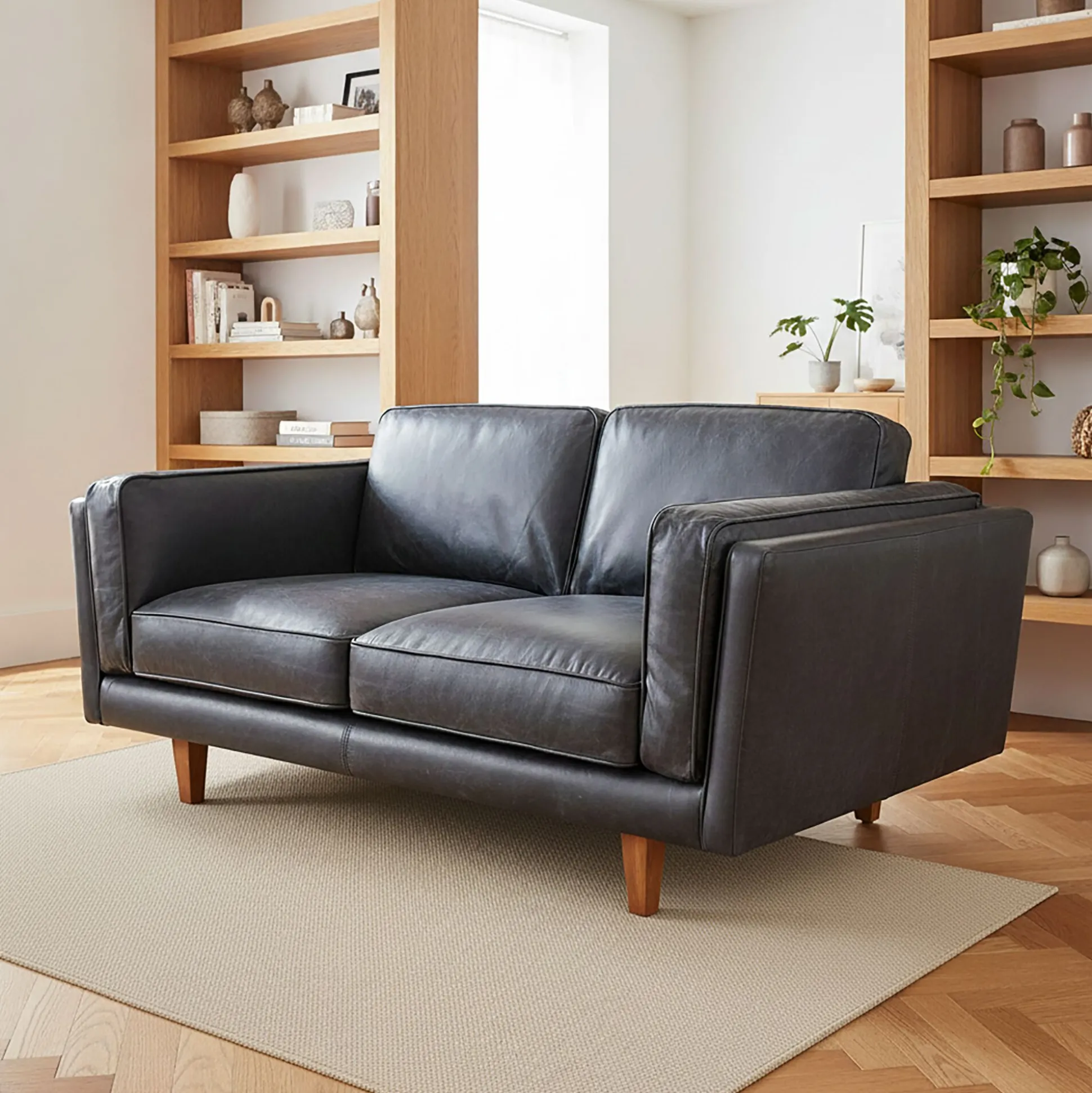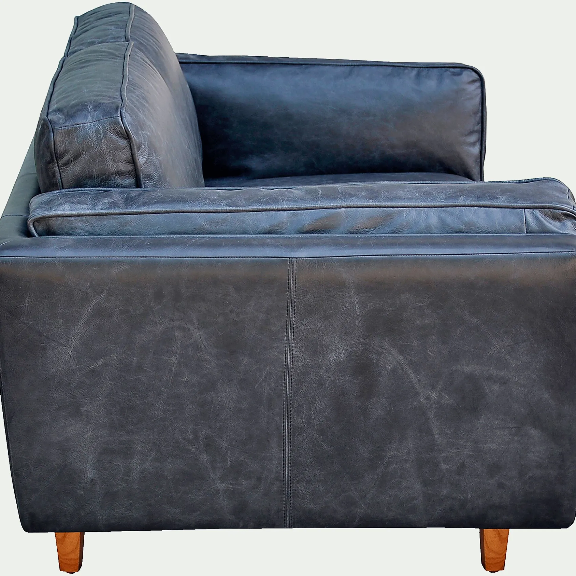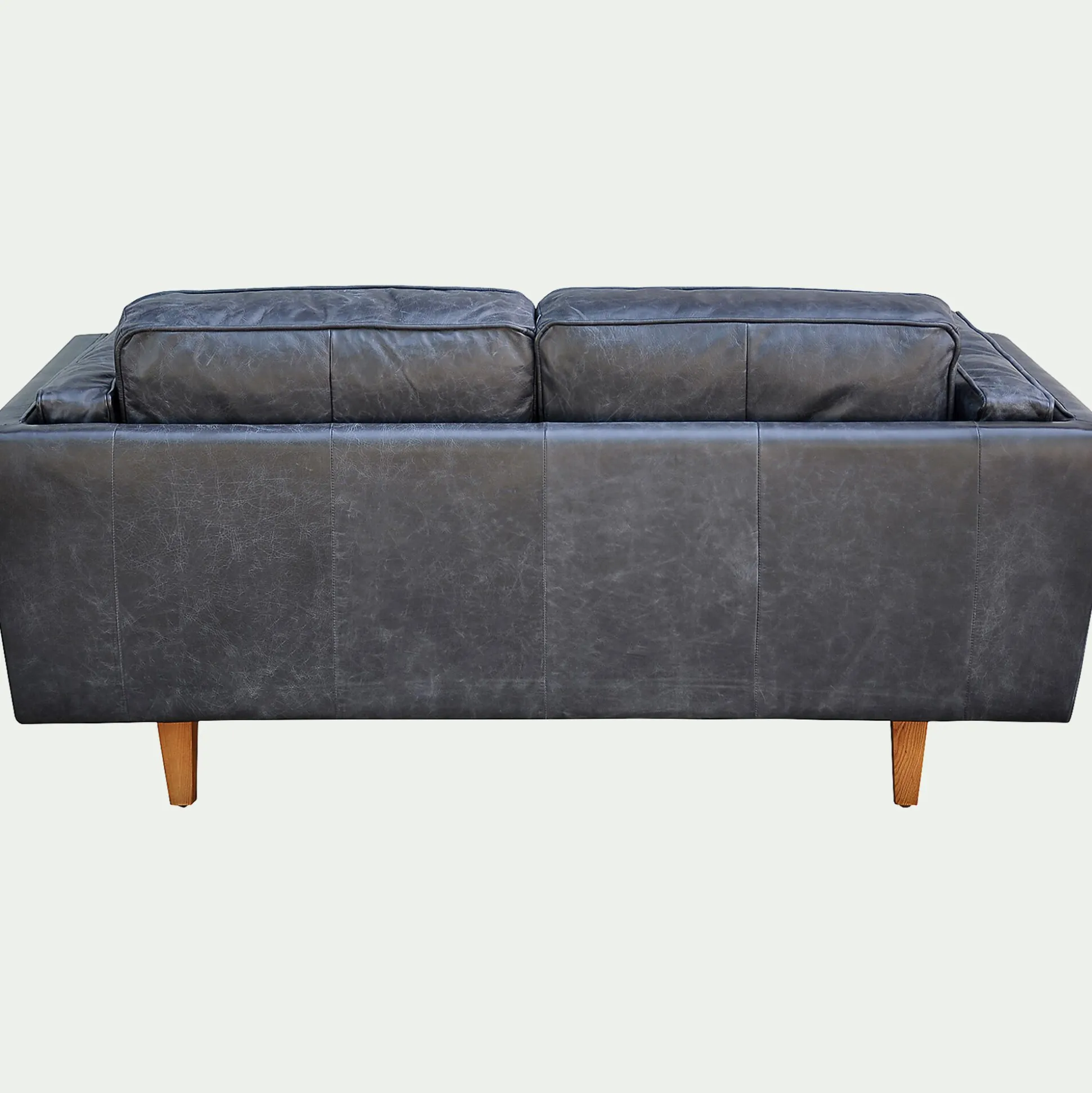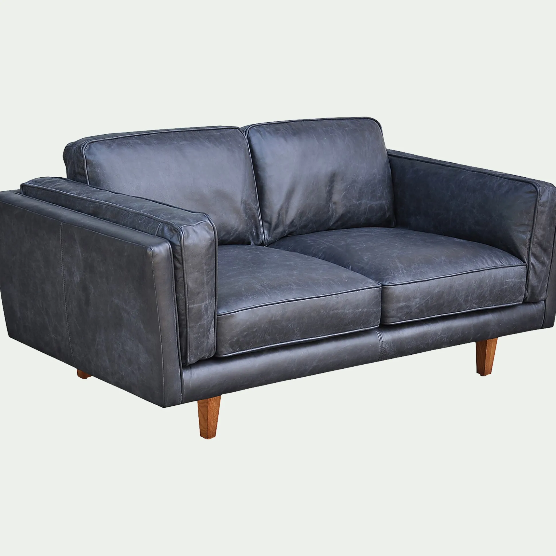 Un canapé 2 places fixe en cuir de vachette noir vieilli qui affirme son style rétro pour votre plus grand plaisir ! Avec son assise souple garnie de plumes, vous pourrez vous y prélasser et passer d’agréables moments de pure détente. Grâce aux lignes généreuses, ce canapé apportera une touche authentique et cosy dans votre salon. Vous ne résisterez pas à son confort.