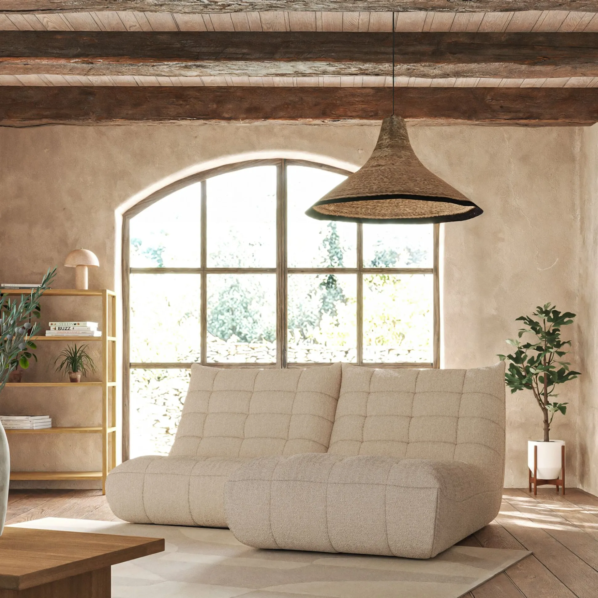 Ce canapé 2 places à tout pour plaire. Sa forme aux rondeurs généreuses apporte une ambiance chaleureuse et un confort douillet. Son esthétisme donnera un style tendance à votre salon d’intérieur. Par sa couleur blanc écru, il pourra se marier à tous les styles de décoration. Fabriqué par des mains expertes du métier, cet élément est intégralement conçu en Europe. Parce qu’alinea a à coeur de vous satisfaire, cette gamme propose un large choix d’éléments, rendant celle-ci modulable à souhait. Vous pourrez ainsi mixer les tissus, les formes et les couleurs à votre guise et vous permettra de faire varier et faire vivre votre salon à votre image.
