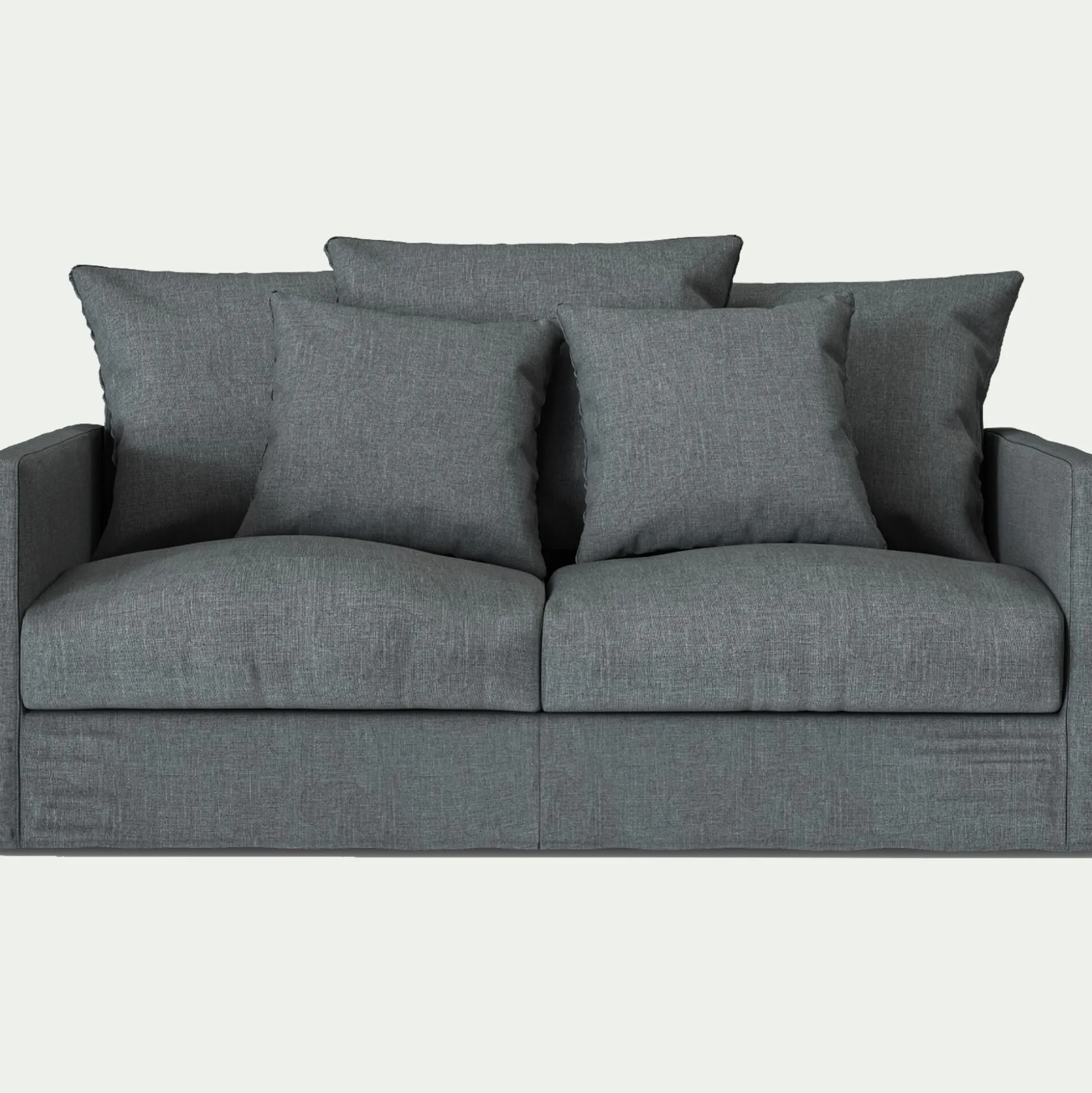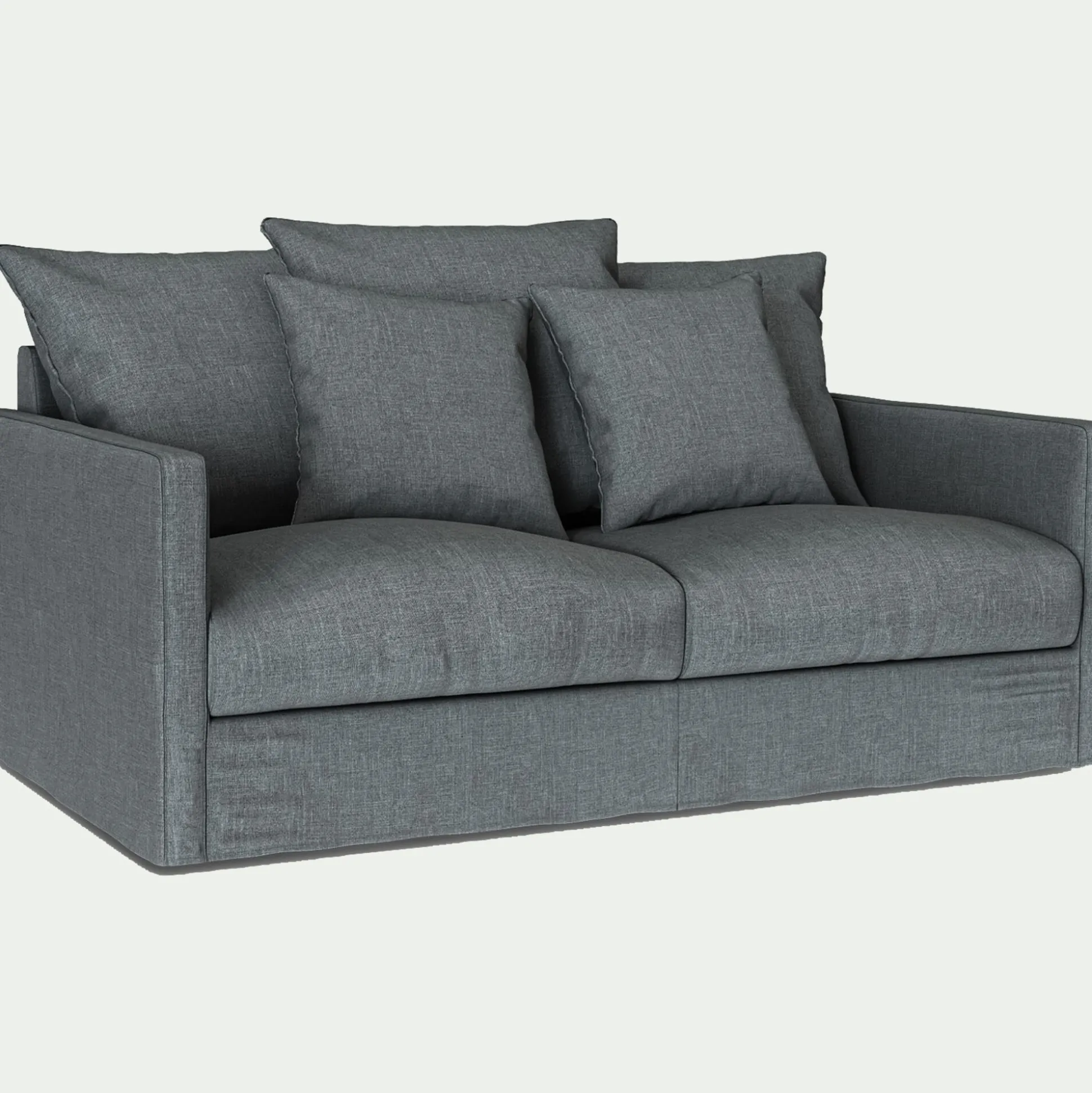 Ce canapé 2 places fixe en lin et en viscose vous permettra d’aménager avec raffinement votre pièce de vie. Avec son design tendance et élégant, il a été fabriqué en Italie et offre un grand confort. Ici en gris ardoise, il se combine aisément avec tous les styles de décoration. Il invite à la détente grâce à la présence de coussins généreux et d’une assise moelleuse afin de vous permettre de profiter d’agréables soirées dans votre salon.