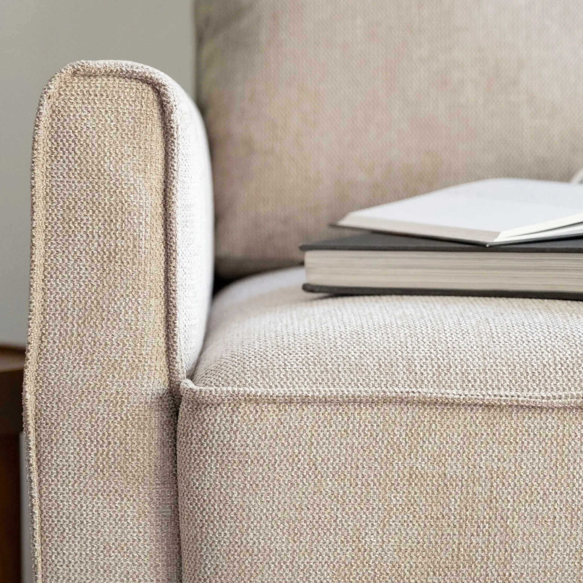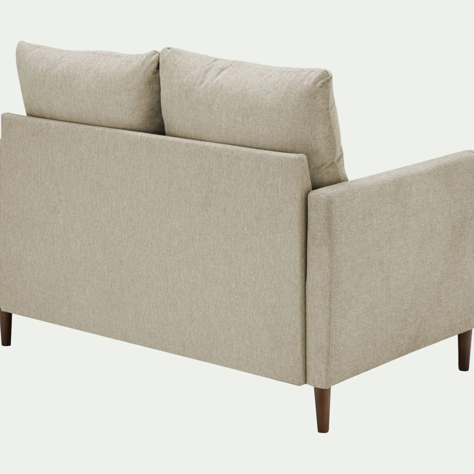 Pensé pour s’adapter à chaque intérieur, ce canapé 2 places permet de vous détendre sans prendre une grande place dans la pièce, il se place selon les envies et l’agencement de votre intérieur. Sa structure en bois accueille une assise en mousse généreuse, complétée par trois coussins de dos qui offrent un soutien optimal aux lombaires et aux épaules. Son revêtement en tissu beige, à la fois profond et naturel, habille ce canapé d’une élégance intemporelle. Il repose sur des pieds en bois de hêtre qui renforcent son allure chaleureuse et naturelle. Compact avec ces 132 cm de long, ce canapé 2 places fabriqué en Roumanie est idéal pour conjuguer style et confort au quotidien, même dans un petit salon.