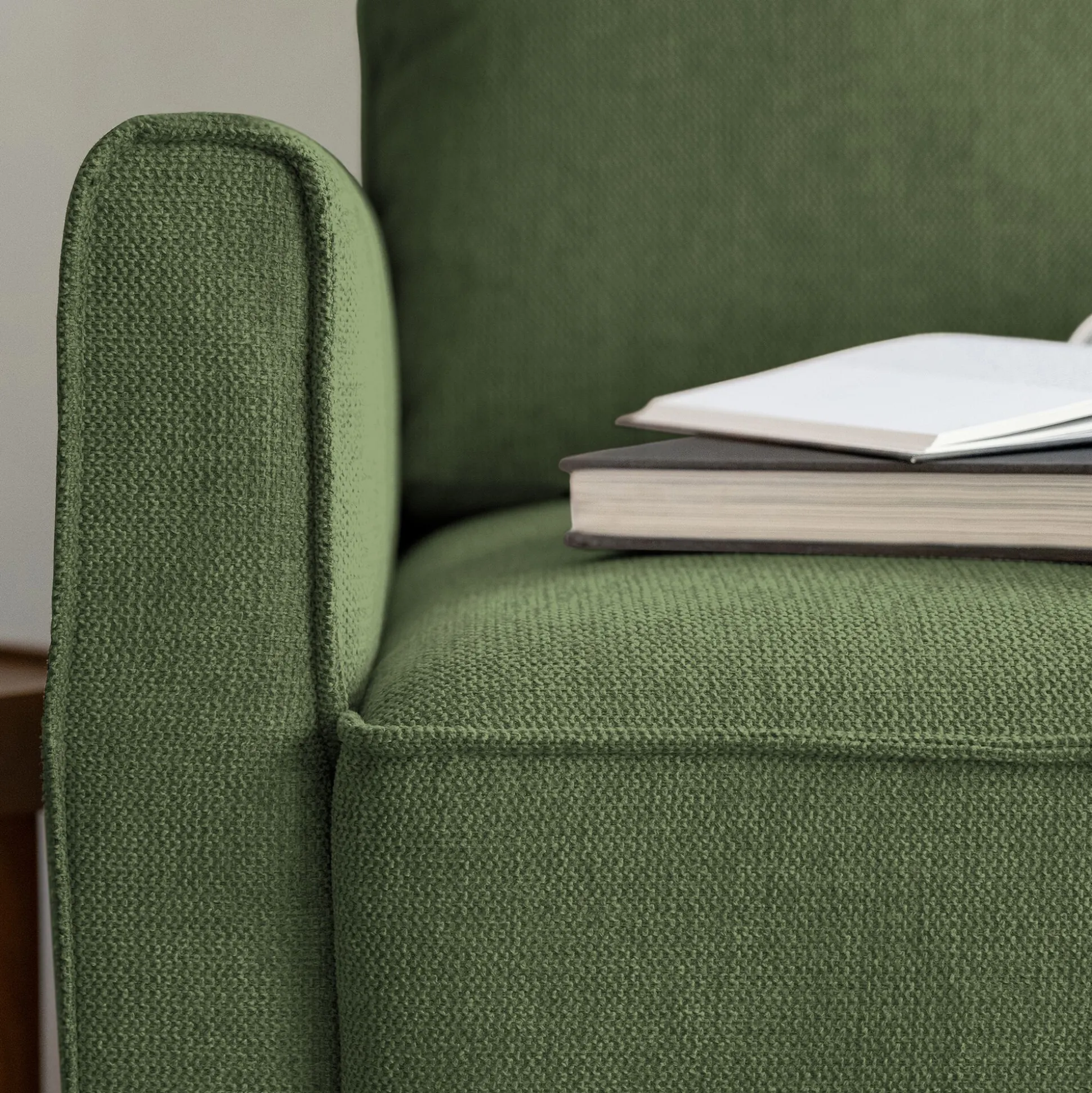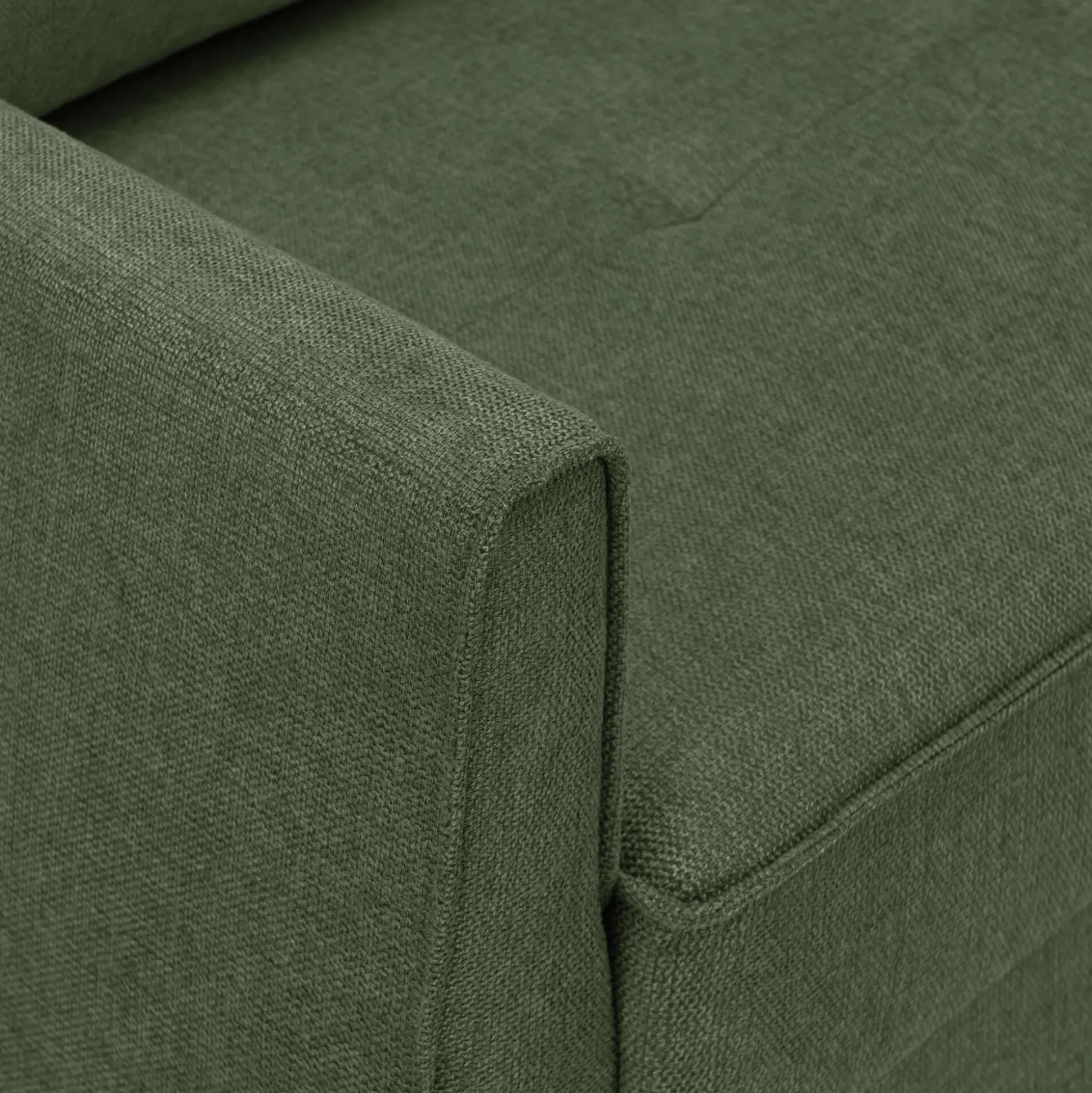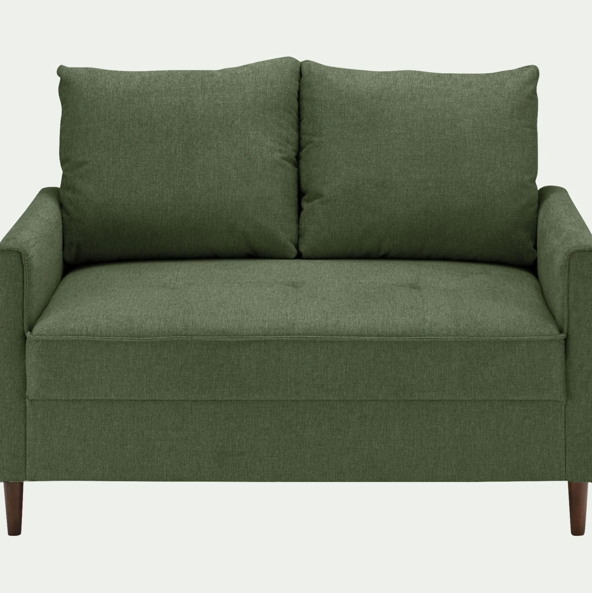 Pensé pour s’adapter à chaque intérieur, ce canapé 2 places permet de vous détendre sans prendre une grande place dans la pièce, il se place selon les envies et l’agencement de votre intérieur. Sa structure en bois accueille une assise en mousse généreuse, complétée par trois coussins de dos qui offrent un soutien optimal aux lombaires et aux épaules. Son revêtement en tissu vert, à la fois profond et naturel, habille ce canapé d’une élégance intemporelle. Il repose sur des pieds en bois de hêtre qui renforcent son allure chaleureuse et naturelle. Compact avec ces 132 cm de long, ce canapé 2 places fabriqué en Roumanie est idéal pour conjuguer style et confort au quotidien, même dans un petit salon.
