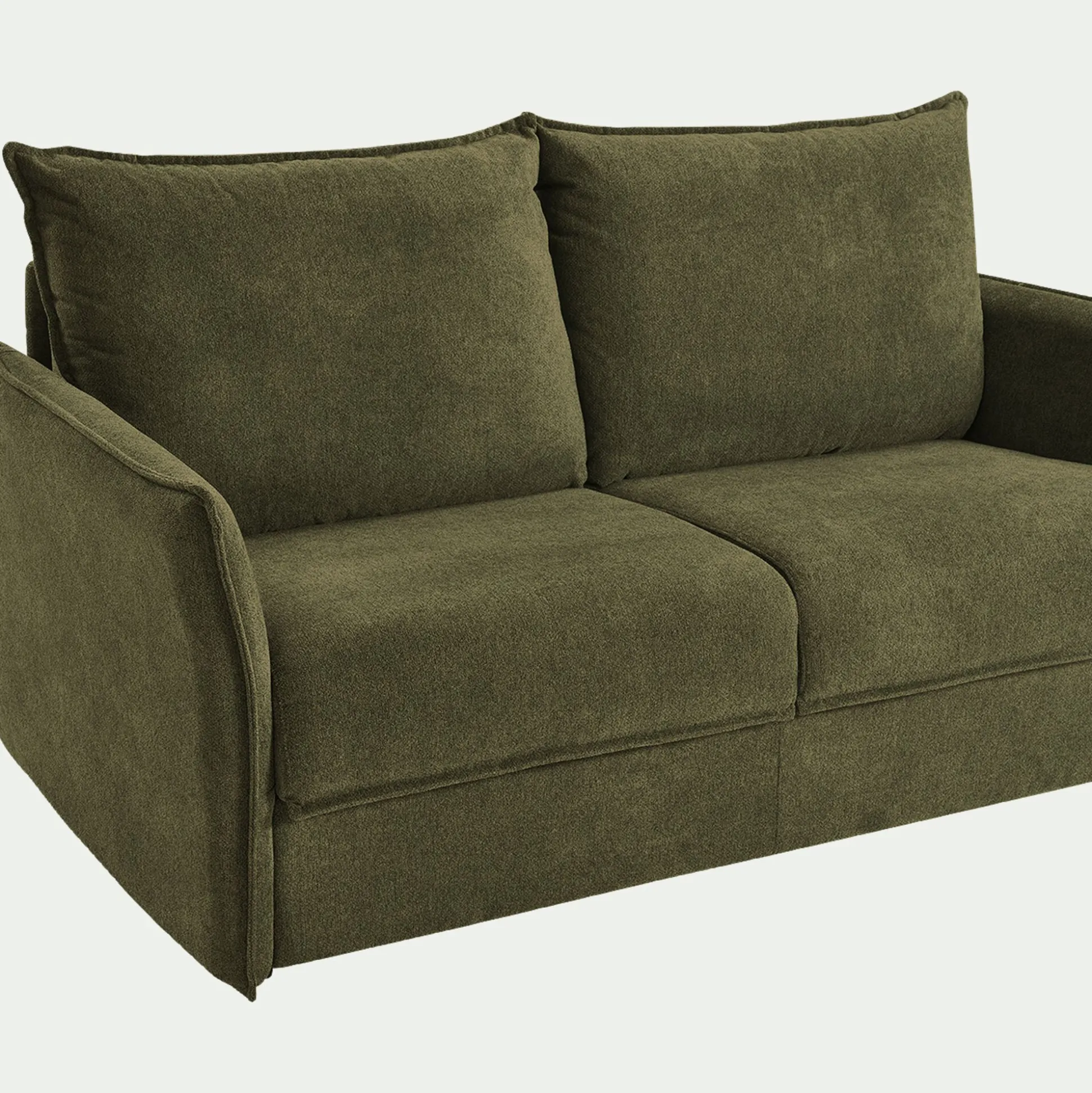 Le canapé Moya offre un soutien optimal adapté à chaque partie du corps. Ce canapé 3 places convertible à la fabrication italienne, confectionné à partir du savoir faire local, vous permet de vous détendre dans une pièce hautement qualitative. Le soir, dépliez votre canapé et transformez-le en un lit au couchage 140×195 cm d’une densité de 35kg/m3 qui vous permettra d’accueillir famille et amis. Très confortable, ce canapé peut servir de couchage quotidien. Son mécanisme métallique vous permet de le déplier en quelques secondes sans enlever ses coussins. Ce canapé en tissu, avec sa couleur vert cèdre et son liseré décoratif, apportera de l’élégance à votre salon.