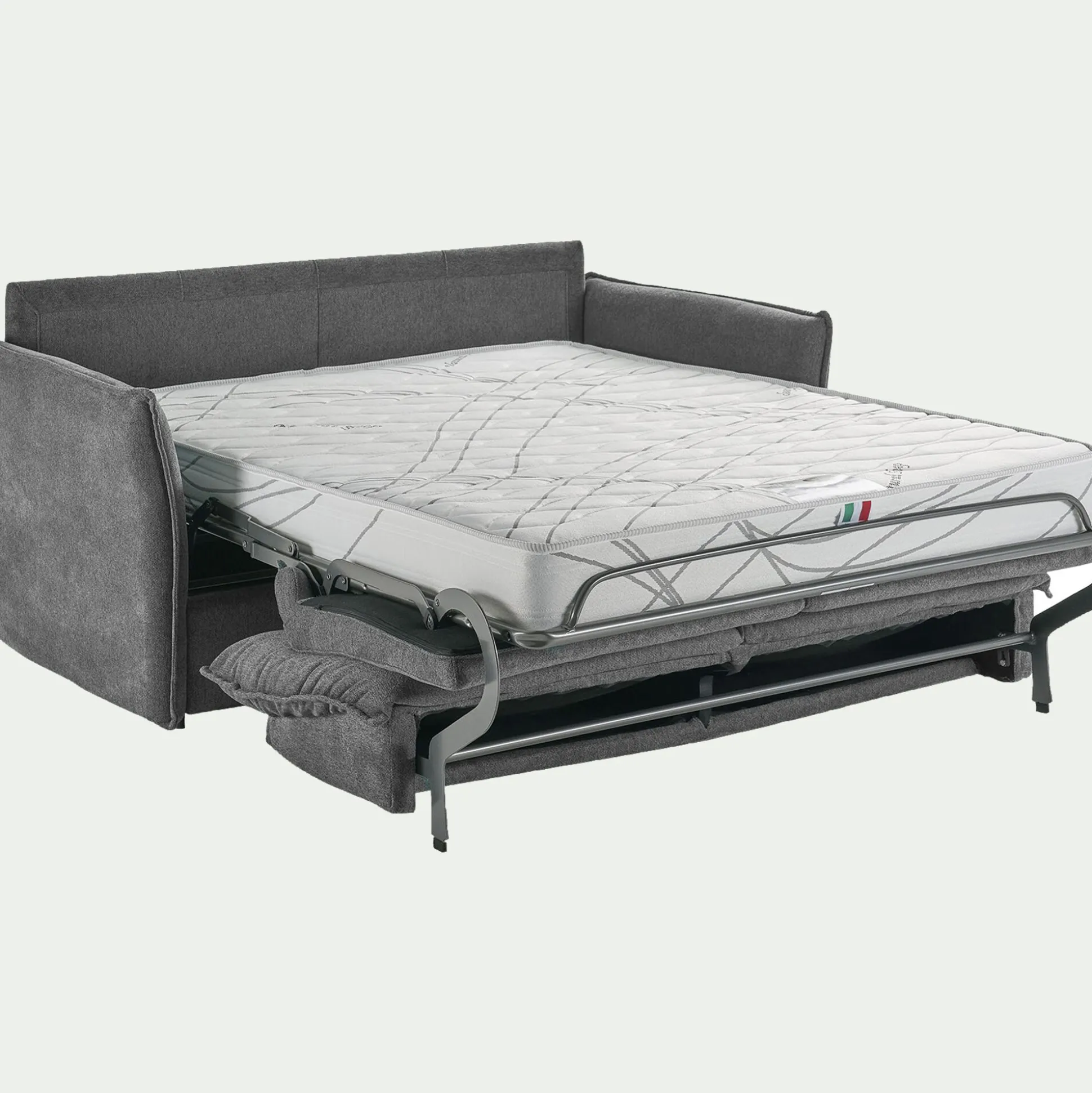Le canapé Moya offre un soutien optimal adapté à chaque partie du corps. Ce canapé 3 places convertible à la fabrication italienne, confectionné à partir du savoir faire local, vous permet de vous détendre dans une pièce hautement qualitative. Le soir, dépliez votre canapé et transformez-le en un lit au couchage 140×195 cm d’une densité de 25kg/m3 qui vous permettra d’accueillir famille et amis. Très confortable, ce canapé peut servir de couchage quotidien. Son mécanisme métallique vous permet de le déplier en quelques secondes sans enlever ses coussins. Ce canapé en tissu, avec sa couleur gris restanque et son liseré décoratif, apportera de l’élégance à votre salon.