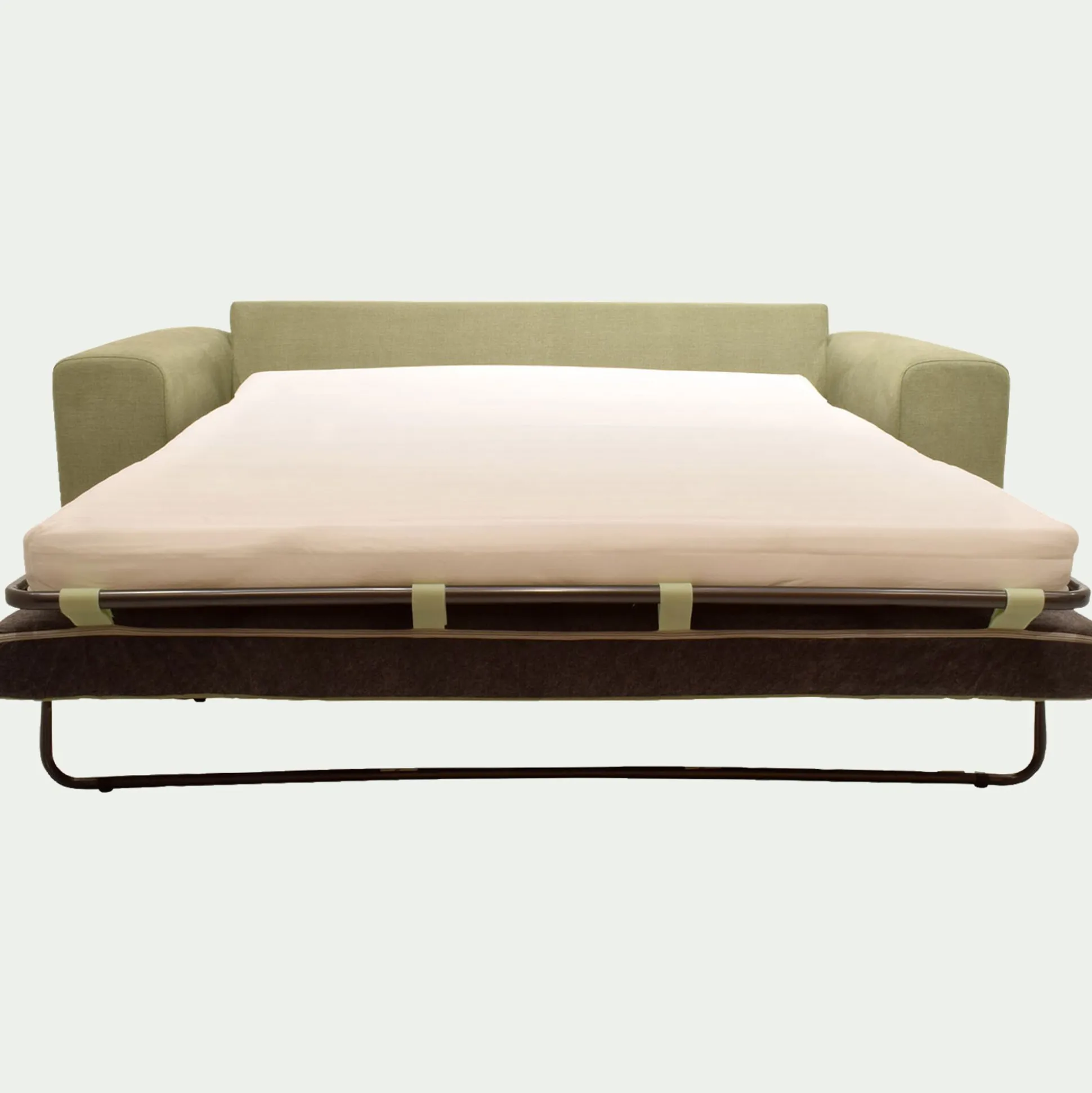 Matelas : mousse polyuréthane Haute Résilience 30kg/m3, épaisseur fini 10cm, recouvert d’un coutil Stretch 92% polyester et 8% nylon avec plateau piqué en ouate 300g/m².