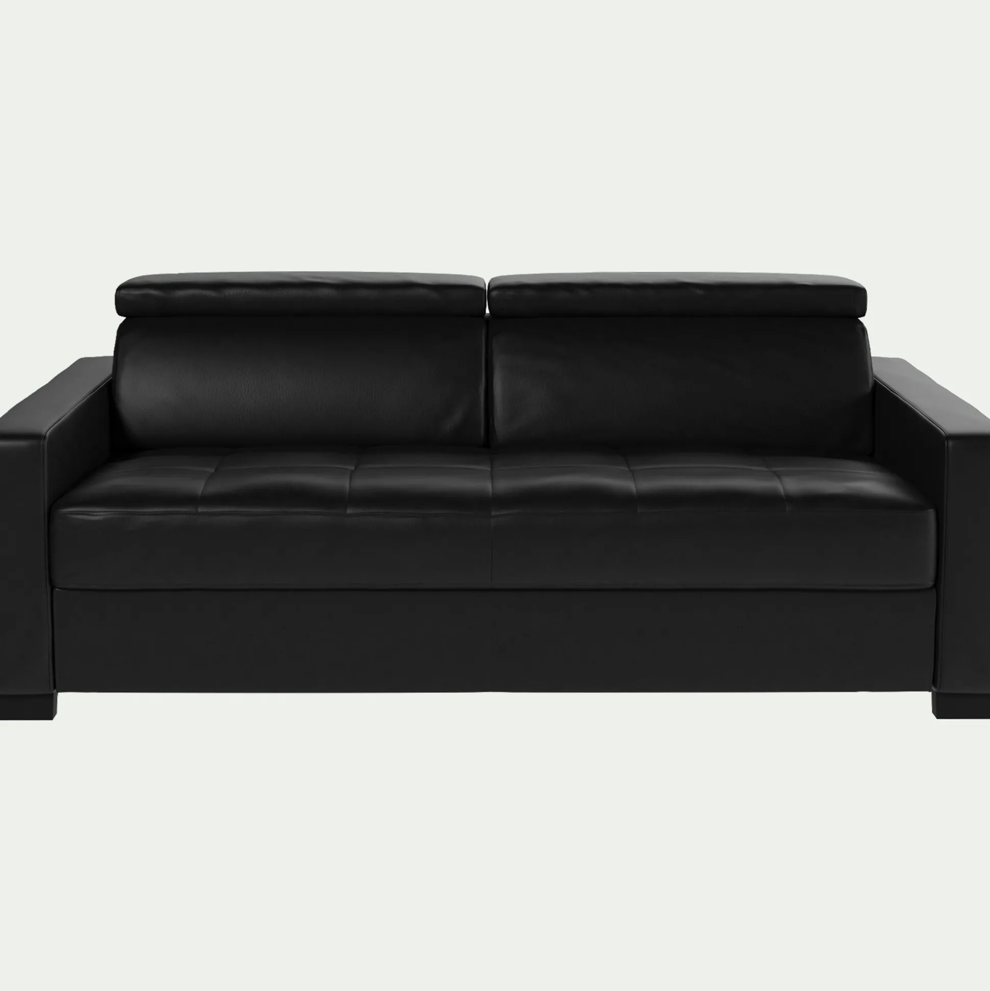 Mauro est une gamme de canapés au style contemporain et d’une grande élégance. Conçu en Italie, il est le fruit d’un travail minutieux et d’un savoir-faire unique. Ce canapé 3 places en cuir noir, arborant de larges accoudoirs et des têtières relevables, vous procurent un confort d’assise incomparable et vous invite à savourer d’agréables moments de détente. Convertible, il vous permet de pouvoir accueillir familles et amis sur son matelas Bultex. Un meuble de fabrication européenne qui sera la pièce maîtresse de votre salon et sublimera votre décoration d’intérieur.