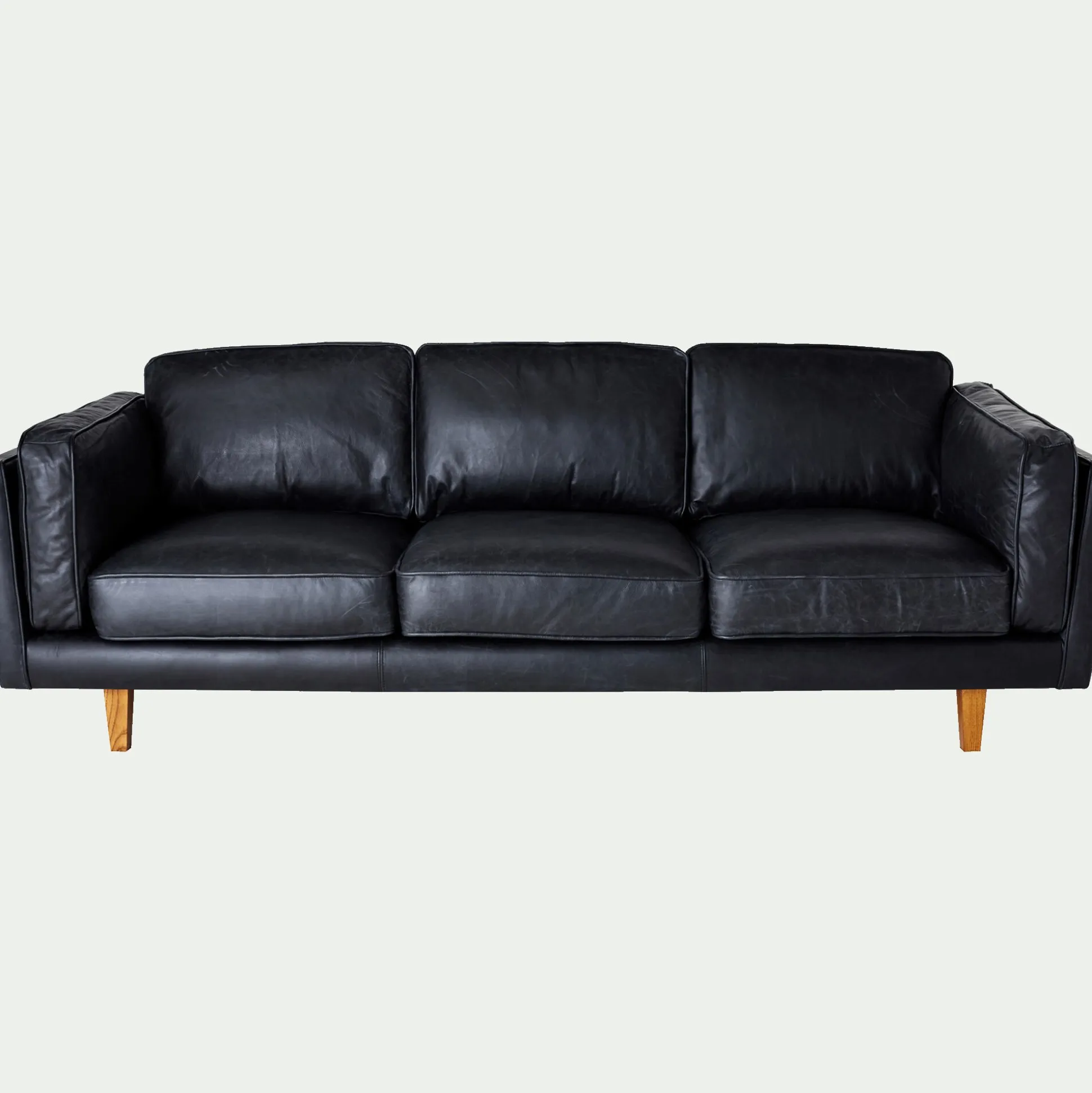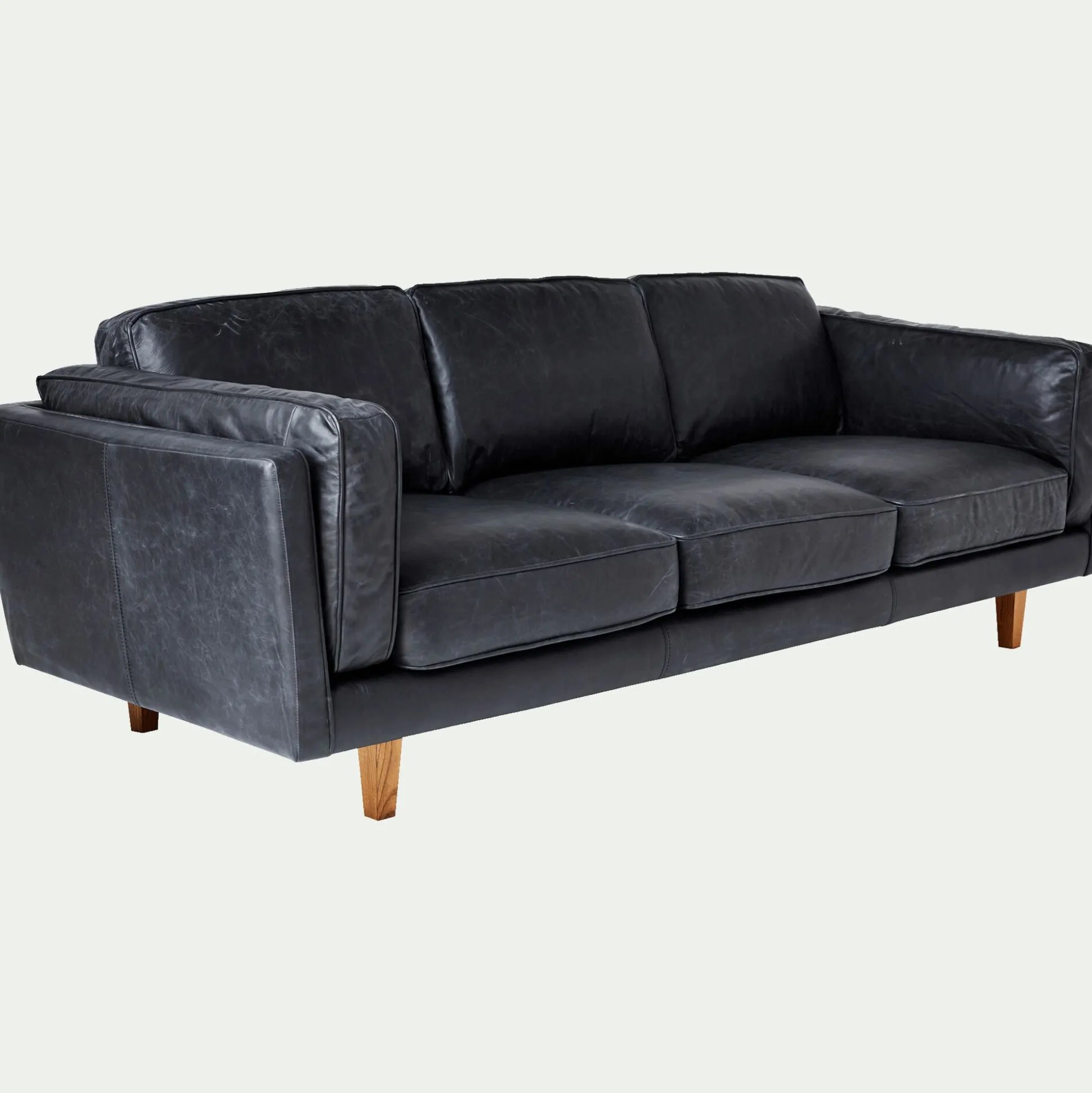 On craque pour l’élégance et le style affirmé de ce superbe canapé 3 places fixe en cuir de vachette noir. Il saura créer une ambiance chaleureuse et cosy dans votre salon et sera parfait dans une ambiance aux accents exotiques. Véritable invitation au confort, ce canapé vous propose un excellent confort d’assise avec un garnissage en plumes et des accoudoirs rembourrés pour des moments de détente agréables. Son cuir vieilli de grande qualité opte pour une finition aniline afin de conserver toutes les qualités d’un cuir authentique et vous proposera au fil des ans une belle patine ! On adopte avec plaisir cette pièce au design d’exception pour un salon qui affiche son originalité et son caractère.