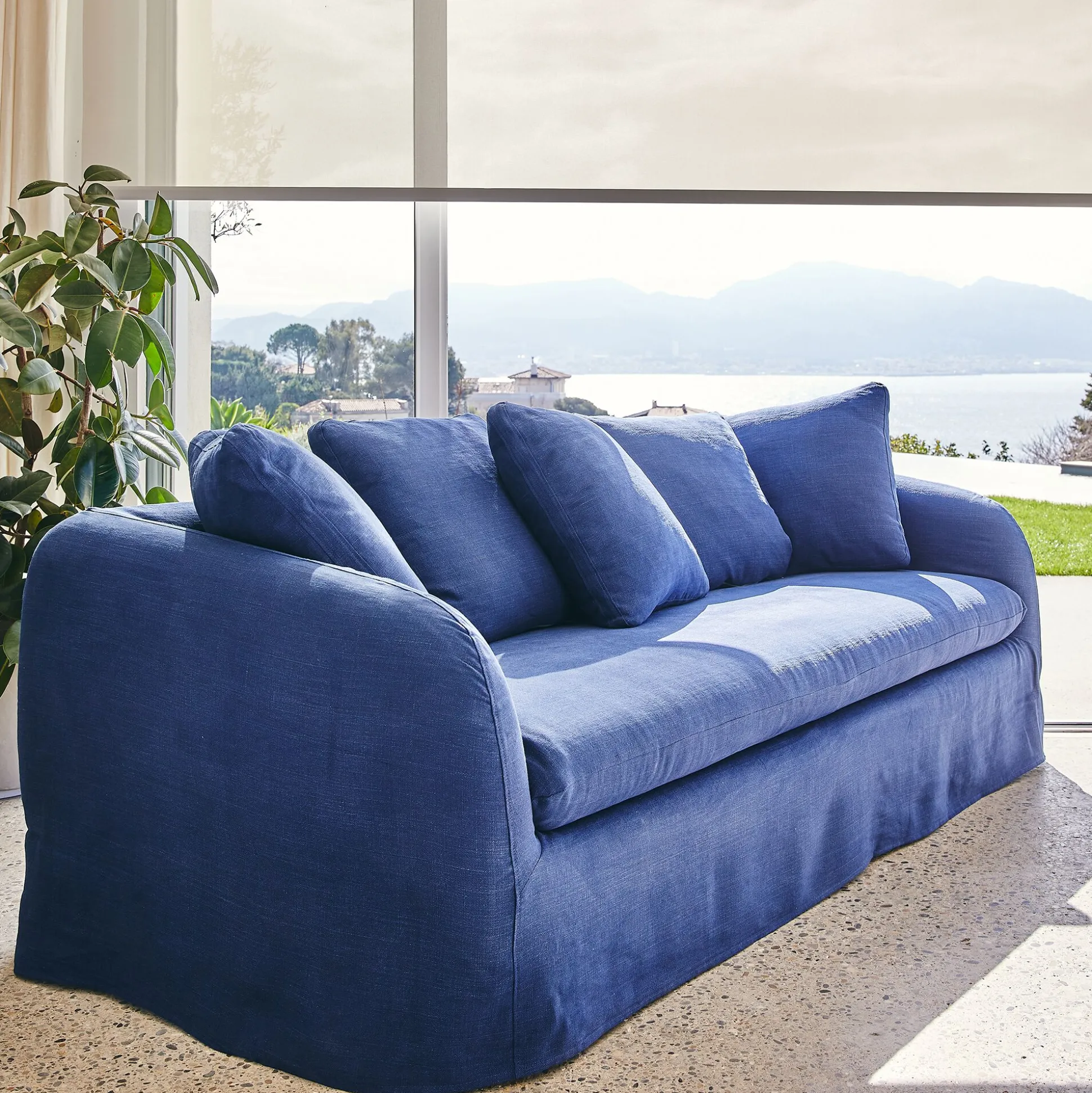Canapé 3 places fixe en lin – bleu marine