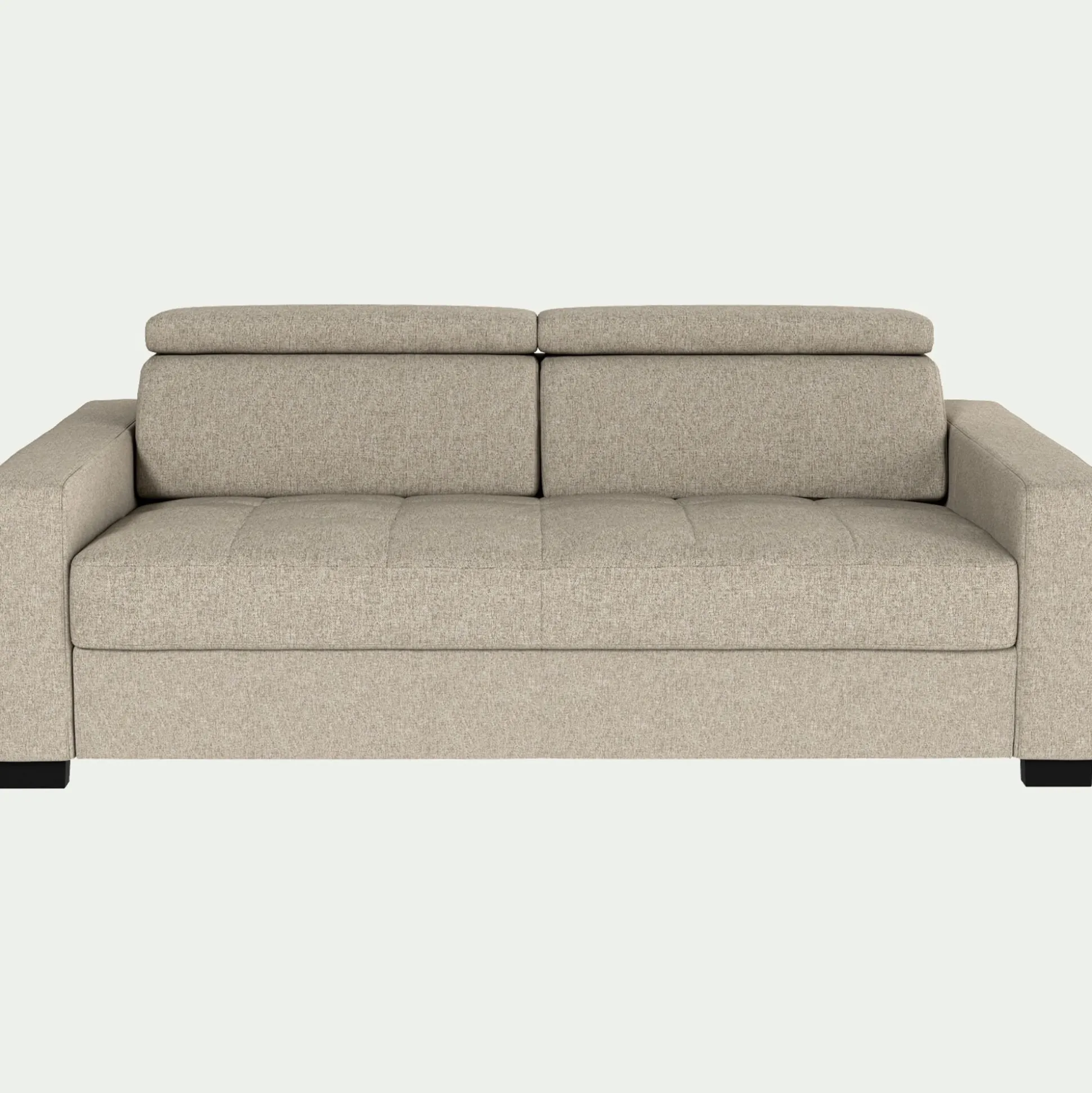 Mauro est une gamme de canapés au style contemporain et d’une grande élégance pour décorer votre salon. Conçu en Italie, il est le fruit d’un travail minutieux et d’un savoir-faire unique. Ce canapé 3 places en tissus pop couleur beige, arborant de larges accoudoirs de 20 cm et des têtières relevables, vous procurent un confort d’assise incomparable et vous invite à savourer d’agréables moments de détente. Un meuble de fabrication européenne qui sera la pièce maîtresse de votre salon va et sublimera votre décoration d’intérieur.