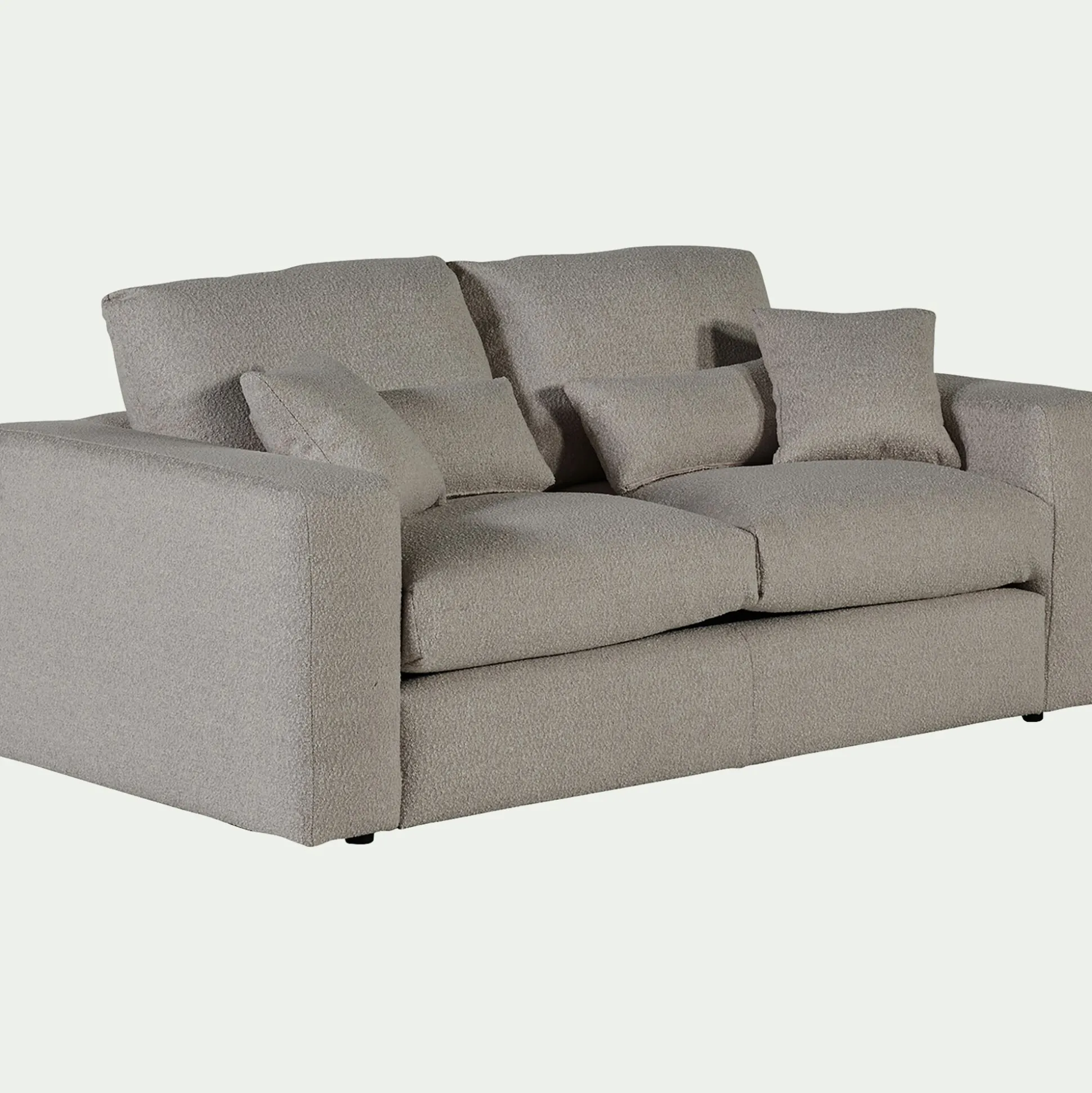 Le canapé Piuma est idéal pour se prélasser dans votre salon. Avec ses grandes assises, ce canapé d’angle droit en tissu bouclette vous offre un confort exceptionnel. Il vous permet de vous détendre au coeur de coussins moelleux dans un nuage de douceur renforcé par son tissu délicat. Vous pourrez ainsi recevoir famille et amis lors d’un moment apaisant. Ce canapé 3 places fixe de couleur gris clair apporte également une touche design moderne et élégante à votre salon. Son tissu bouclette donne un côté cocooning qui vous permet de transformer votre pièce en un espace chaleureux.