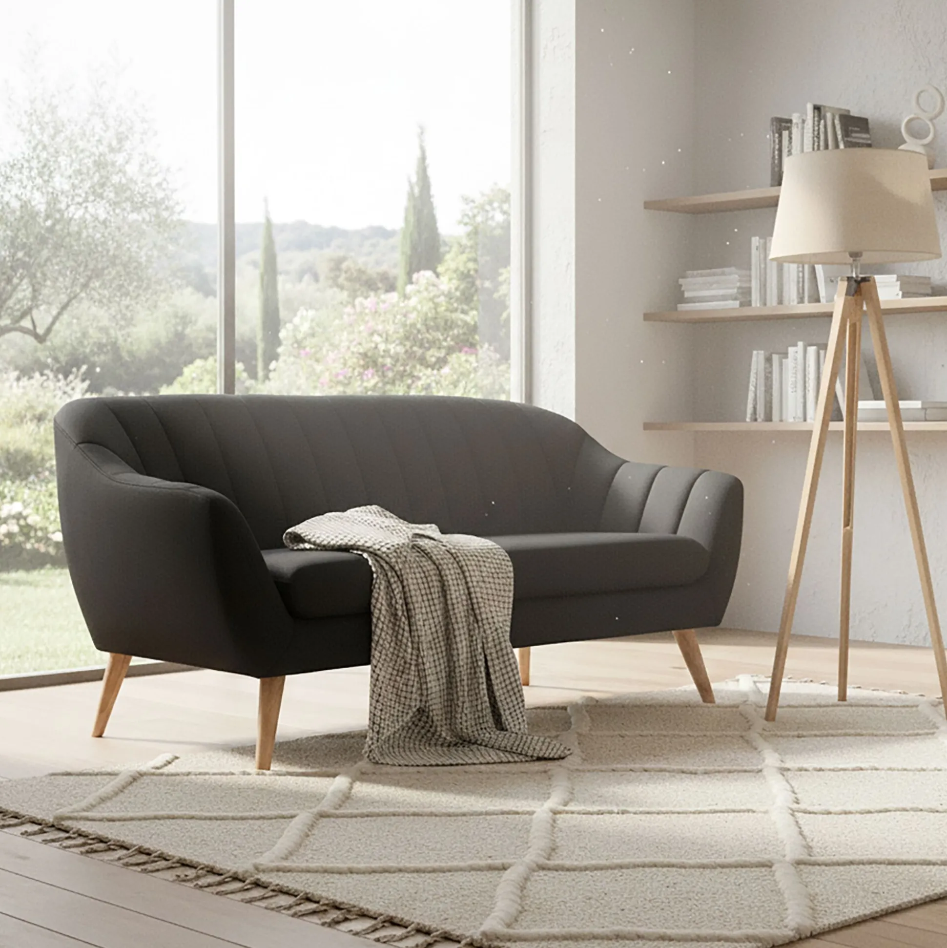 Un canapé de salon en tissu aux lignes élégantes pour sublimer votre intérieur. Vous apprécierez l’association d’un style vintage et d’un design contemporain. Son dossier et ses accoudoirs vous offrent un confort d’assise des plus agréables. Un coloris gris anthracite qui apporte une touche citadine et raffinée à votre décoration. Un canapé confortable qui invite à la détente.
