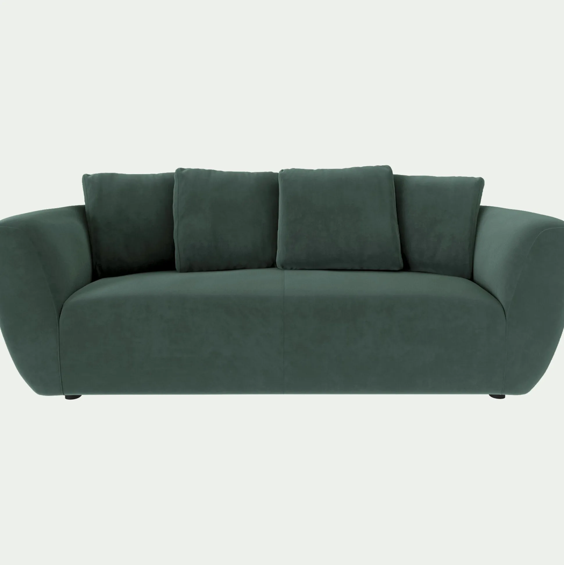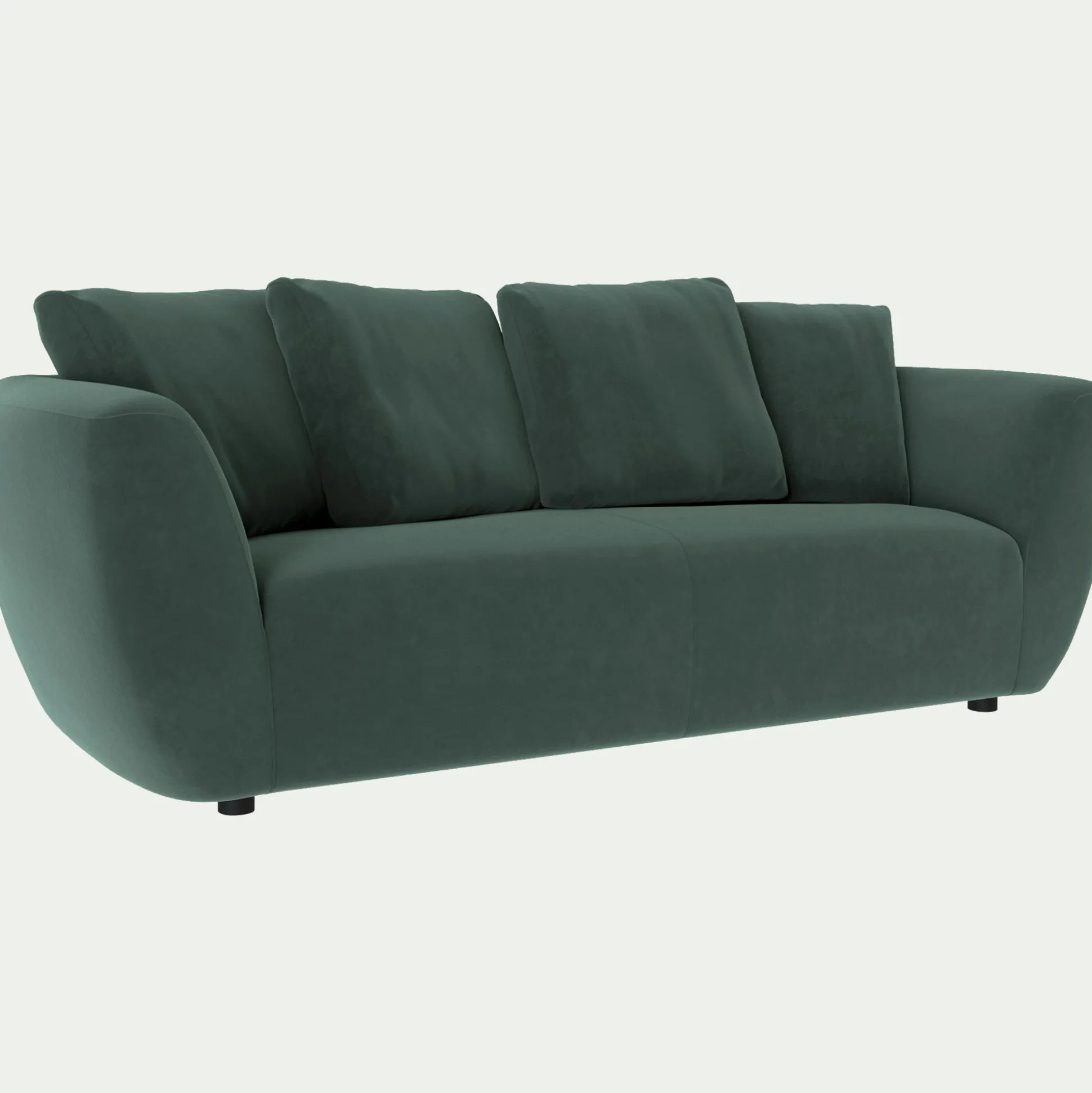 Avec son revêtement en tissu vert, ce canapé 3 places conjugue douceur et élégance. Son tissu velours met en valeur chaque courbe, apportant une touche raffinée à l’espace. Le vert sauge, teinte douce et naturelle, trouve facilement sa place dans une décoration intemporelle, qu’elle soit contemporaine, bohème ou vintage. Son assise moelleuse invite à la détente, tandis que son dossier partiellement garni de plumes d’oie enveloppe de confort. Pensé pour durer, ce canapé fixe repose sur une structure en bois certifié FSC. Ses coussins de dos déhoussables facilitent l’entretien. Une pièce fabriquée en Italie, où design et confort s’unissent avec subtilité.