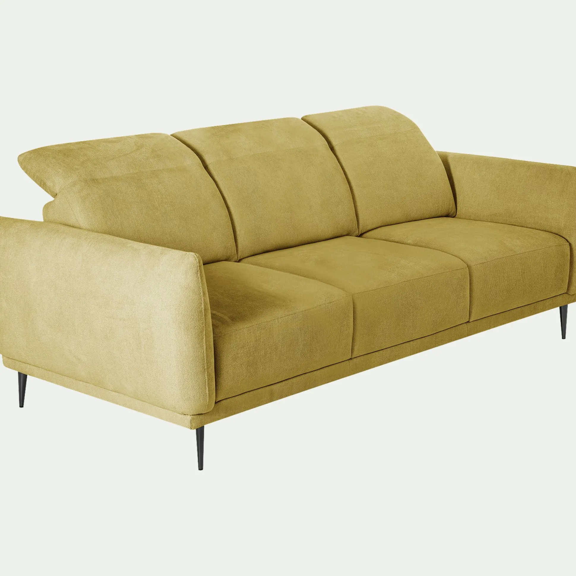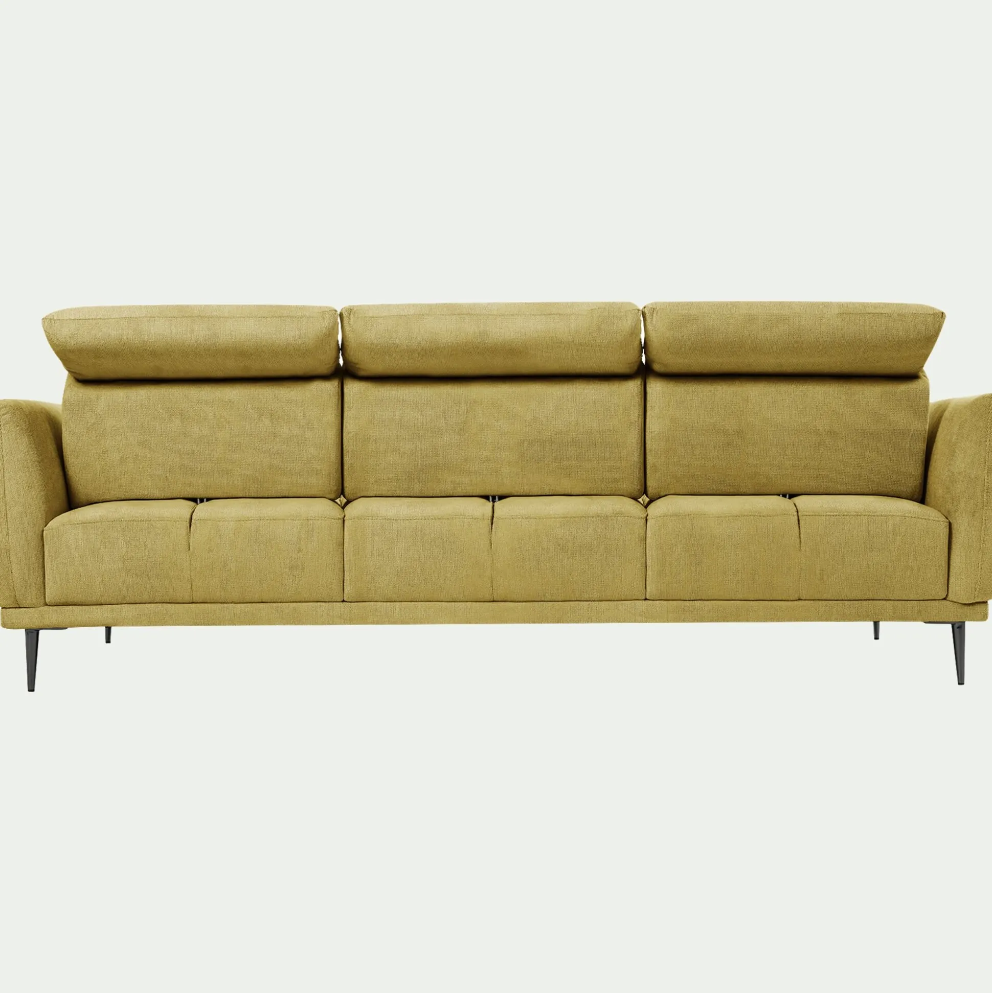 Fabriqué en Roumanie, le canapé 4 places Marko séduit par son design aux lignes nettes et son coloris intemporel jaune argan, facile à intégrer dans tous les styles d’intérieur. Pensé pour conjuguer esthétique et confort, il propose une assise généreuse et modulable grâce à son système de dossier coulissant, qui permet d’ajuster la profondeur selon les envies. Les têtières relevables viennent parfaire l’ensemble, offrant un soutien idéal pour les moments de lecture ou les soirées cinéma. Élégant et fonctionnel, ce canapé droit s’impose naturellement comme la pièce centrale du salon. Un canapé de caractère, conçu pour durer et pour accompagner tous les instants de détente du quotidien.