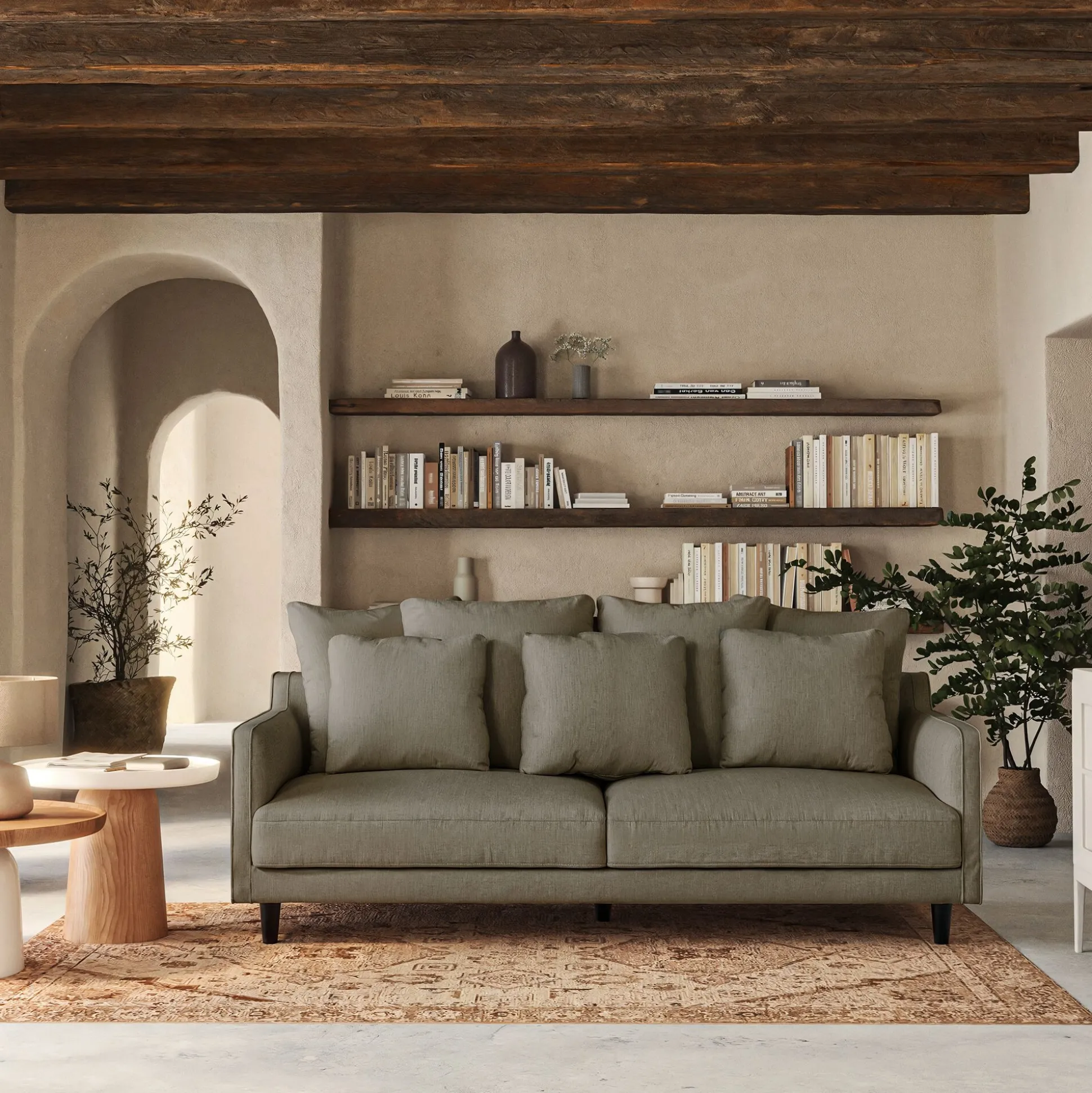 Fabriqué à la main par des passionnés italiens avec une tradition ancestrale dans le domaine du siège et de la tapisserie, ce canapé saura séduire les amateurs de déco. LENITA est une remarquable réinterprétation moderne d’un canapé, inspiré de l’époque somptueuse du Second Empire. Ce canapé fixe de 4 places en tissu mixte, avec sa couleur vert cèdre, est une façon idéale de décorer son salon d’une pièce raffinée. Installez-vous confortablement dans ce canapé moelleux, garni de plumes d’oies et venez vous détendre pour des moments de pur bien-être. Sa ligne, ses courbes, la préciosité de la matière veloutée inspirent le raffinement. Les multiples coussins repositionnables vous donneront le juste confort à tout moment de la journée. Son assise profonde et généreuse invite à la paresse. Il sera incontestablement la pièce qui vous fera passer de très bons moments cocooning.