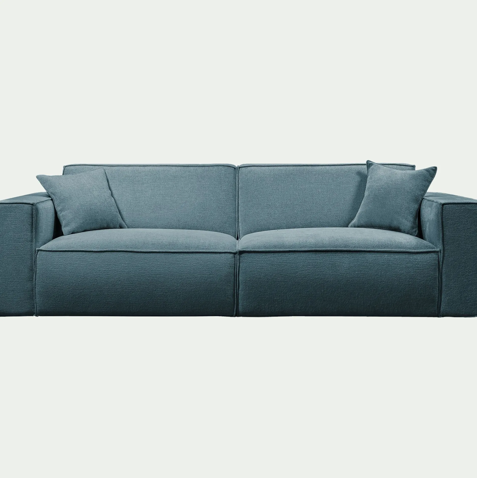 Avec son design épuré et son élégance naturelle, ce canapé droit 5 places s’impose comme une pièce centrale du salon. Son revêtement en tissu bleu égaye la décoration et s’harmonise avec tous les styles de décoration, du contemporain au plus classique. Conçu en Ukraine, il allie qualité et confort grâce à sa structure en pin massif et son assise dotée de ressorts Nosag, réputés pour leur durabilité et leur souplesse. Son assise généreuse et son dossier accueillant créent un espace cosy, parfait pour des instants de détente ou des moments de convivialité. Idéal pour aménager un salon chaleureux et moderne, ce canapé fixe séduit par son allure sobre et intemporelle, permise grâce à la qualité du tissu genesis.