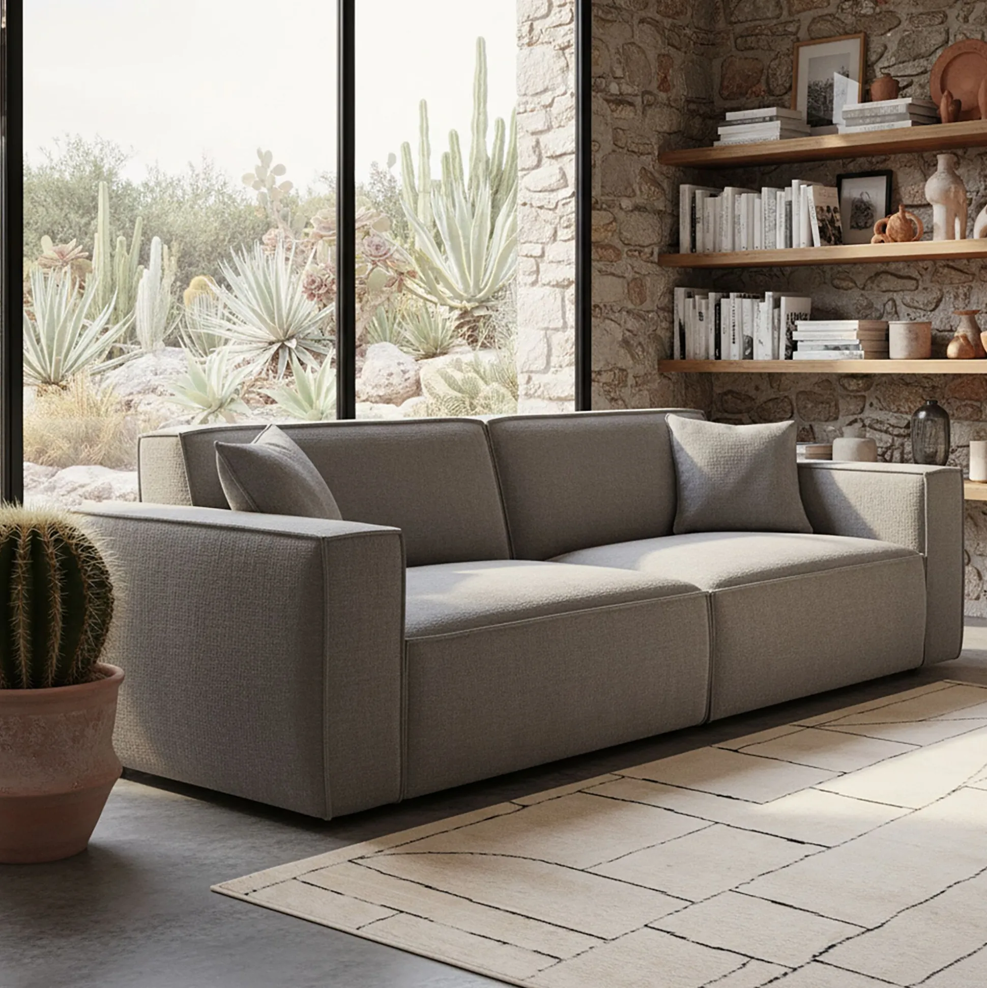 Avec son design épuré et son élégance naturelle, ce canapé droit 5 places s’impose comme une pièce centrale du salon. Son revêtement en tissu gris adoucit la décoration et s’harmonise avec tous les styles de décoration, du contemporain au plus classique. Conçu en Ukraine, il allie qualité et confort grâce à sa structure en pin massif et son assise dotée de ressorts Nosag, réputés pour leur durabilité et leur souplesse. Son assise généreuse et son dossier accueillant créent un espace cosy, parfait pour des instants de détente ou des moments de convivialité. Idéal pour aménager un salon chaleureux et moderne, ce canapé fixe séduit par son allure sobre et intemporelle, permise grâce à la qualité du tissu genesis.