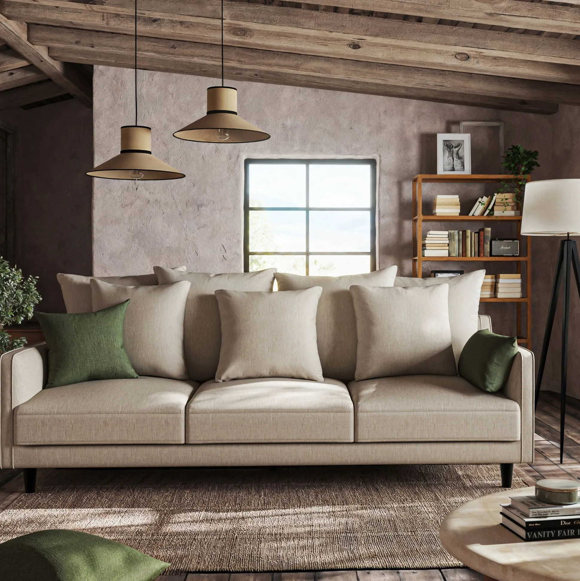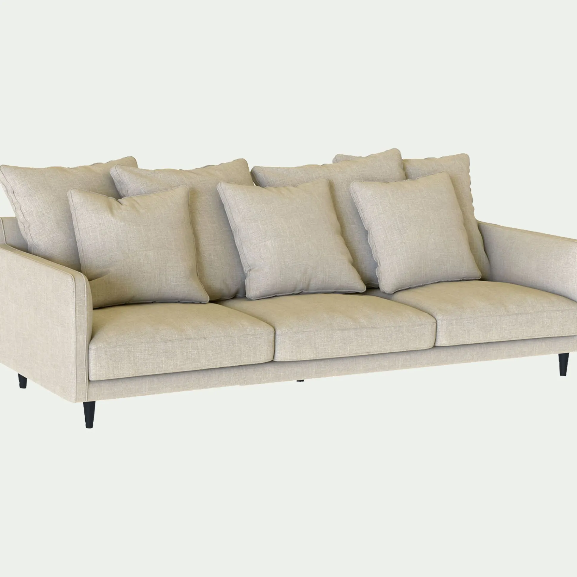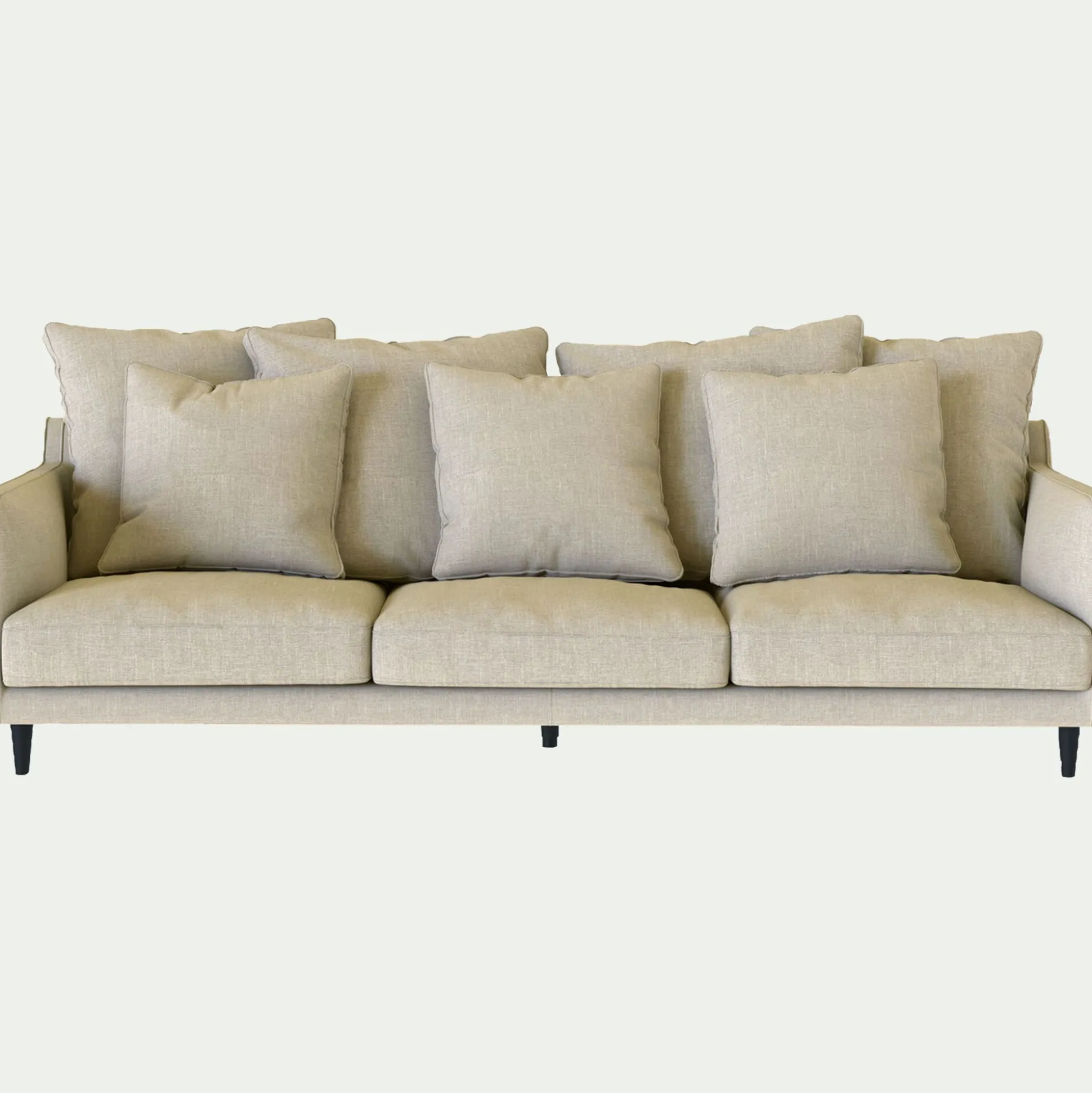 Fabriqué à la main par des passionnés italiens avec une tradition ancestrale dans le domaine du siège et de la tapisserie, ce canapé saura séduire les amateurs de déco. LENITA est une remarquable réinterprétation moderne d’un canapé, inspiré de l’époque somptueuse du Second Empire. Ce canapé fixe de 5 places en tissu mixte, avec sa couleur beige Alpilles, est une façon idéale de décorer son salon d’une pièce raffinée. Installez-vous confortablement dans ce canapé moelleux, garni de plumes d’oies et venez vous détendre pour des moments de pur bien-être. Sa ligne, ses courbes, la préciosité de la matière veloutée inspirent le raffinement. Les multiples coussins repositionnables vous donneront le juste confort à tout moment de la journée. Son assise profonde et généreuse invite à la paresse. Il sera incontestablement la pièce qui vous fera passer de très bons moments cocooning.