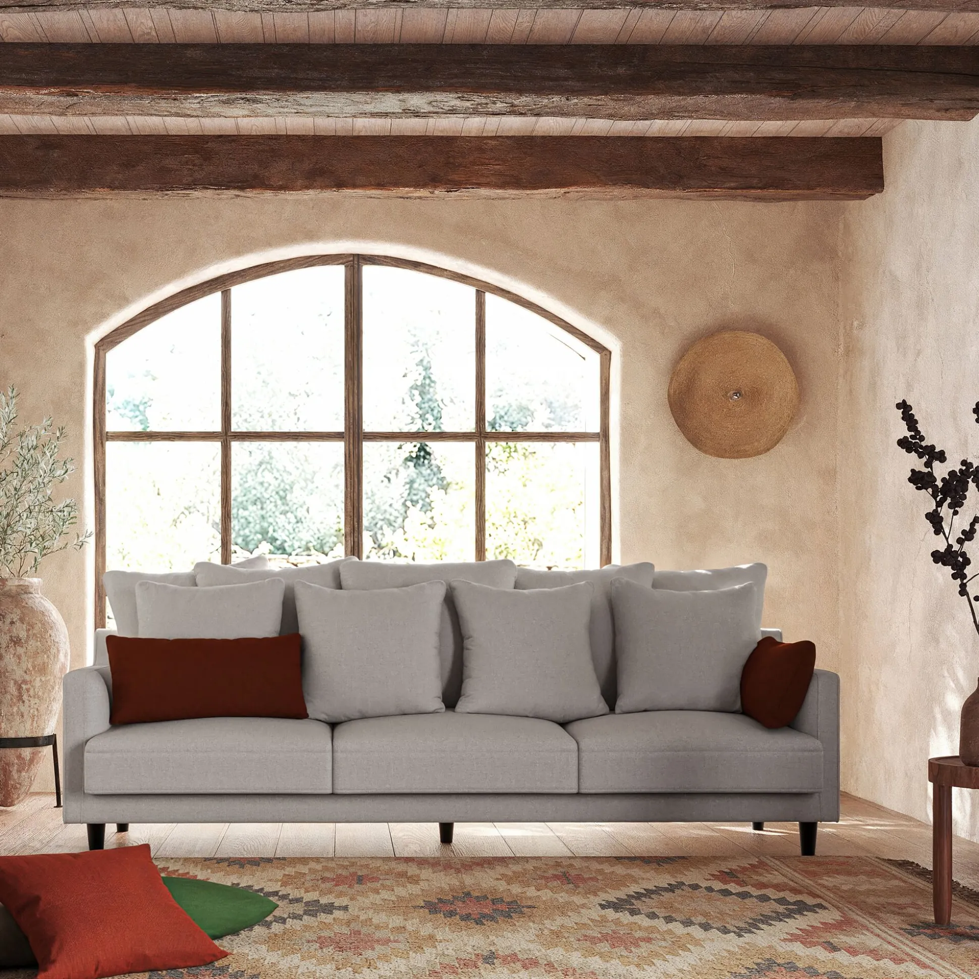 Canapé 6 places fixe en tissu joint – gris borie