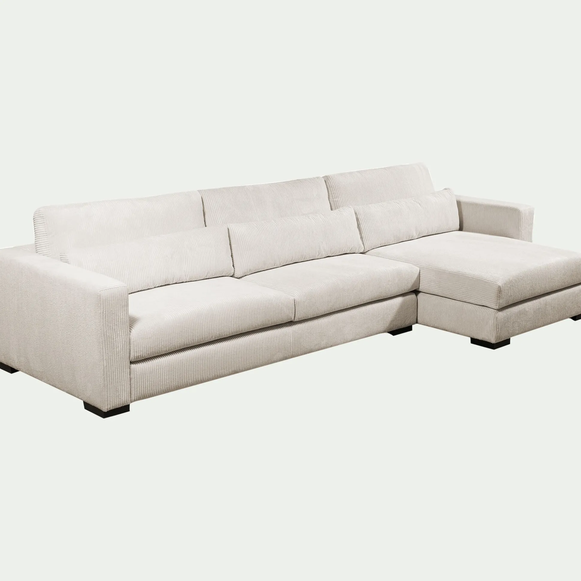 Spacieux et raffiné, le canapé d’angle Batis avec angle à droite transforme le salon en un espace convivial et confortable. Sa chaise longue offre un espace idéal pour s’allonger et savourer un véritable instant de repos. En velours côtelé, il insuffle un vent de douceur et d’élégance dans le salon. Sa couleur beige participe à un espace lumineux et reposant, mais aussi polyvalent et intemporel en termes de décoration. Conçu pour durer, ce canapé fixe repose sur une structure en bois massif, garantissant solidité et stabilité. Il s’impose comme l’élément central du salon, invitant à la détente.