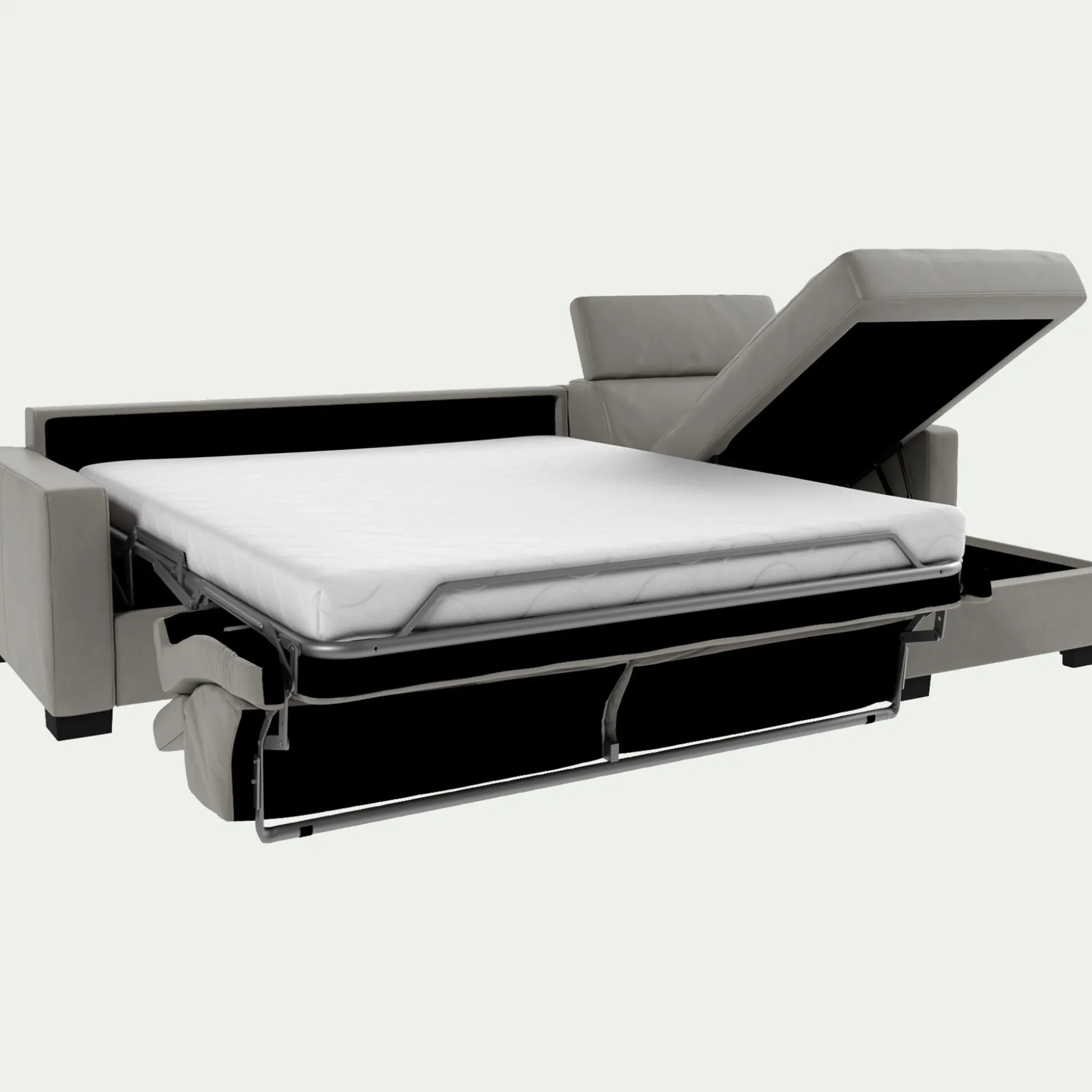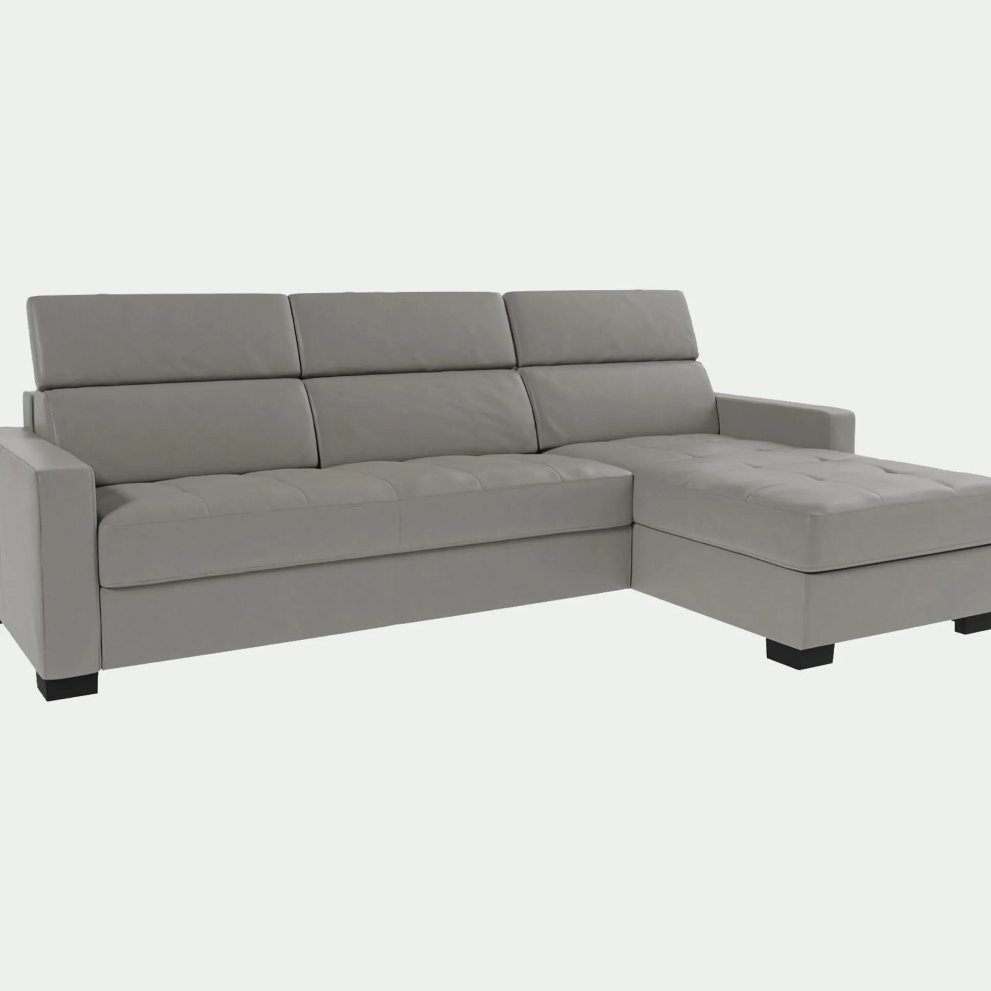 Canapé d’angle convertible en cuir avec accoudoirs 15cm – gris borie