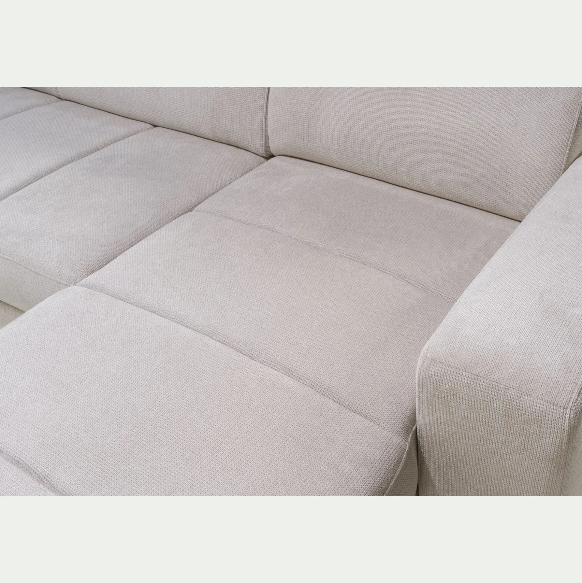 Un superbe canapé d’angle réversible en tissu d’un coloris beige, idéal pour un grand salon. Ce canapé vous offre un espace détente spacieux et confortable avec son assise capitonnée et ses têtières relevables qui accompagneront tous vos mouvements. Convertible, il met à votre disposition un couchage occasionnel de 130×200 cm. Pratique et astucieux, ce grand canapé vous propose également un coffre de rangement sous la méridienne. Vous avez ainsi un espace de rangement supplémentaire à disposition pour mettre vos plaids et coussins de façon pratique. Optez sans hésiter pour ce canapé qui allie fonctionnalité, style et confort.