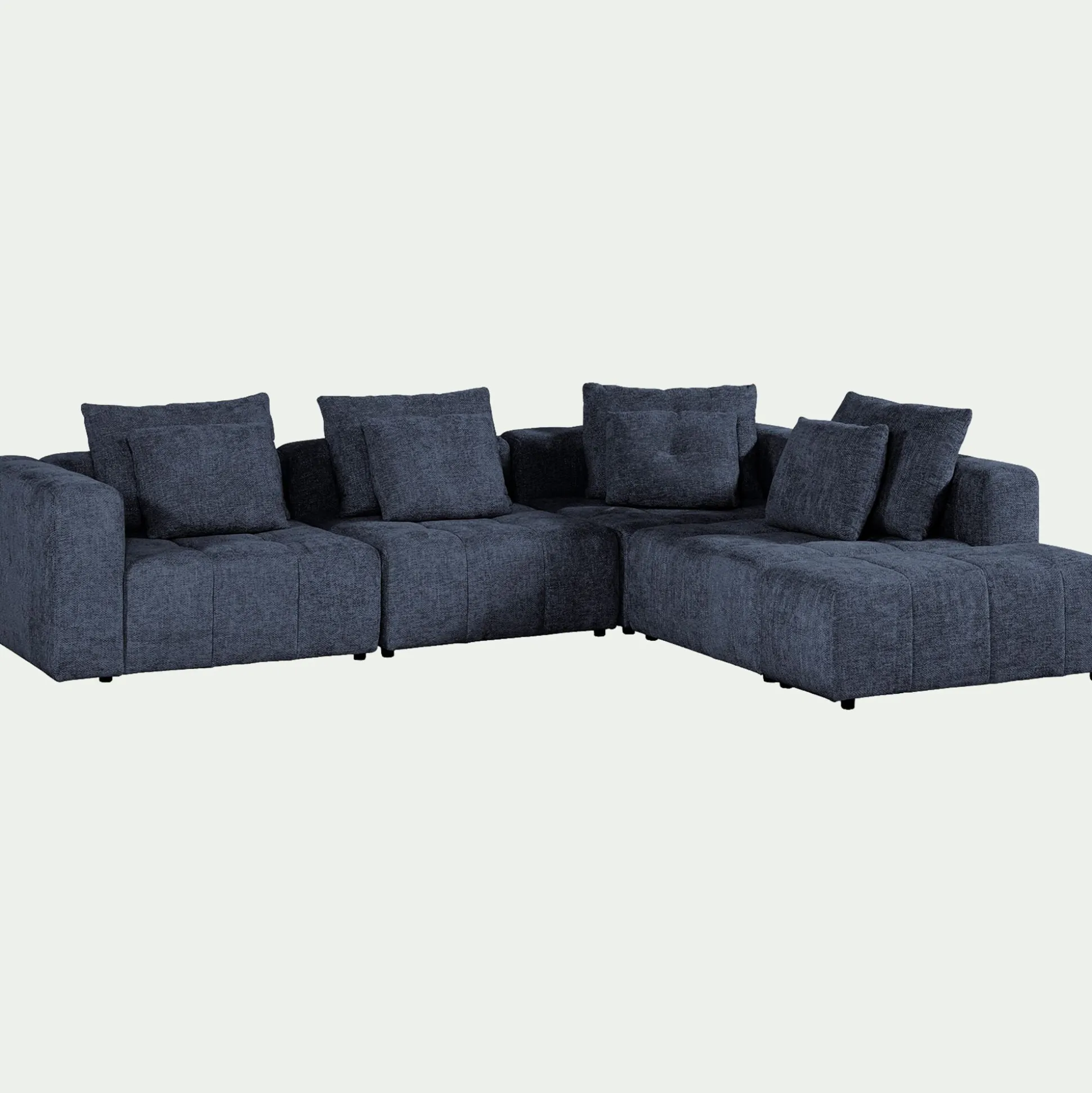 Optez pour le confort et la qualité avec ce canapé d’angle droit en tissu Benjo, fabriqué en Belgique. Son coloris bleu marine, lumineux et intemporel, crée une ambiance apaisante dans votre salon. Son pouf modulable vous offre une flexibilité totale pour vous détendre et accueillir vos proches, tout en profitant du savoir-faire belge.