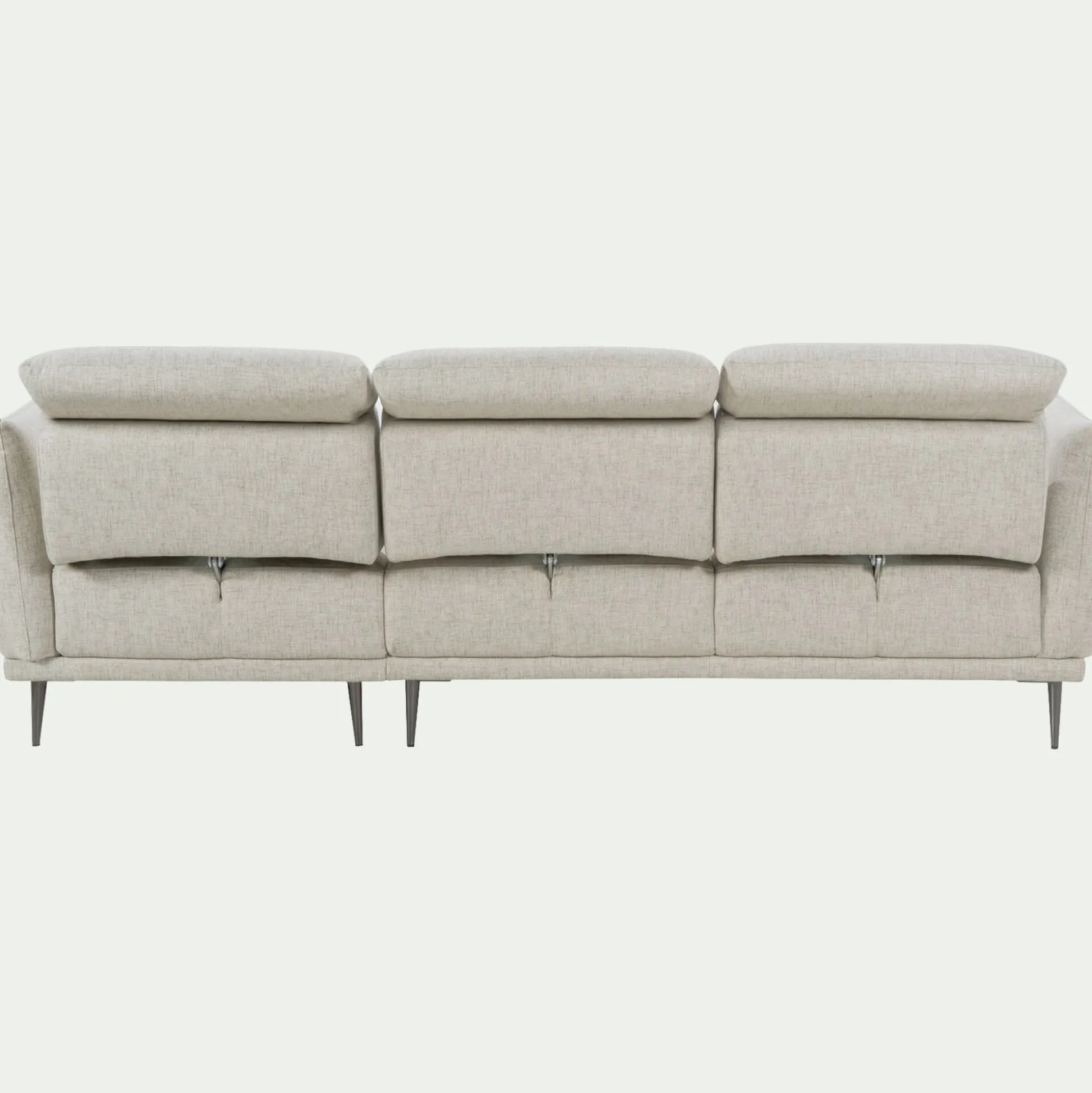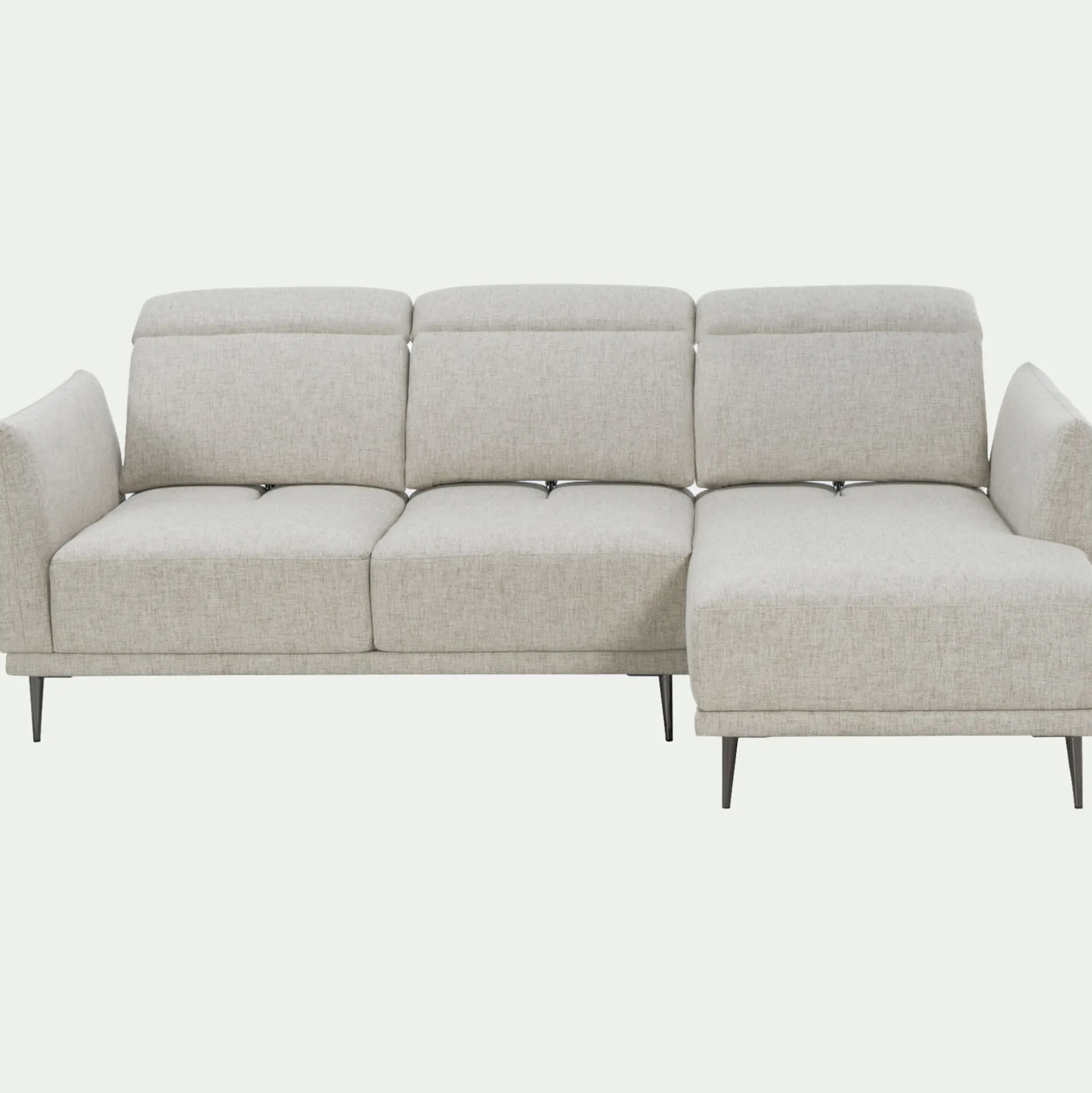 Optez pour ce canapé d’angle droit 3 places fabriqué en Roumanie. Il arbore un design sobre et chic, ainsi qu’une couleur intemporelle beige roucas qui s’accordera avec charme à la décoration de votre salon. Du confort, une assise profonde et généreuse, grâce à un système de dossier qui peut reculer, Marko est un beau canapé qui conviendra parfaitement comme pièce maîtresse de votre pièce de vie. De plus, vous pouvez relever les têtières pour pouvoir être bien installé devant la télé ou lire un livre. Un canapé à la fois déco et d’une qualité exceptionnelle, c’est un meuble qui saura vous séduire.