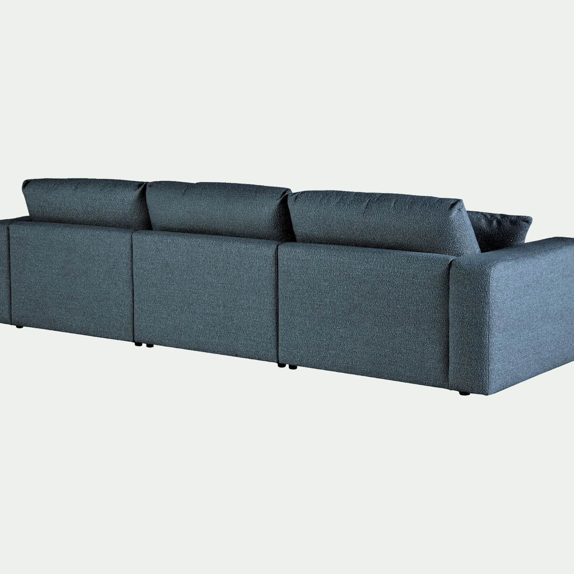 Le canapé Piuma est idéal pour se prélasser dans votre salon. Avec ses grandes assises, ce canapé d’angle droit en tissu bouclette vous offre un confort exceptionnel. Il vous permet de vous détendre au coeur de coussins moelleux dans un nuage de douceur renforcé par son tissu délicat. Vous pourrez ainsi recevoir famille et amis lors d’un moment apaisant. Ce canapé fixe de couleur bleu apporte également une touche design moderne et élégante à votre salon. Son tissu bouclette donne un côté cocooning qui vous permet de transformer votre pièce en un espace chaleureux.