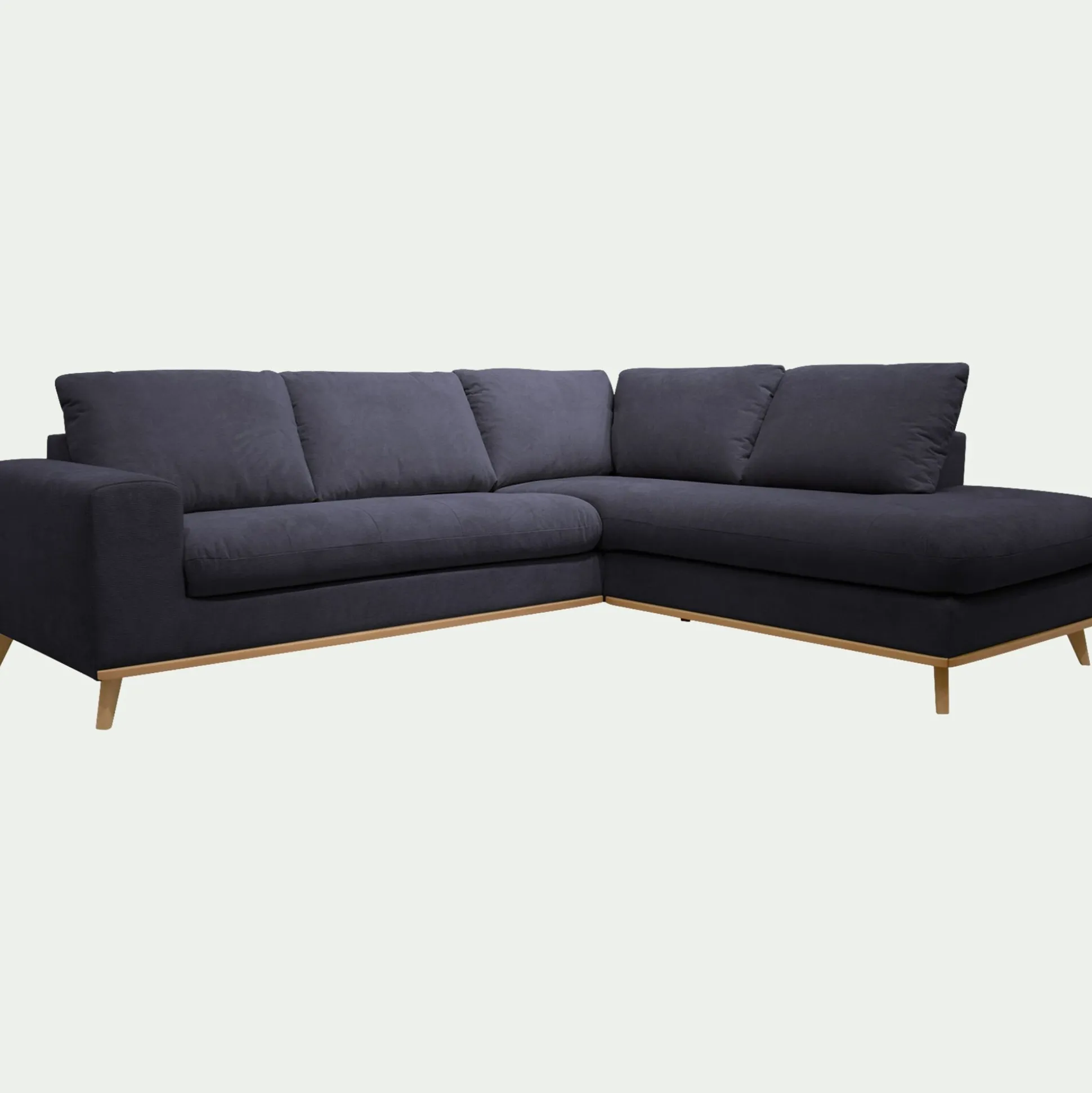 Le canapé d’angle Capia allie confort, style et praticité. Il offre une assise spacieuse pour 5 personnes grâce à son angle à droite, large et profond pour des moments de détente incomparables. Ce canapé fixe est revêtu d’un tissu Crown dans notre coloris bleu calabrun, unique et apaisant. Son tissage certifié Oeko-Tex apporte douceur et résistance, parfait pour une utilisation quotidienne. Son design repose sur une structure en pin massif et des pieds en hêtre massif, gage de solidité et de durabilité. Les coussins de dos déhoussables facilitent l’entretien. Une fabrication française qui conjugue esthétique et fonctionnalité.