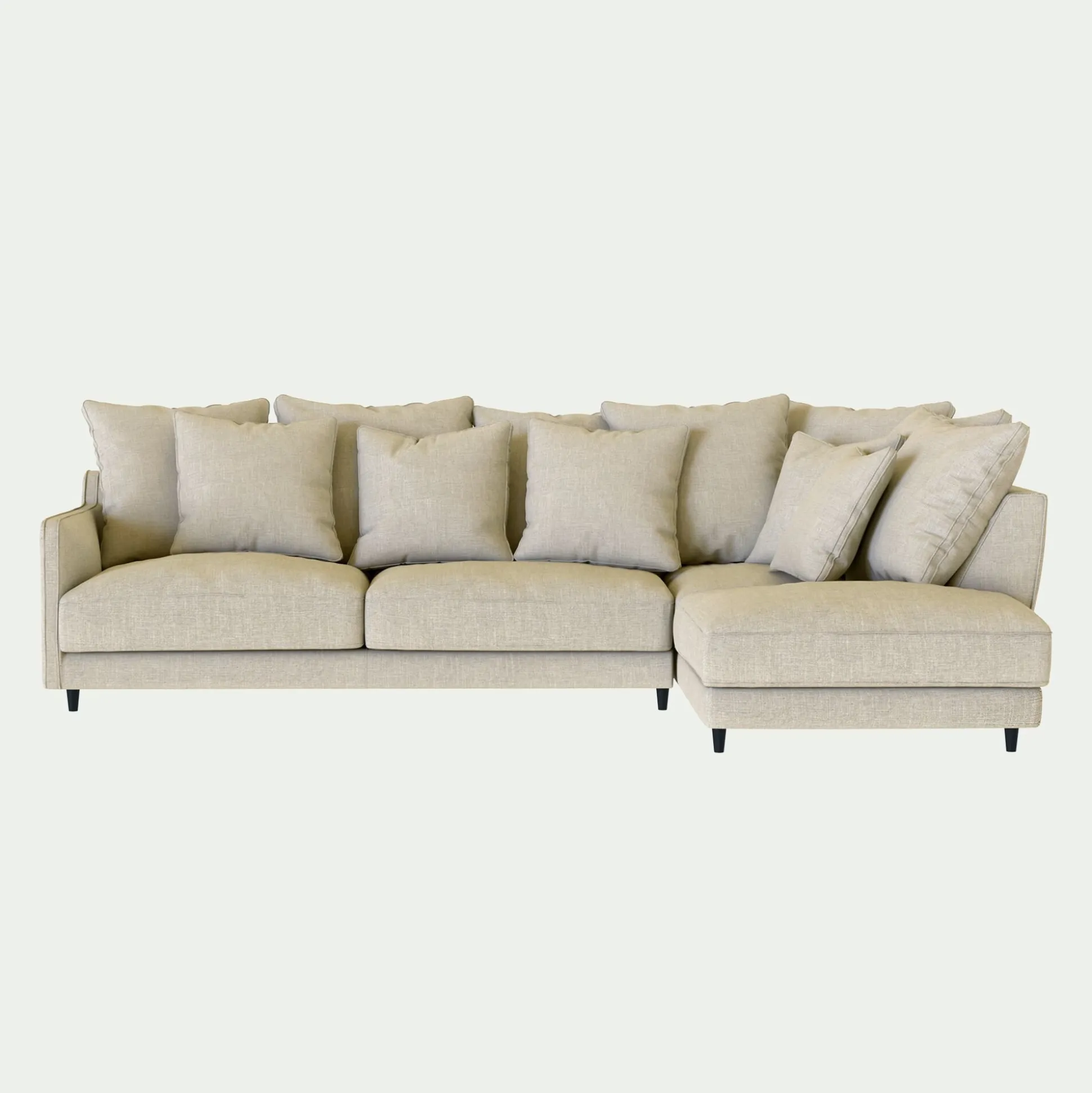 Canapé d’angle droit fixe en tissu mixte – beige alpilles