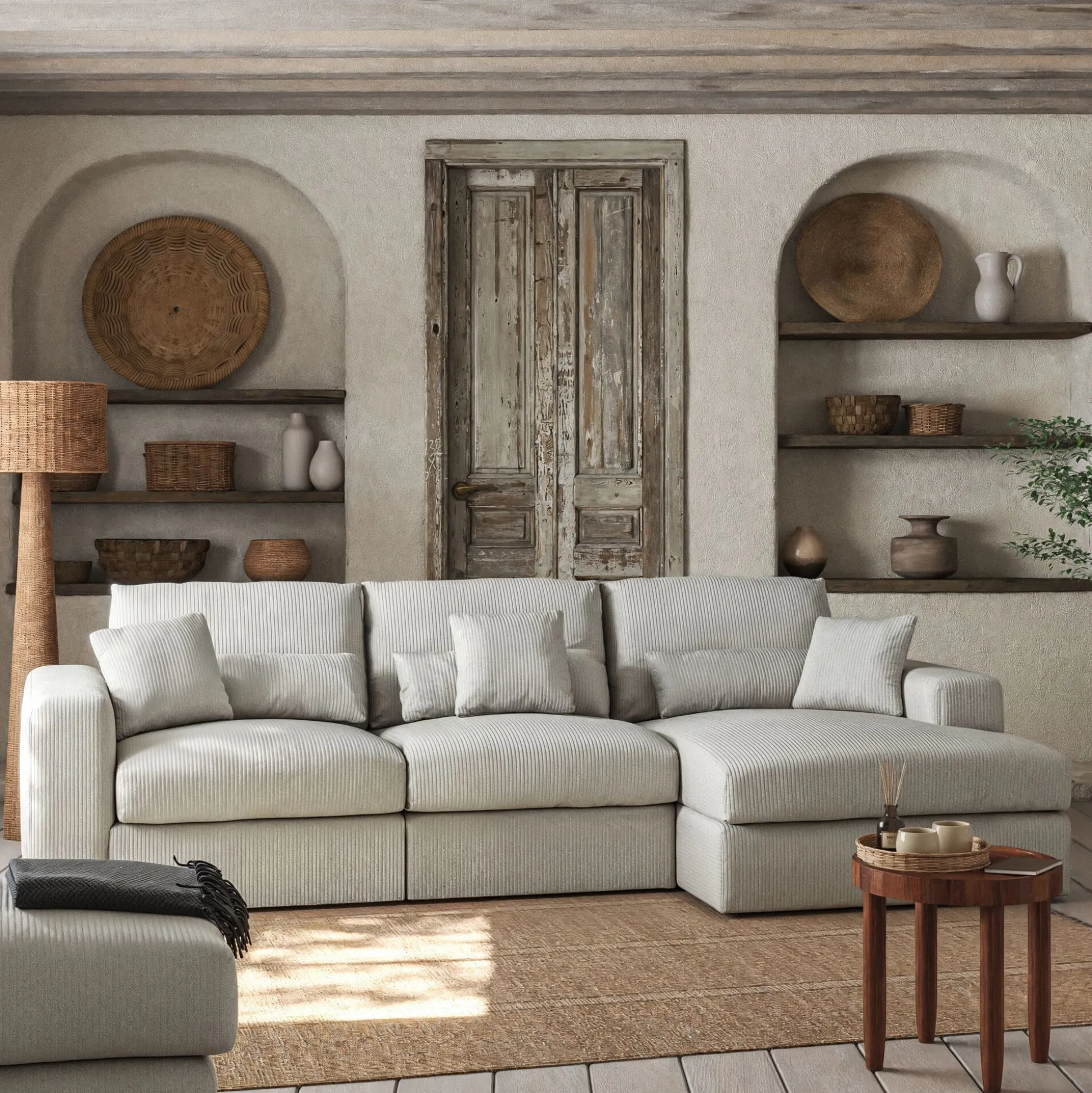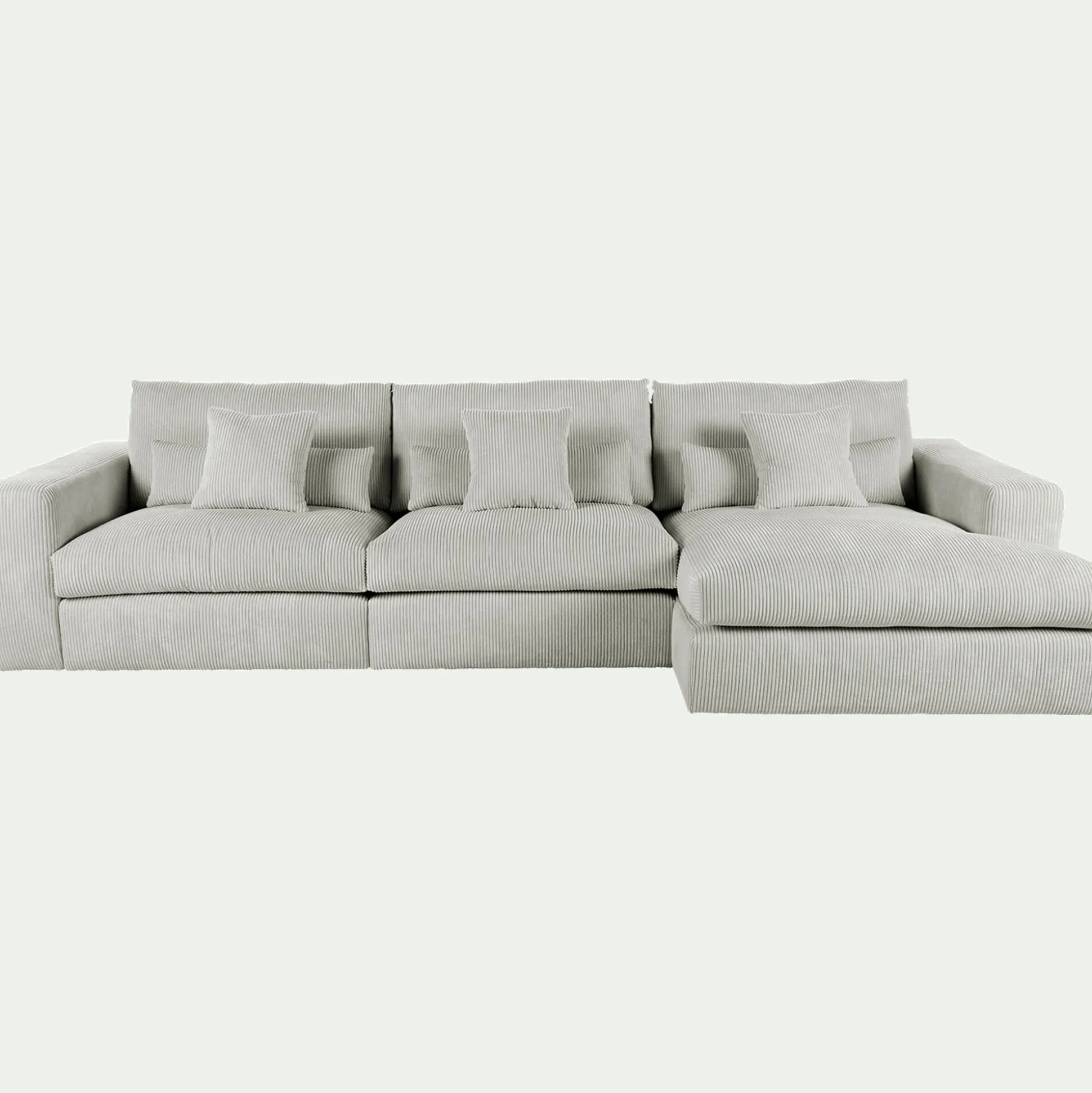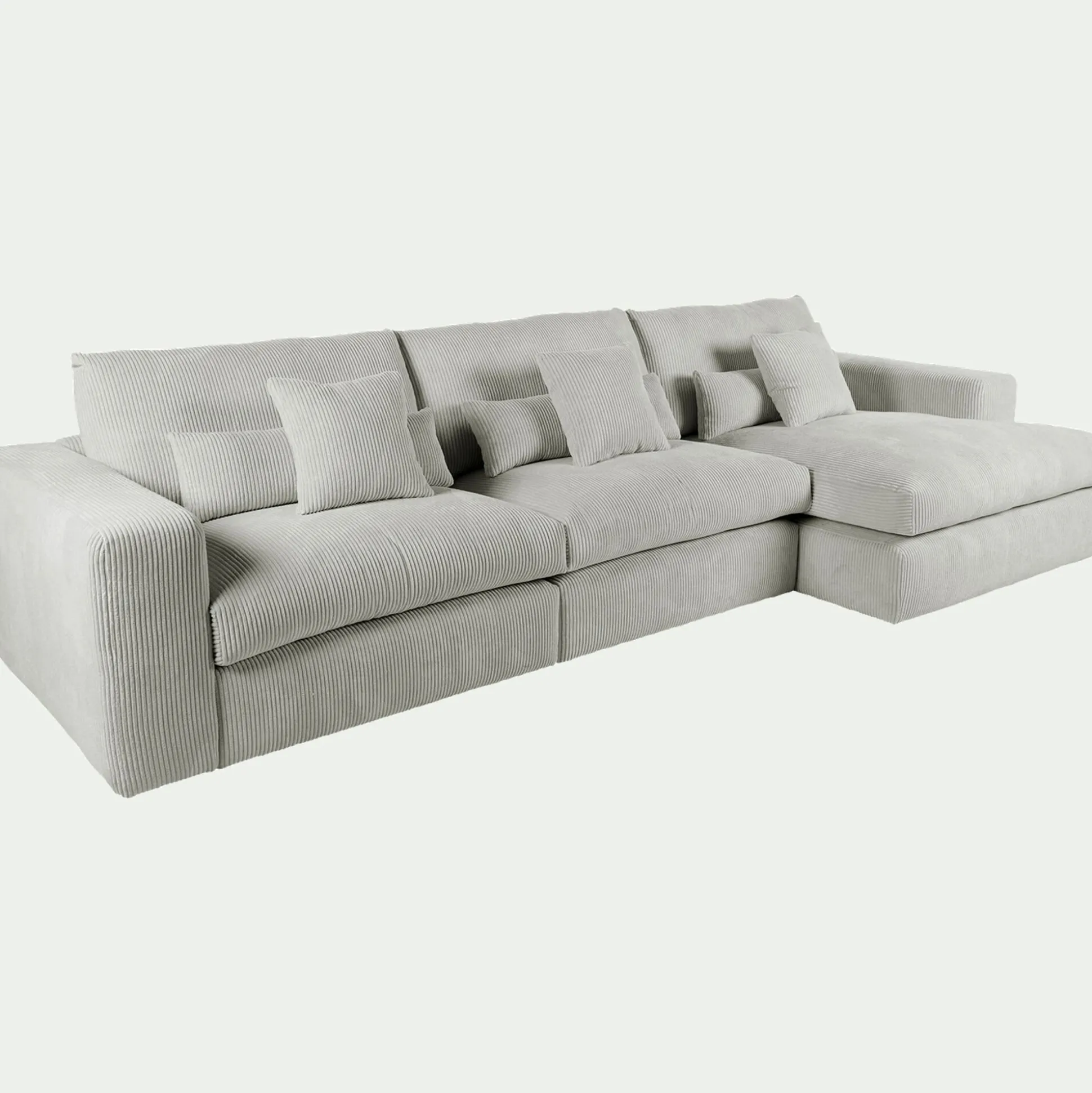 Le canapé Piuma est idéal pour se prélasser dans votre salon. Avec ses grandes assises, ce canapé d’angle droit en velours côtelé vous offre un confort exceptionnel. Il vous permet de vous détendre au coeur de coussins moelleux dans un nuage de douceur renforcé par son tissu délicat. Vous pourrez ainsi recevoir famille et amis lors d’un moment apaisant. Ce canapé fixe de couleur gris apporte également une touche design moderne et élégante à votre salon. Son velours côtelé donne un côté cocooning qui vous permet de transformer votre pièce en un espace chaleureux.