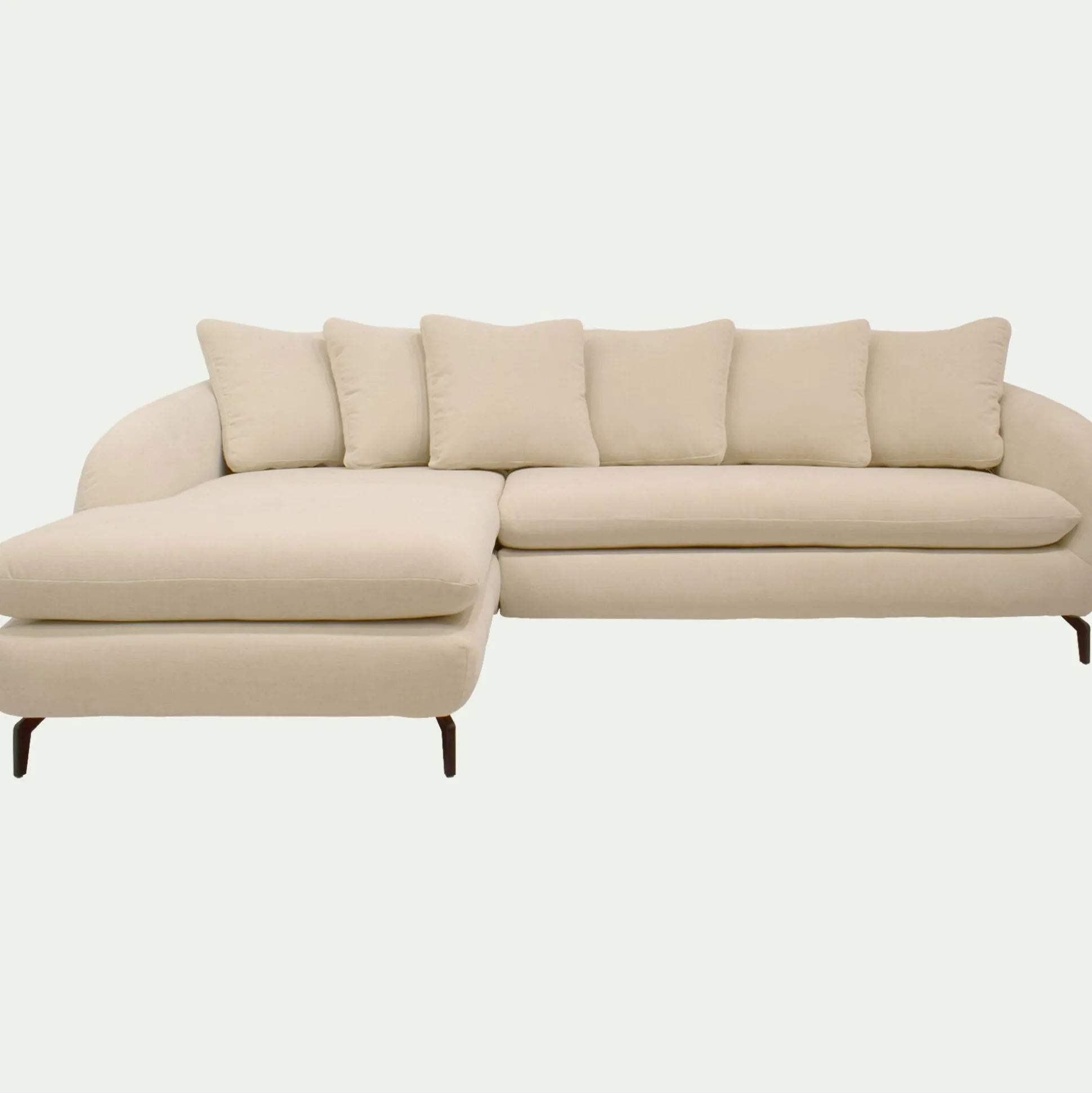 Un joli canapé d’angle gauche en tissu pour profiter agréablement de votre salon. Un look contemporain et accueillant, sublimé par un piétement original en acier noir. Vous apprécierez la forme du dossier et des accoudoirs qui vous offrent un maintien optimal de votre dos pour un confort d’assise exceptionnel. De plus, vous pourrez vous reposer sur son matelas et accueillir famille et amis grâce à sa fonction convertible. Un canapé fabriqué en France, dans des ateliers proches de la ville de Bourge, qui incarne l’excellence du savoir-faire français. Un coloris blanc écru qui apporte une note citadine et raffinée à votre décoration de salon.
