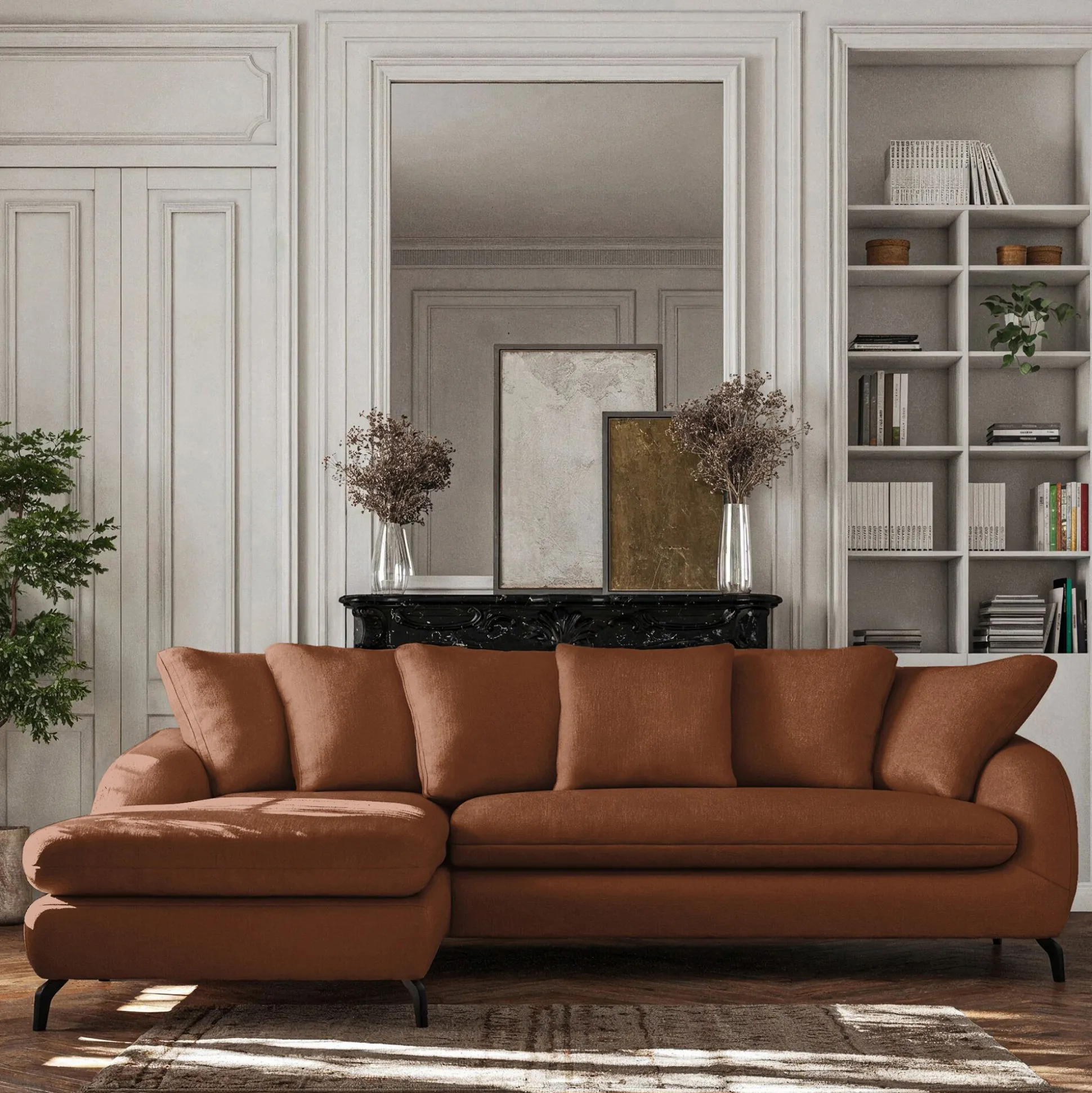 Un joli canapé d’angle gauche en tissu pour profiter agréablement de votre salon. Un look contemporain et accueillant, sublimé par un piétement original en acier noir. Vous apprécierez la forme du dossier et des accoudoirs qui vous offrent un maintien optimal de votre dos pour un confort d’assise exceptionnel. De plus, vous pourrez vous reposer sur son matelas et accueillir famille et amis grâce à sa fonction convertible. Un canapé fabriqué en France, dans des ateliers proches de la ville de Bourge, qui incarne l’excellence du savoir-faire français. Un coloris brun rustrel qui apporte une note citadine et raffinée à votre décoration de salon.