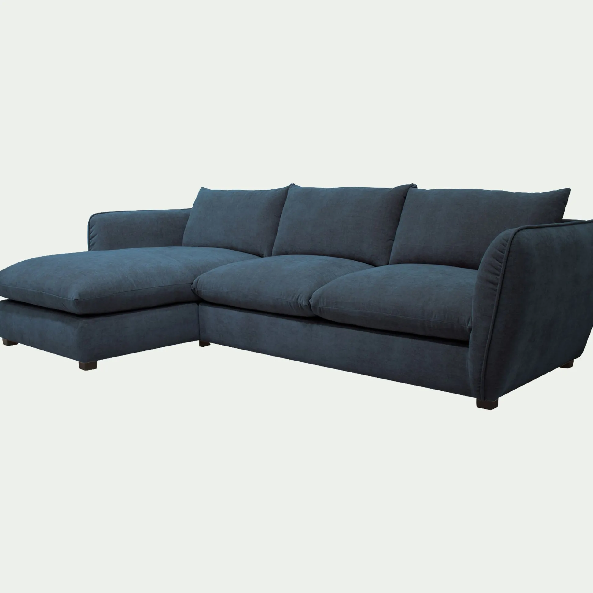 De jour comme de nuit, ce canapé d’angle convertible avec angle à gauche s’adapte à toutes les envies. Avec son tissu bleu, il égaye le salon et lui insuffle une atmosphère conviviale et cosy. Son assise profonde et sa méridienne invitent à la détente, offrant un confort idéal pour les moments de repos ou de convivialité. Son design généreux et cosy en fait une pièce maîtresse qui réchauffe l’espace avec élégance. Et lorsque l’heure du coucher approche, ce canapé d’angle se transforme en couchage occasionnel en un clin d’œil. Grâce à son système express, il suffit de tirer pour dévoiler un sommier avec matelas de 140×190 cm, prêt à accueillir les invités pour la nuit. Plus qu’un simple canapé en tissu, c’est un véritable allié du quotidien, alliant style et fonctionnalité sans compromis.
