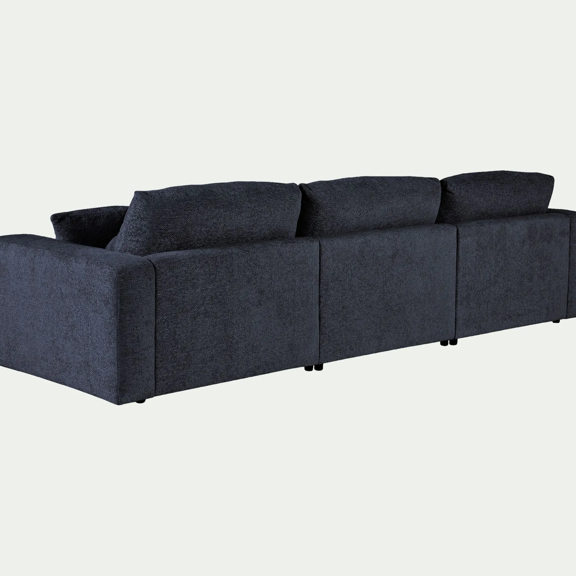 Avec son format généreux 5 places et son angle à gauche, ce canapé d’angle est une invitation aux moments partagés. Son revêtement en tissu chenille, à la fois doux et résistant, enveloppe l’espace d’une chaleur réconfortante. Son coloris bleu marine, intemporel, s’harmonise avec tous les styles d’intérieur. Pensé pour le confort, ce canapé fixe se compose d’une assise spacieuse, d’un dossier accueillant et de coussins déhoussables pour un entretien facilité. Six coussins décoratifs viennent parfaire l’ensemble, ajoutant une touche cosy. Un canapé idéal pour des instants de détente en famille ou entre amis.