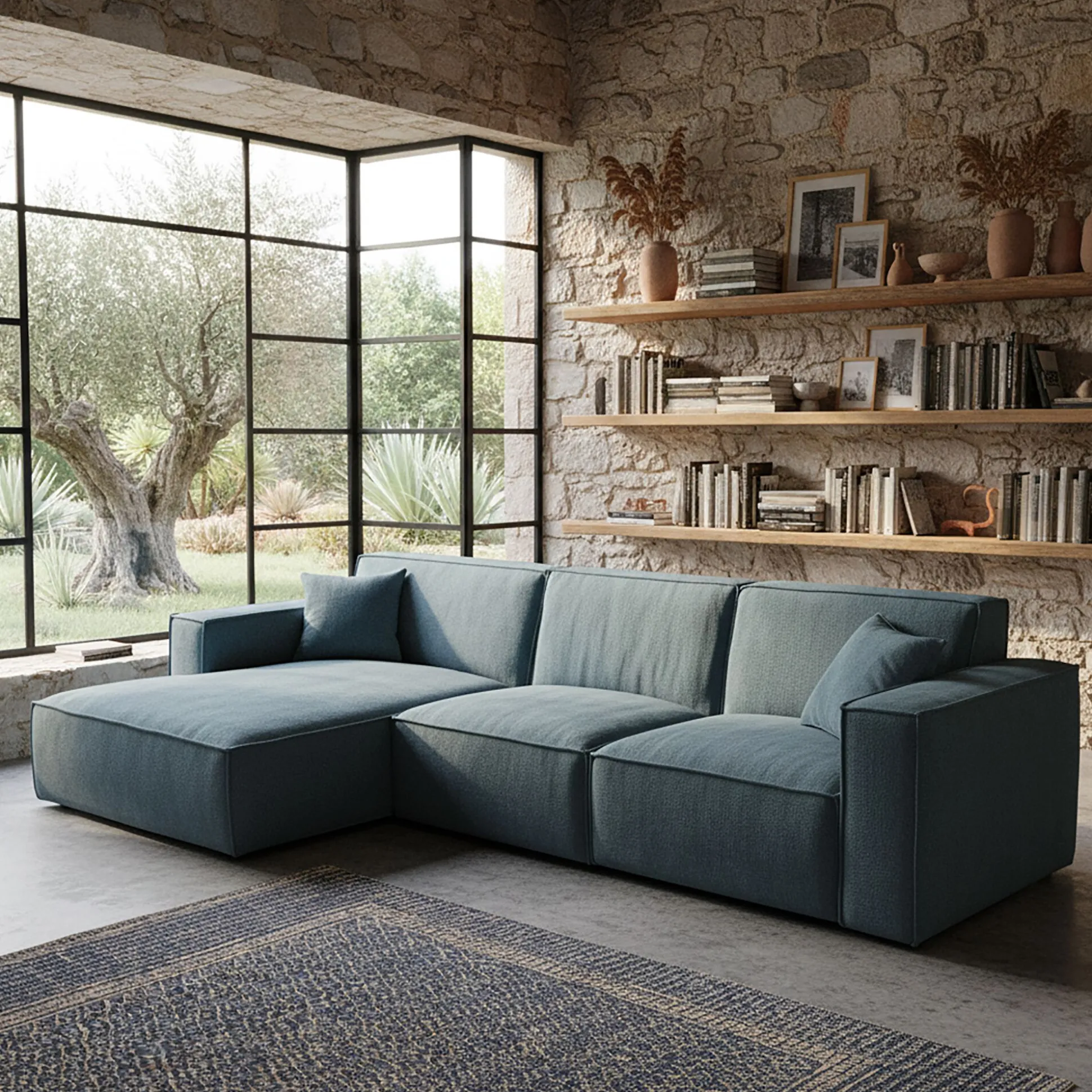 Le canapé d’angle Kubo avec méridienne à gauche est pensé pour offrir un espace accueillant et chaleureux dans le salon. Habillé de tissu genesis, à la fois doux et résistant, il allie confort et praticité au quotidien. Son coloris bleu, vif mais apaisant, s’intègre facilement dans toutes les ambiances et habille le séjour d’une touche de douceur. Fixe et généreux, ce canapé se distingue par une silhouette contemporaine qui structure l’espace avec élégance. Fabriqué en Ukraine, il conjugue style et confort pour accompagner les instants de détente comme les moments partagés.