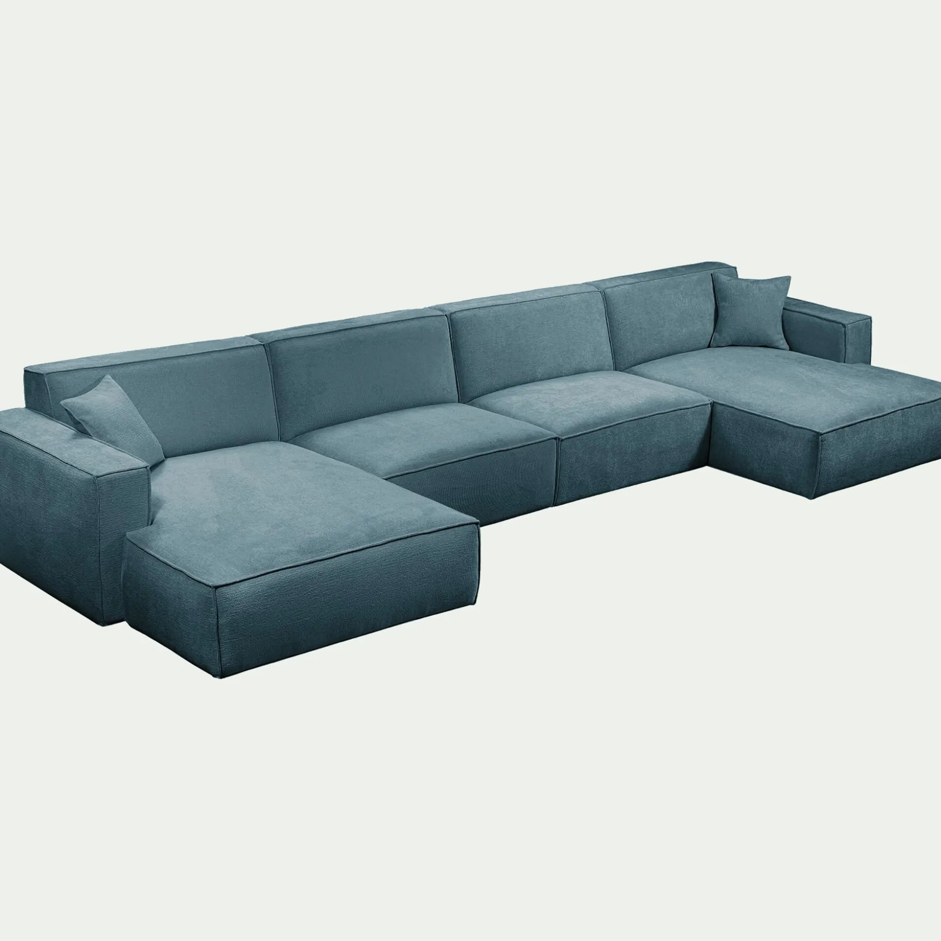 Ce joli canapé d’angle panoramique est parfait pour sublimer votre intérieur tout en vous permettant de vous prélasser. Avec ses formes rectangulaires définies, ce canapé fixe donne un côté contemporain à votre salon. Il est fabriqué en Ukraine par des experts afin de vous offrir un canapé à la confection européenne avec des matériaux qualitatifs. Confortable et extrêmement moelleux, il vous permet de recevoir famille et amis sur une assise généreuse. Son tissu de couleur bleu apporte de la luminosité à votre pièce pour une décoration chic et moderne.