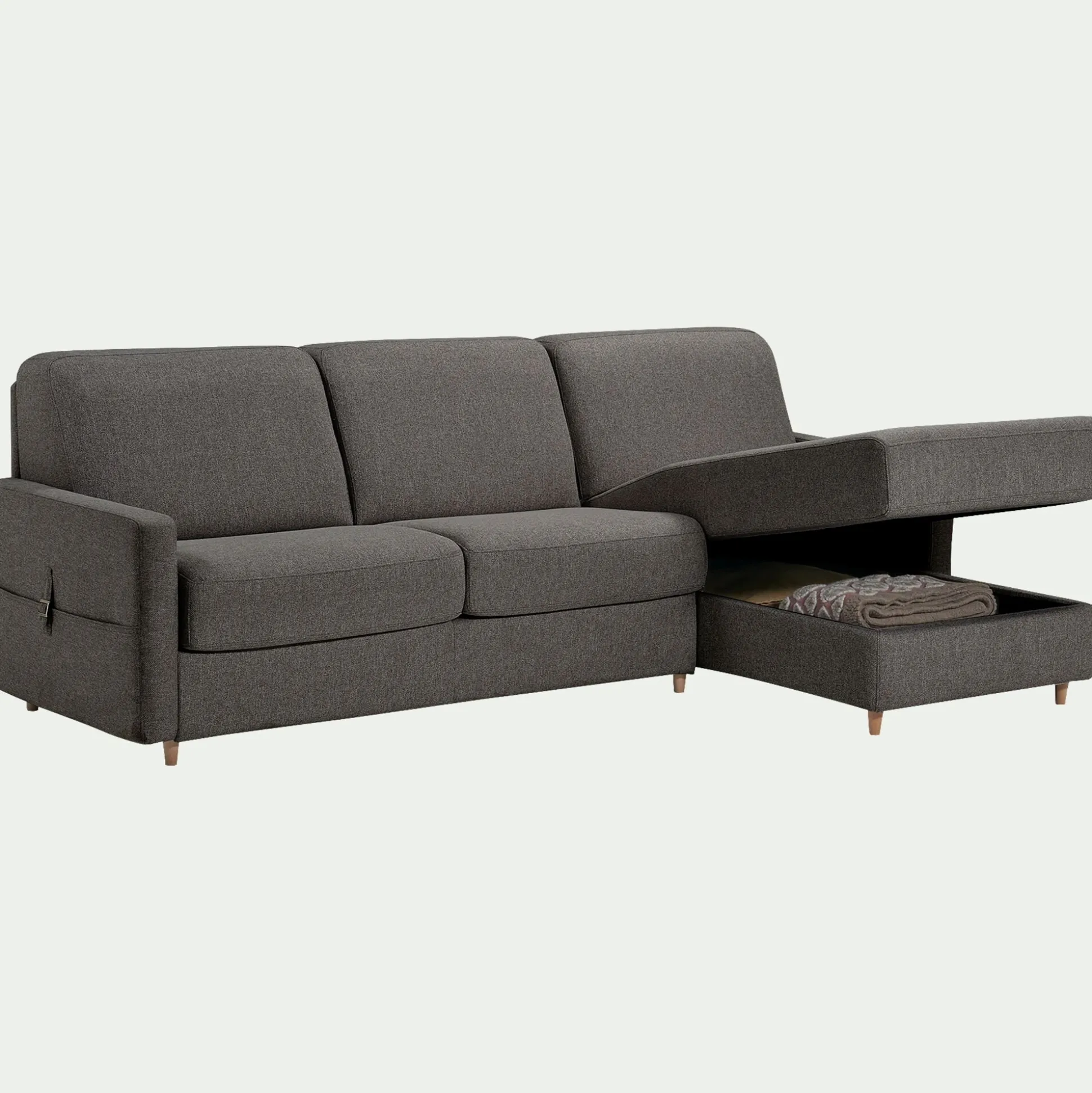 Le canapé Gaya est non seulement un meuble de qualité, mais aussi un bel élément de déco pour votre intérieur. Ce canapé d’angle de fabrication italienne, confectionné à partir d’un savoir-faire unique, allie charme et praticité, et saura trouver sa place dans votre salon. En effet, c’est un canapé convertible doté d’un lit en 140×195 cm très confortable, adapté pour un couchage quotidien d’une densité de 35kg/m3. Son mécanisme métallique vous permet de le déplier en quelques secondes sans enlever ses coussins. Ce canapé droit en tissu gris borie offre un soutien optimal adapté à chaque partie du corps.