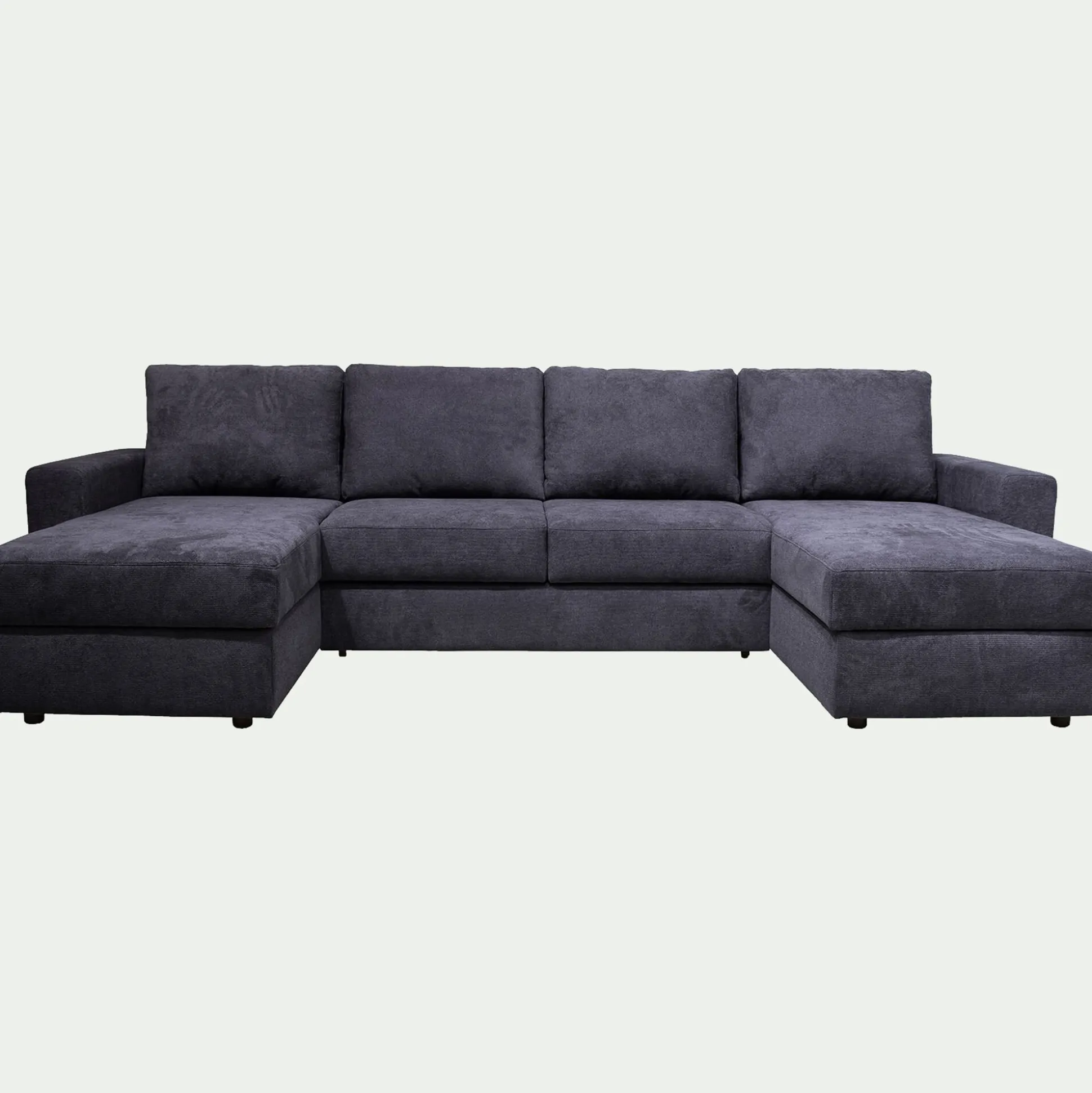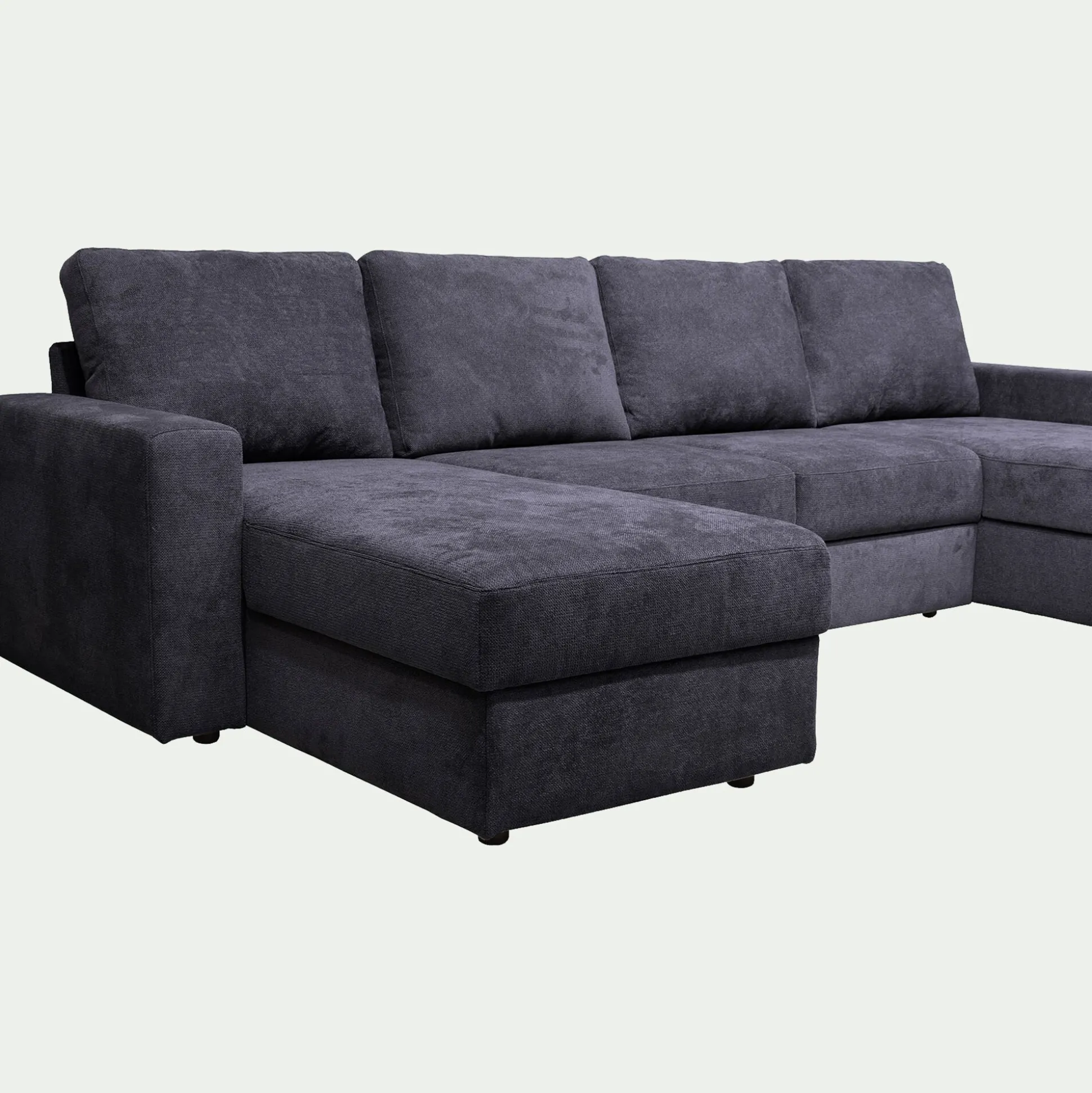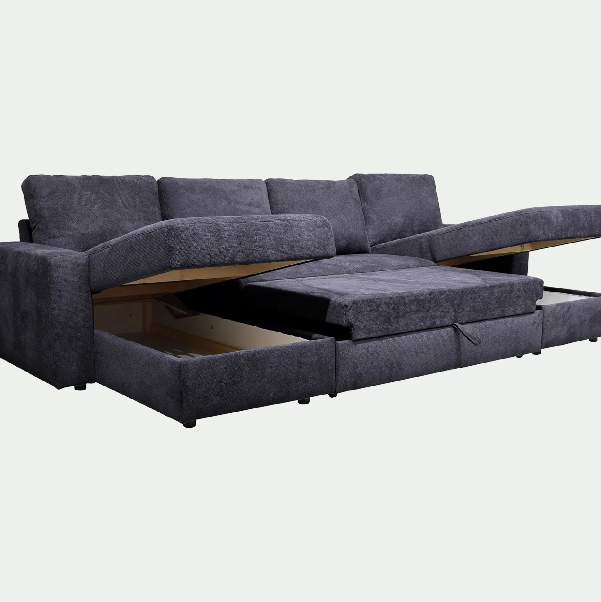 - Canapé d’angle réversible convertible en tissu tramé – bleu calabrun